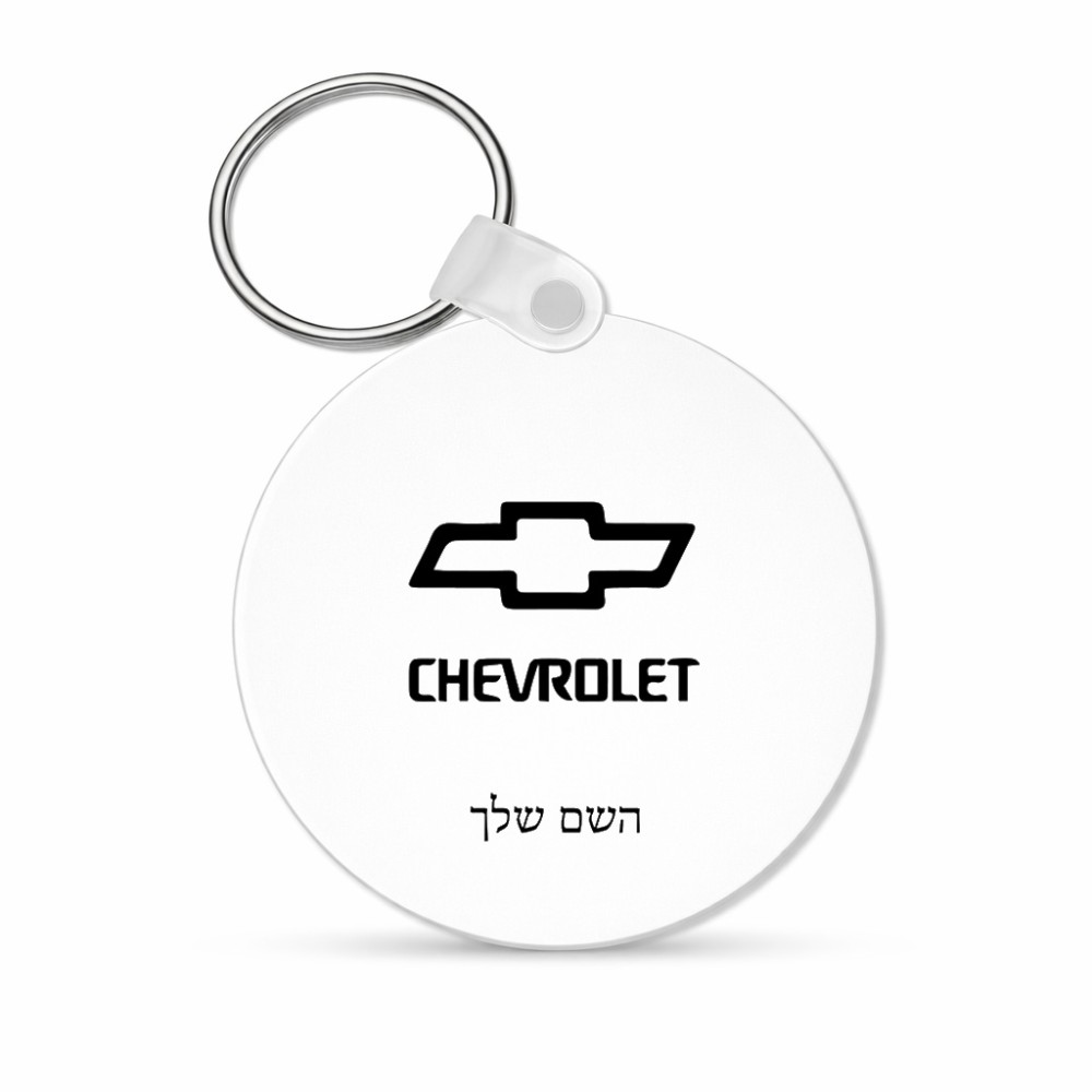 מחזיק מפתחות בצורת עיגול בעיצוב אישי עם השם שלך בעיצוב שברולט גודל המחזיק 5 × 5 ס"מ. את השם המבוקש ניתן לציין בהזמנה, אם לא צויין אנחנו ניצור קשר לבירור.
