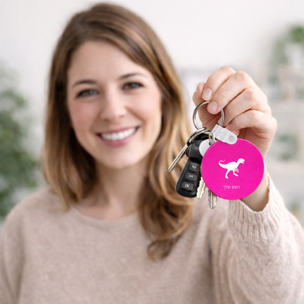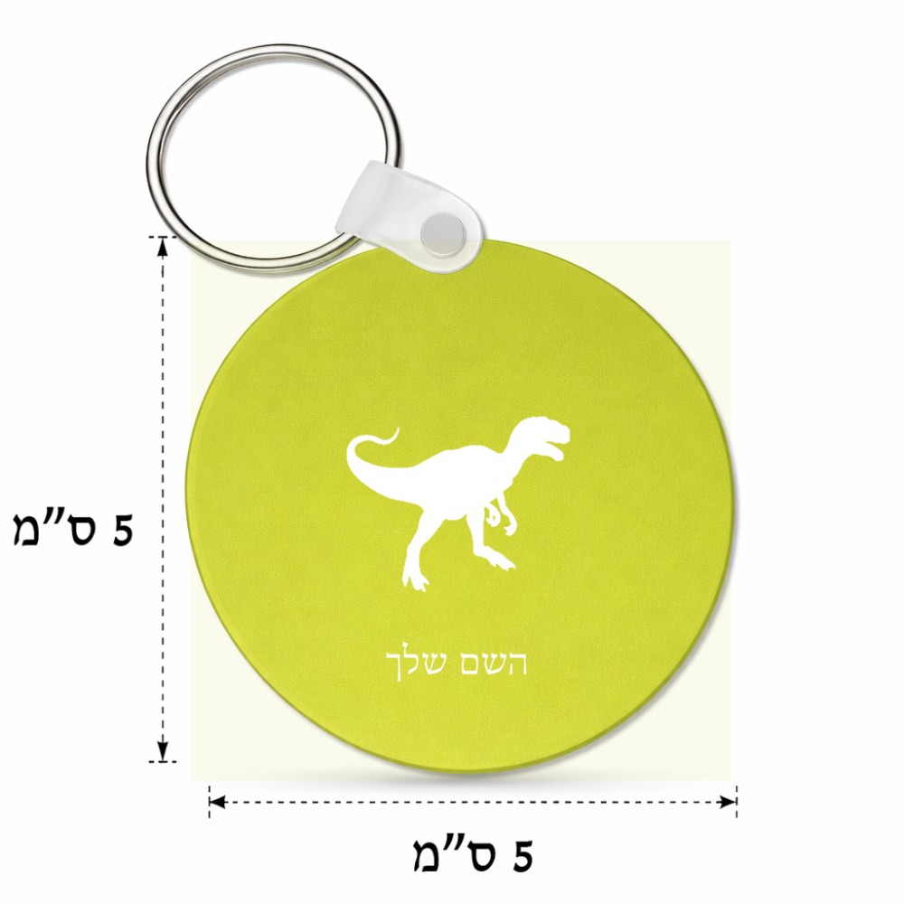 מחזיק מפתחות בצורת עיגול בעיצוב אישי עם השם שלך בעיצוב דינוזאור גודל המחזיק 5 × 5 ס"מ. את השם המבוקש ניתן לציין בהזמנה, אם לא צויין אנחנו ניצור קשר לבירור.