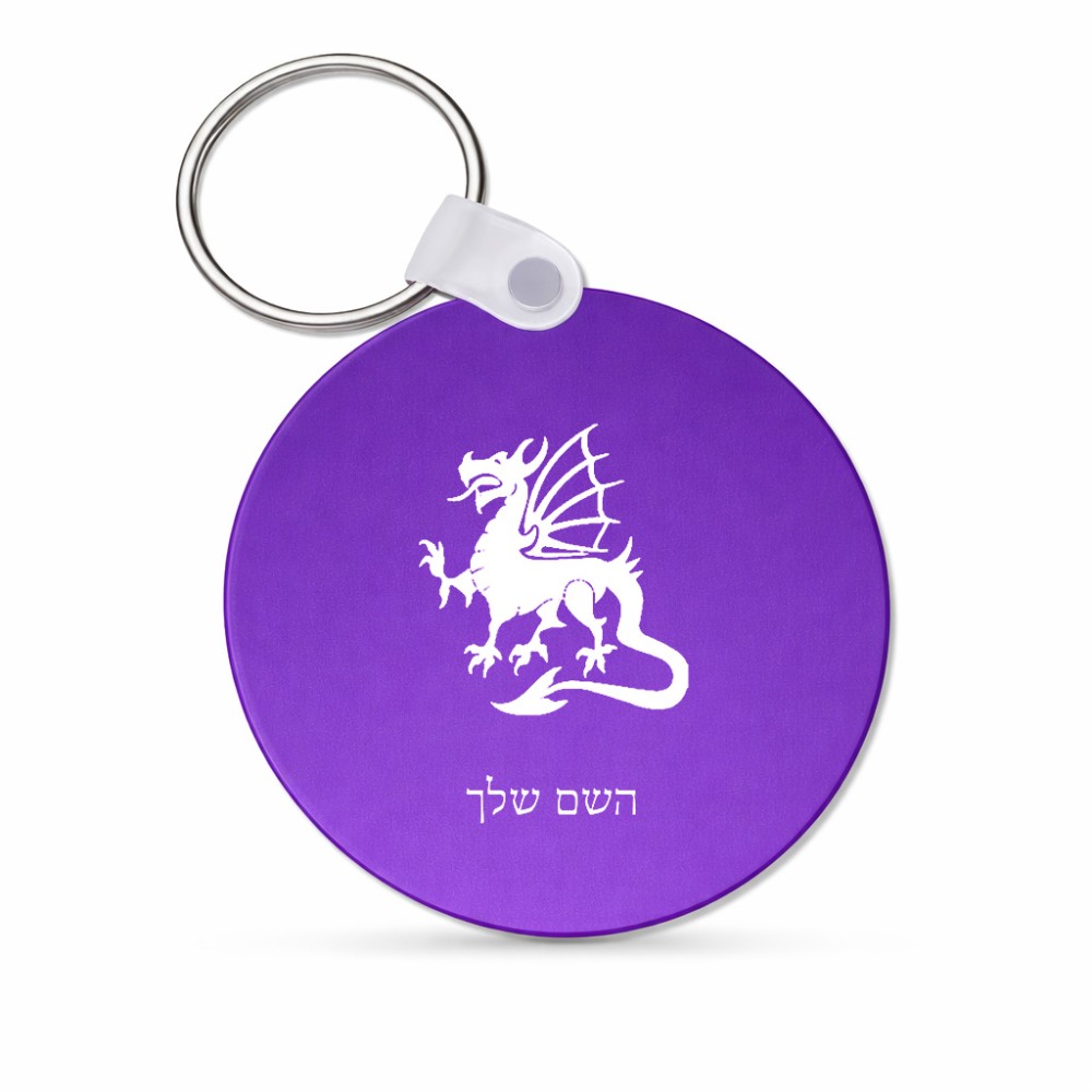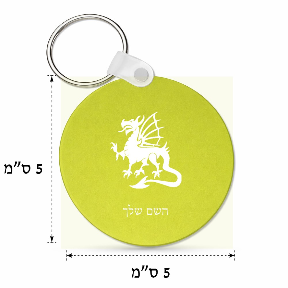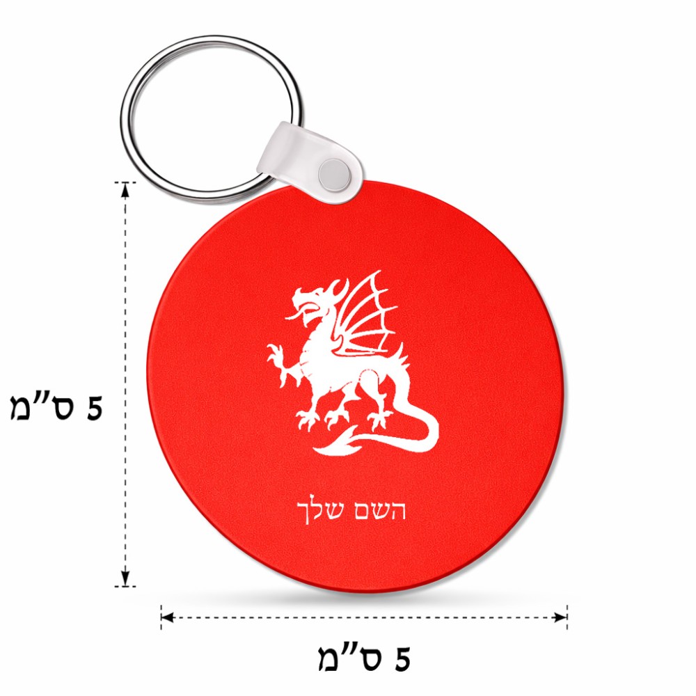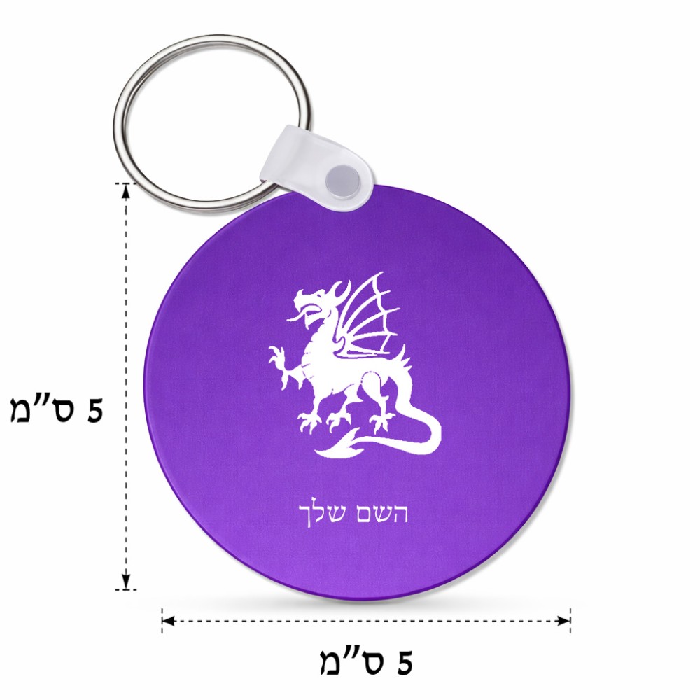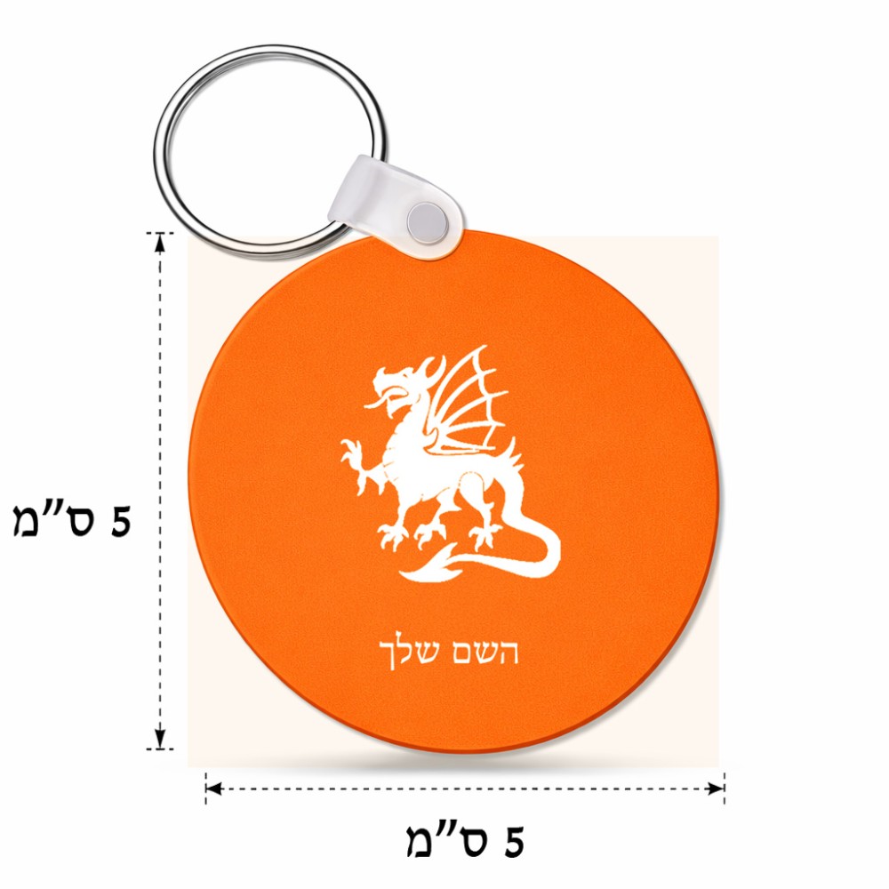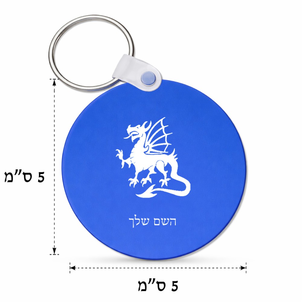 מחזיק מפתחות בצורת עיגול בעיצוב אישי עם השם שלך בעיצוב דרקון גודל המחזיק 5 × 5 ס"מ. את השם המבוקש ניתן לציין בהזמנה, אם לא צויין אנחנו ניצור קשר לבירור.