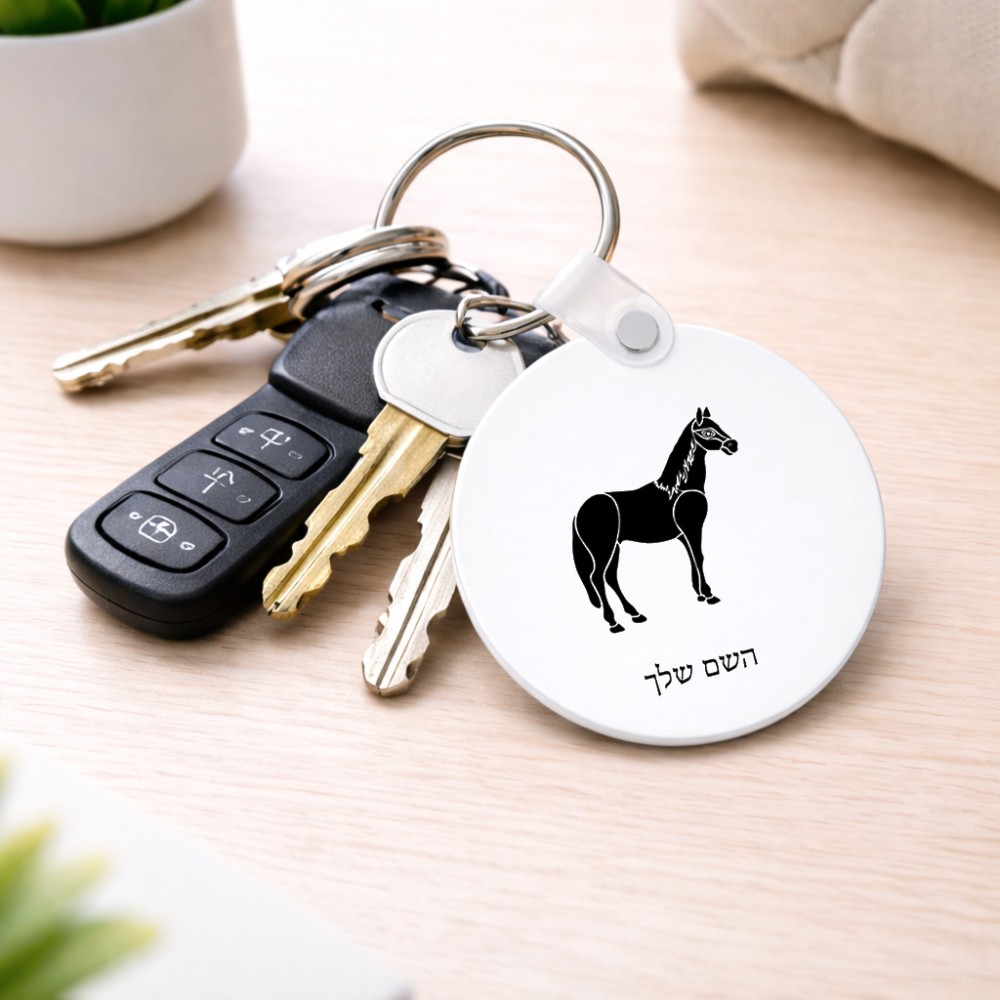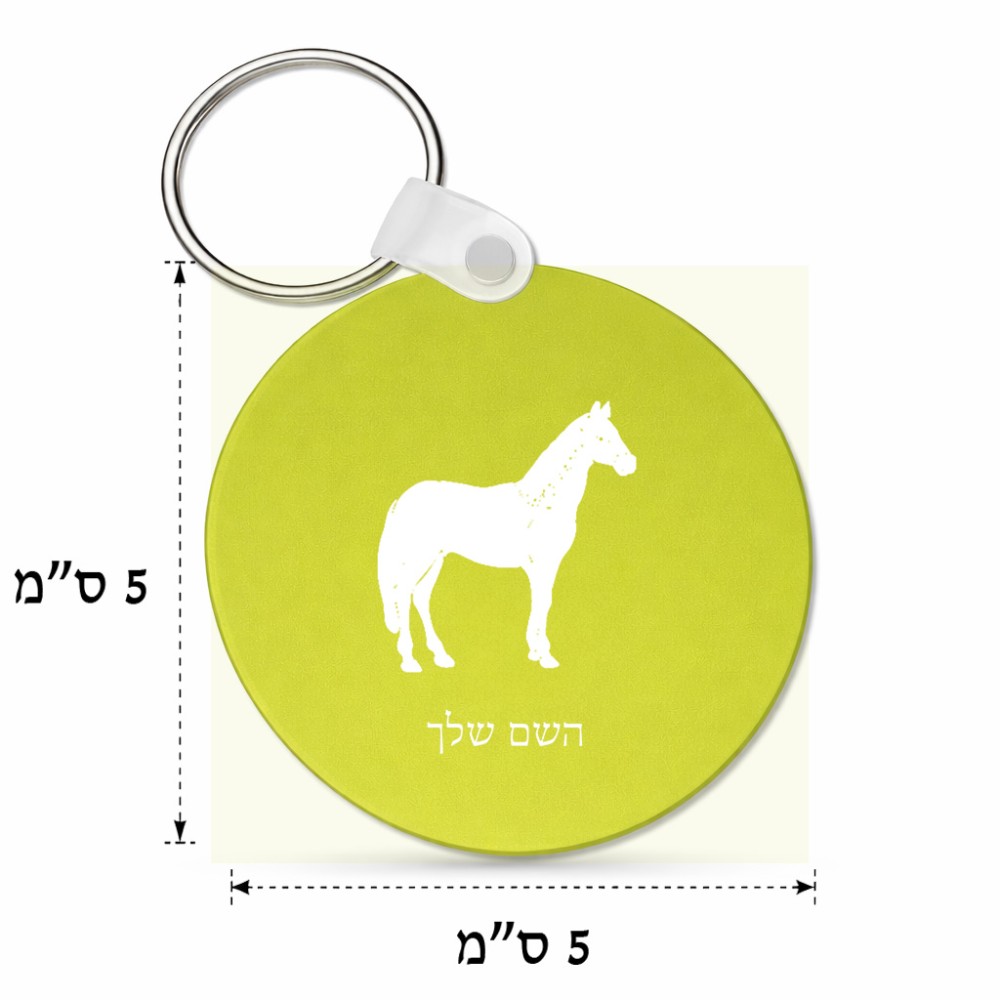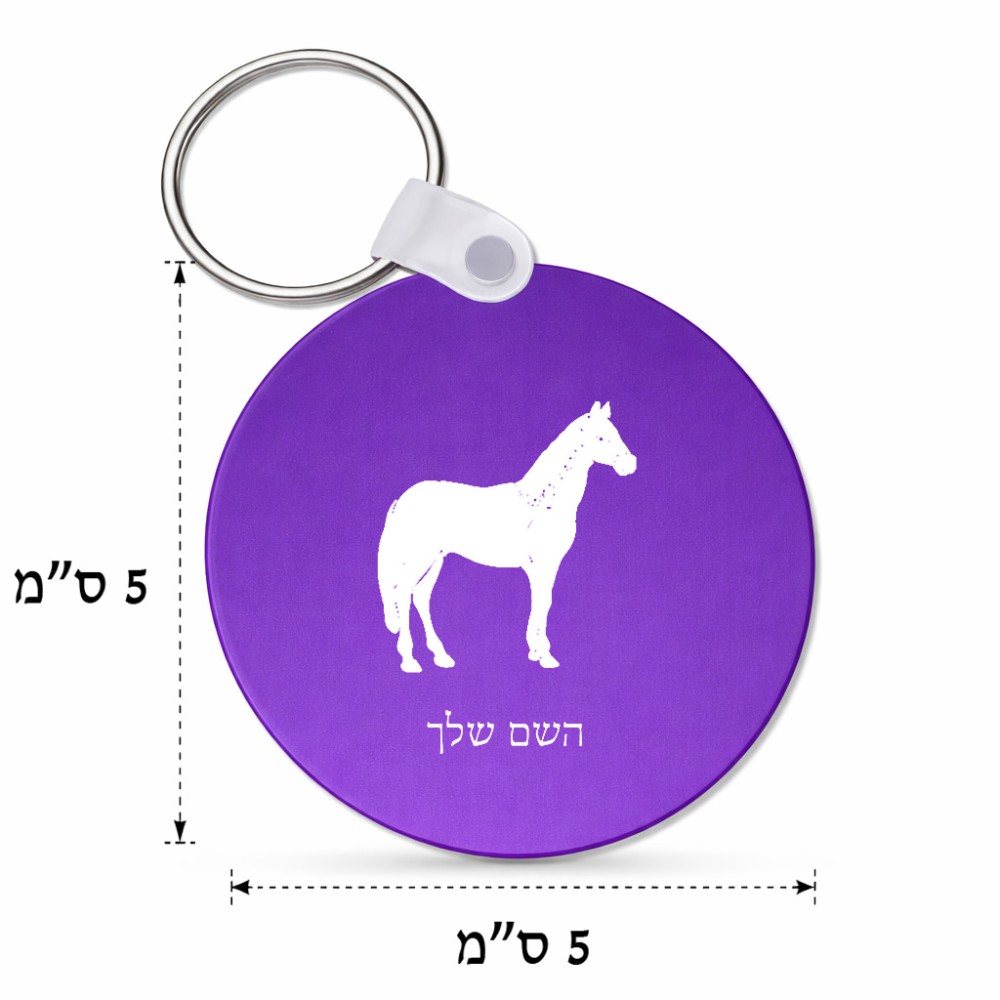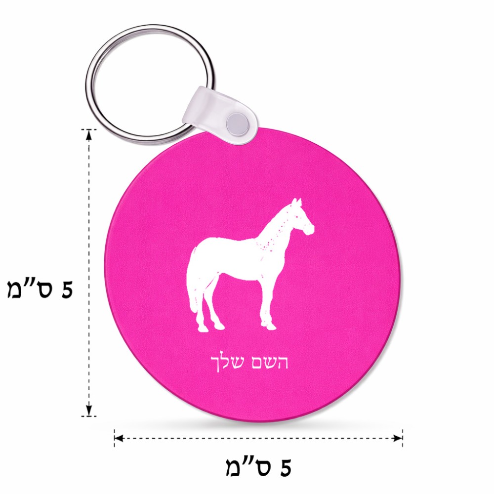מחזיק מפתחות בצורת עיגול בעיצוב אישי עם השם שלך בעיצוב סוס גודל המחזיק 5 × 5 ס"מ. את השם המבוקש ניתן לציין בהזמנה, אם לא צויין אנחנו ניצור קשר לבירור.