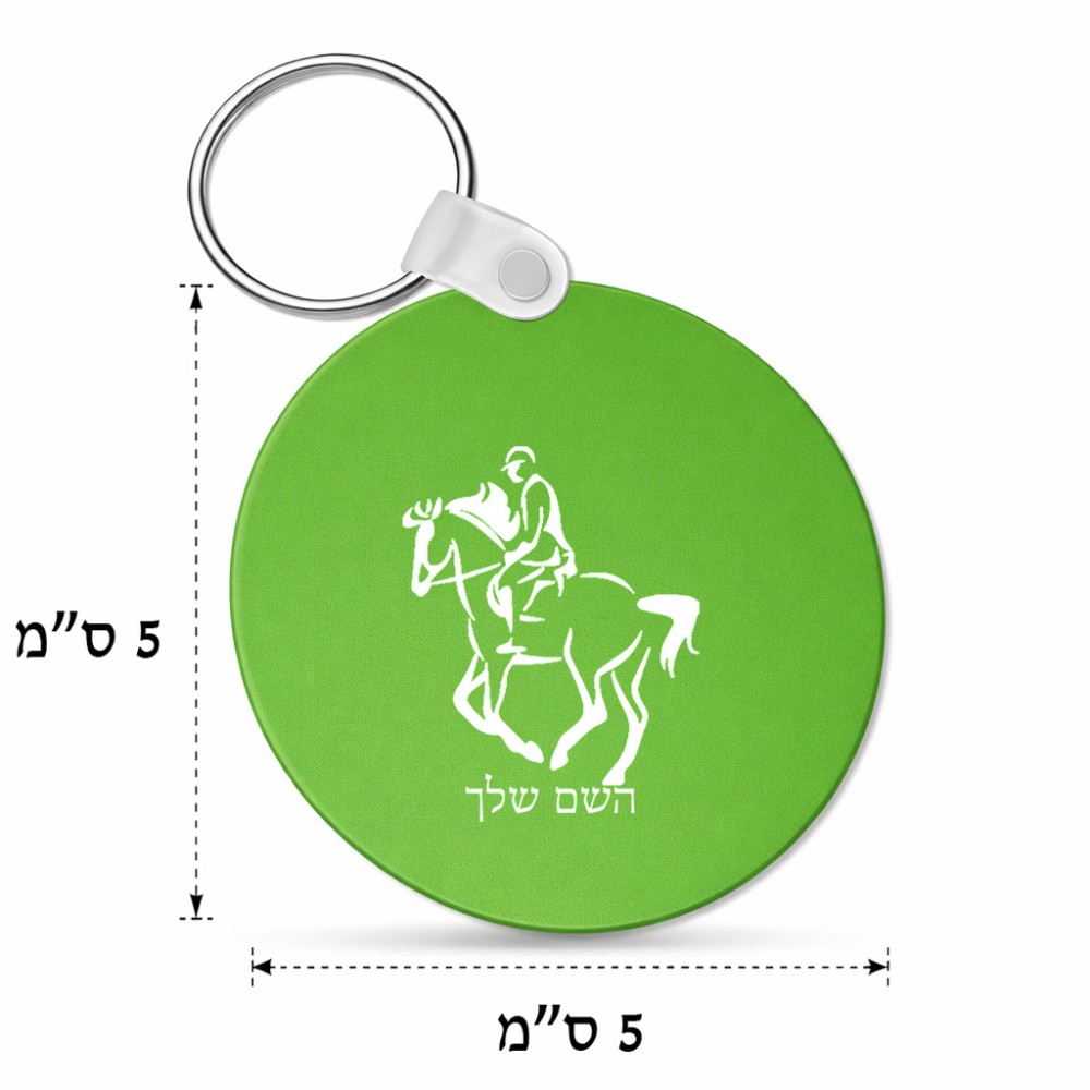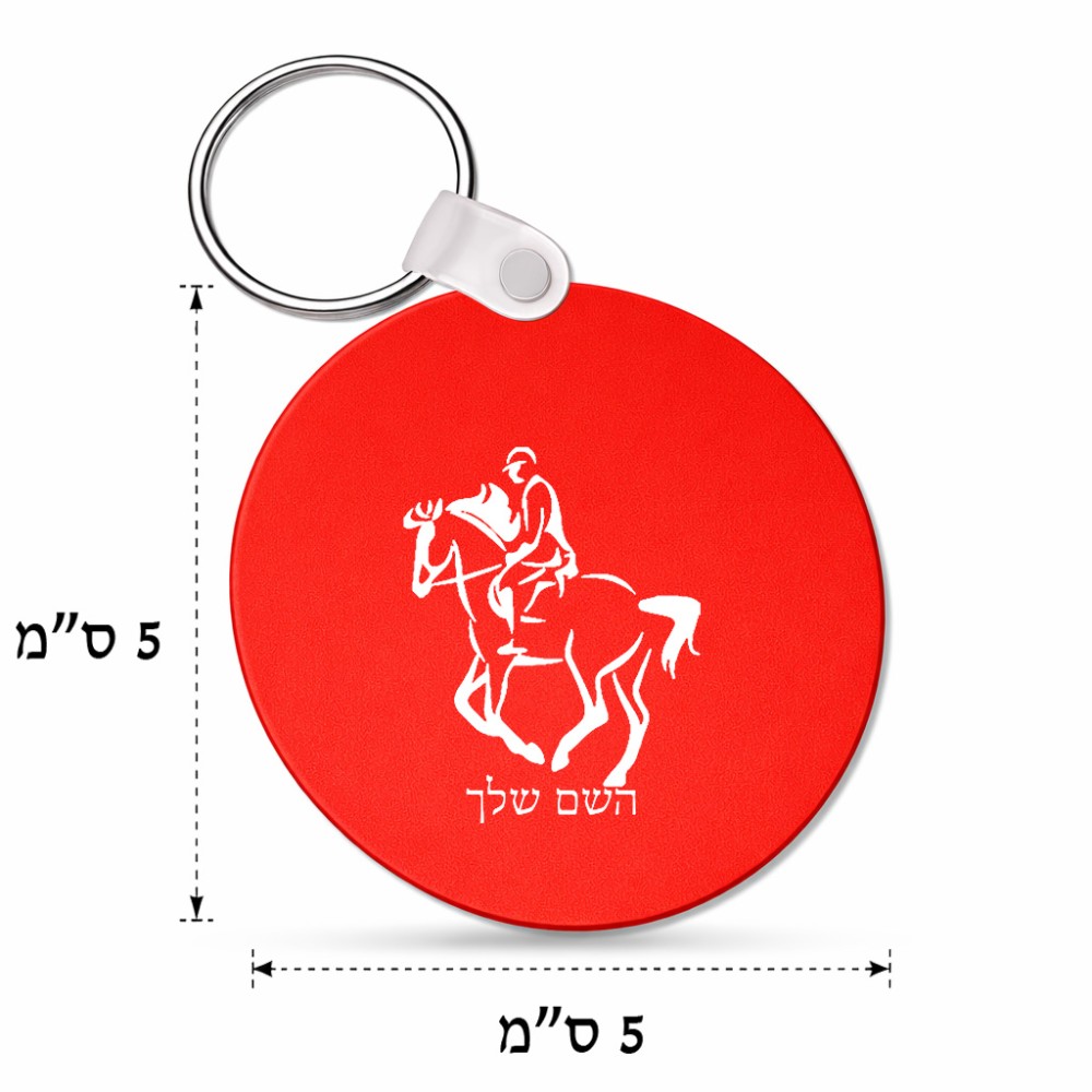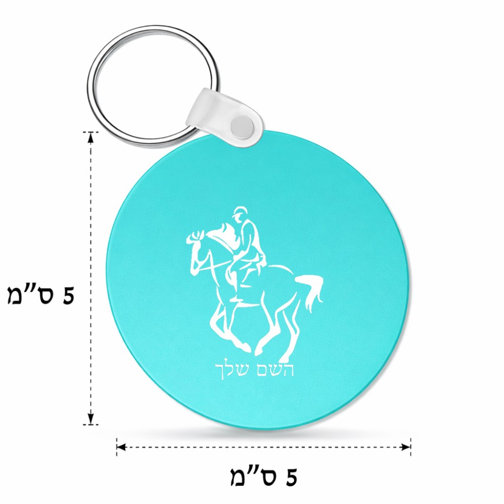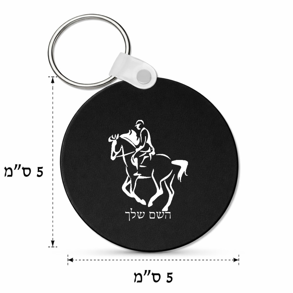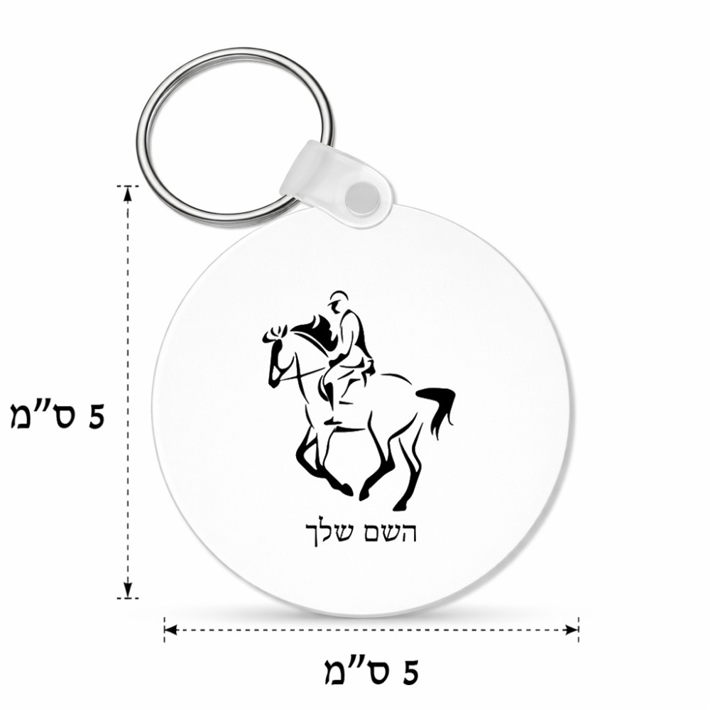 מחזיק מפתחות בצורת עיגול בעיצוב אישי עם השם שלך בעיצוב רוכב סוסים 2 גודל המחזיק 5 × 5 ס"מ. את השם המבוקש ניתן לציין בהזמנה, אם לא צויין אנחנו ניצור קשר לבירור.