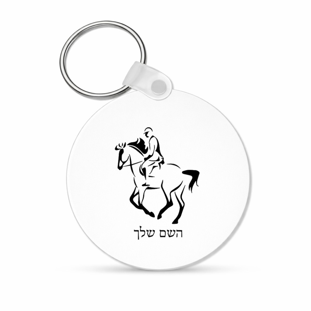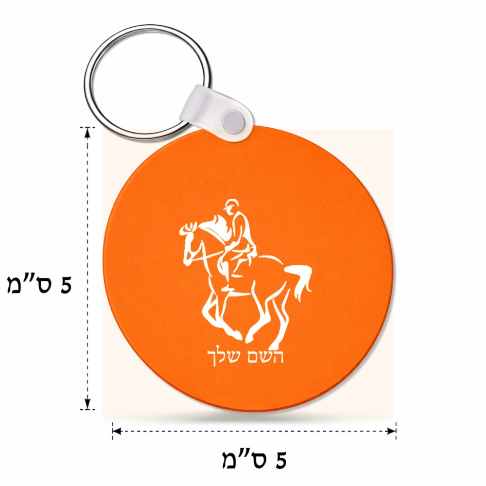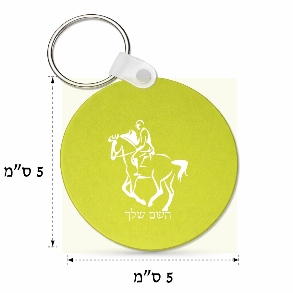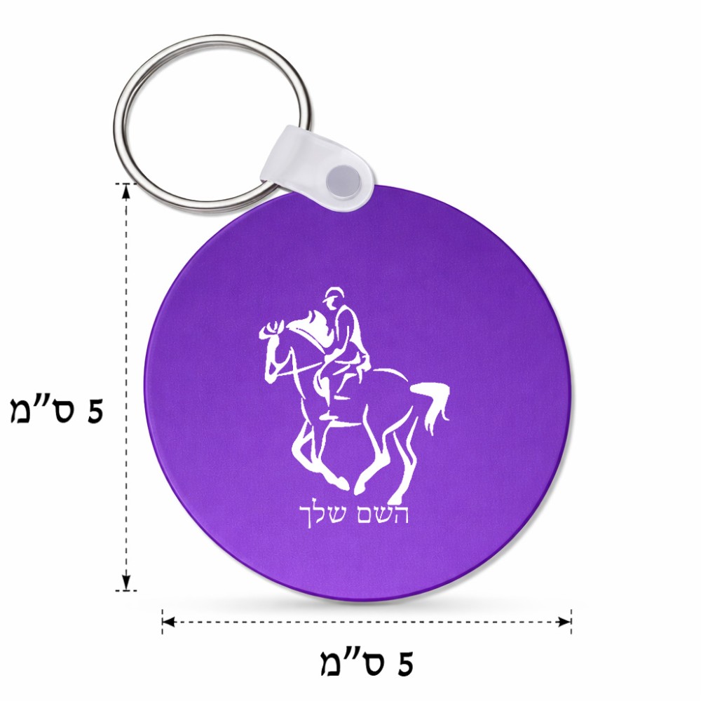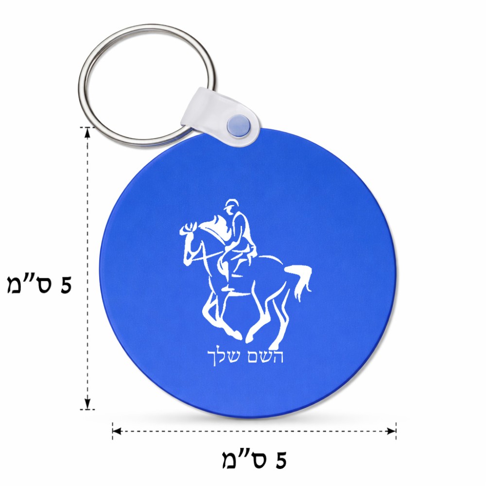 מחזיק מפתחות בצורת עיגול בעיצוב אישי עם השם שלך בעיצוב רוכב סוסים 2 גודל המחזיק 5 × 5 ס"מ. את השם המבוקש ניתן לציין בהזמנה, אם לא צויין אנחנו ניצור קשר לבירור.