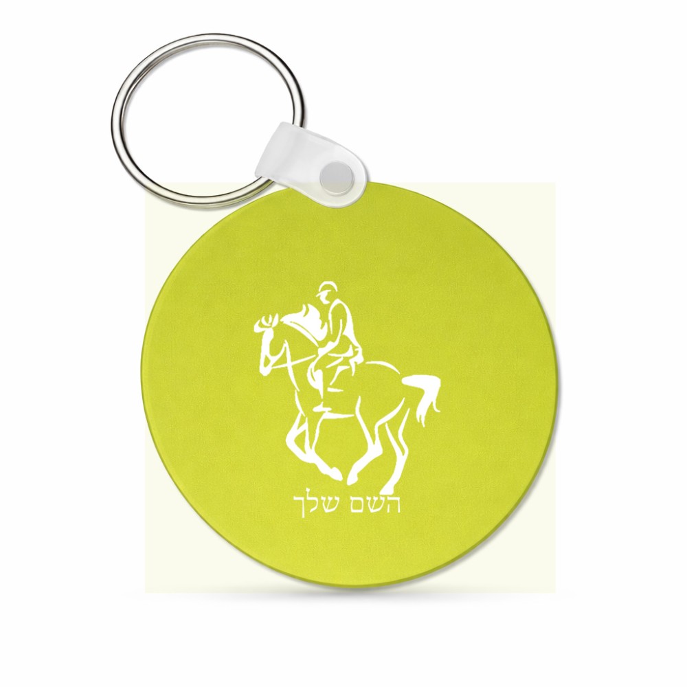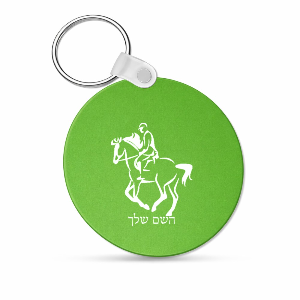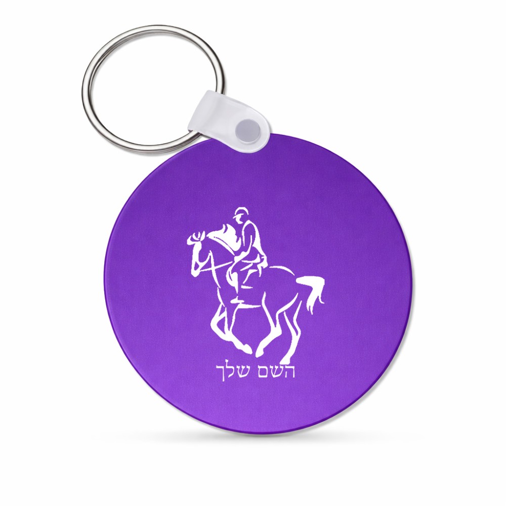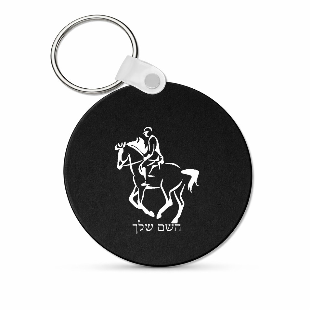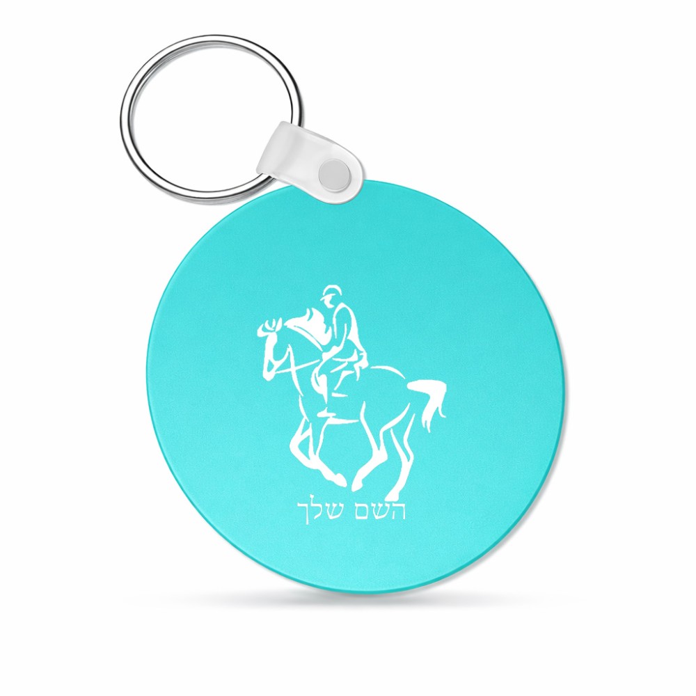 מחזיק מפתחות בצורת עיגול בעיצוב אישי עם השם שלך בעיצוב רוכב סוסים 2 גודל המחזיק 5 × 5 ס"מ. את השם המבוקש ניתן לציין בהזמנה, אם לא צויין אנחנו ניצור קשר לבירור.