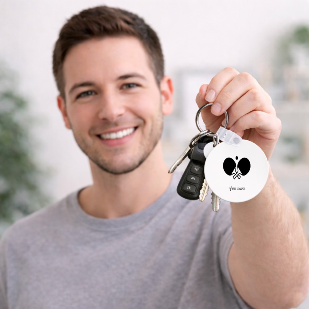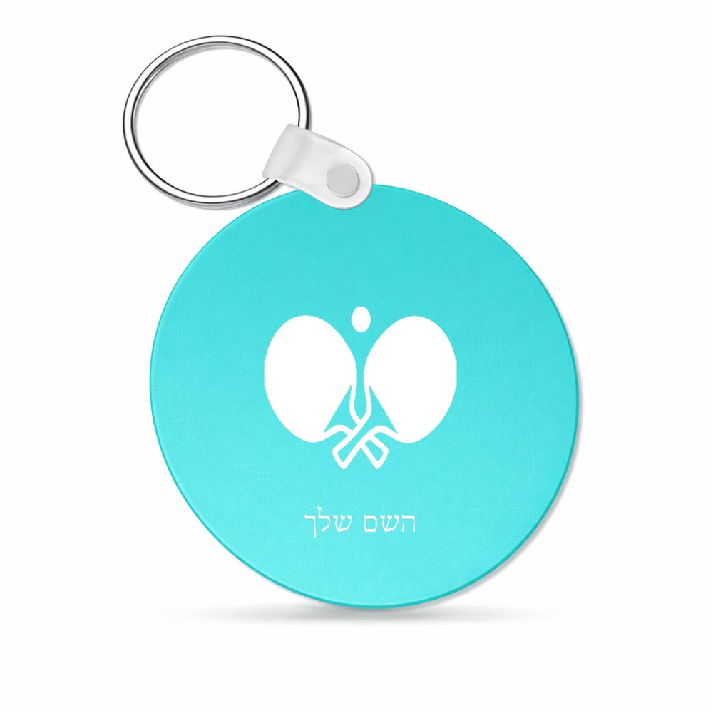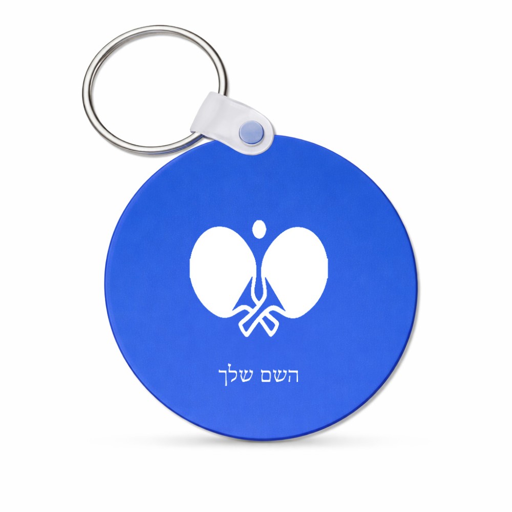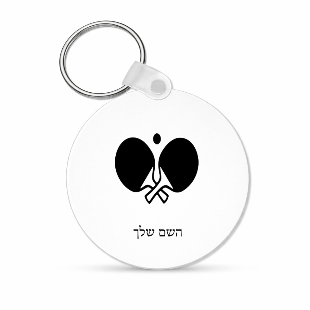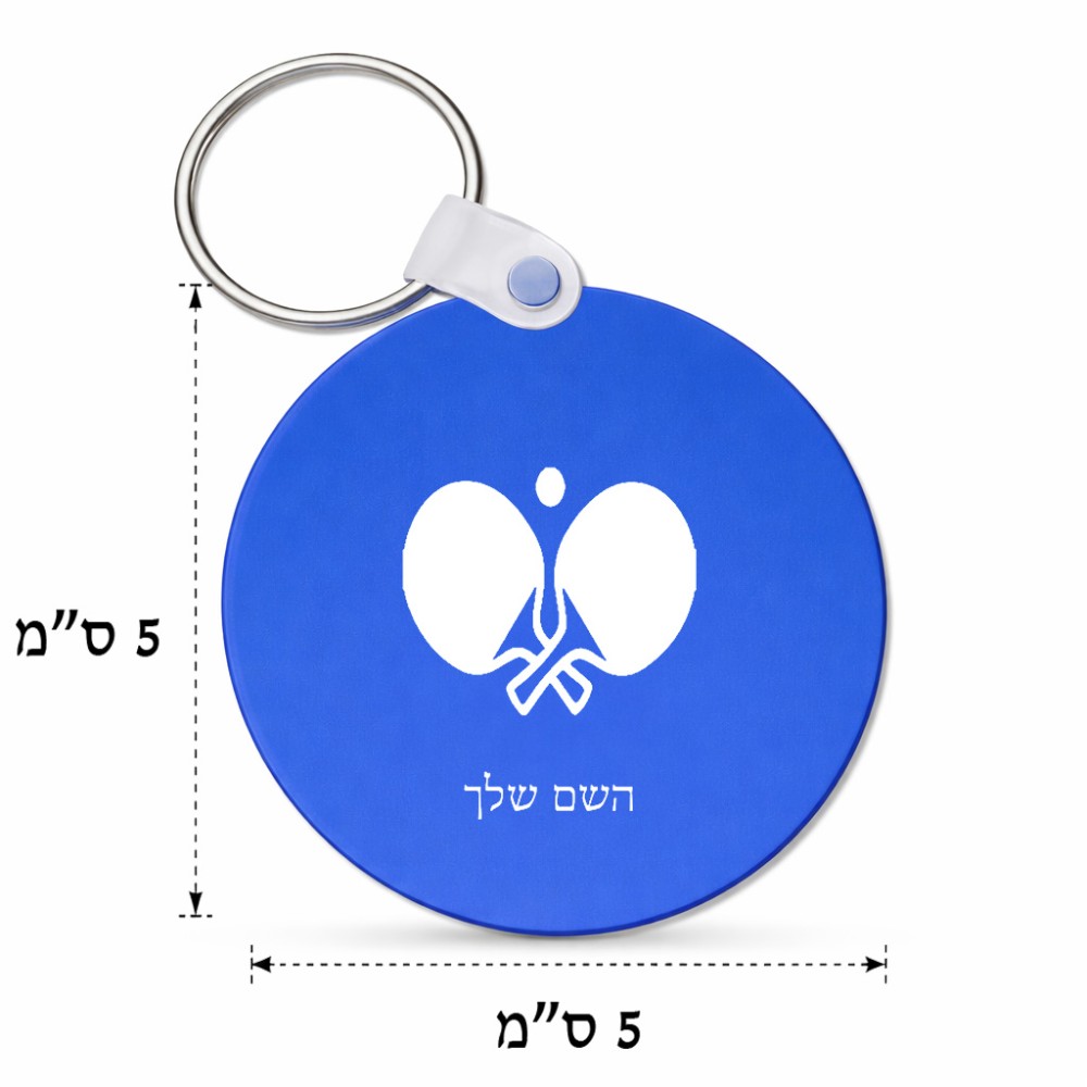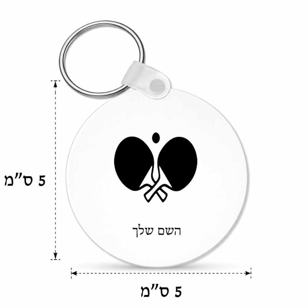 מחזיק מפתחות בצורת עיגול בעיצוב אישי עם השם שלך בעיצוב פינג פונג גודל המחזיק 5 × 5 ס"מ. את השם המבוקש ניתן לציין בהזמנה, אם לא צויין אנחנו ניצור קשר לבירור.