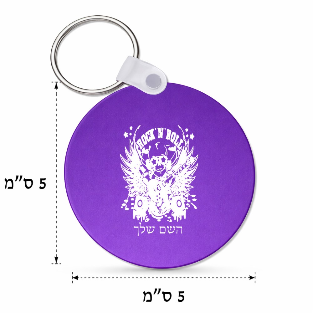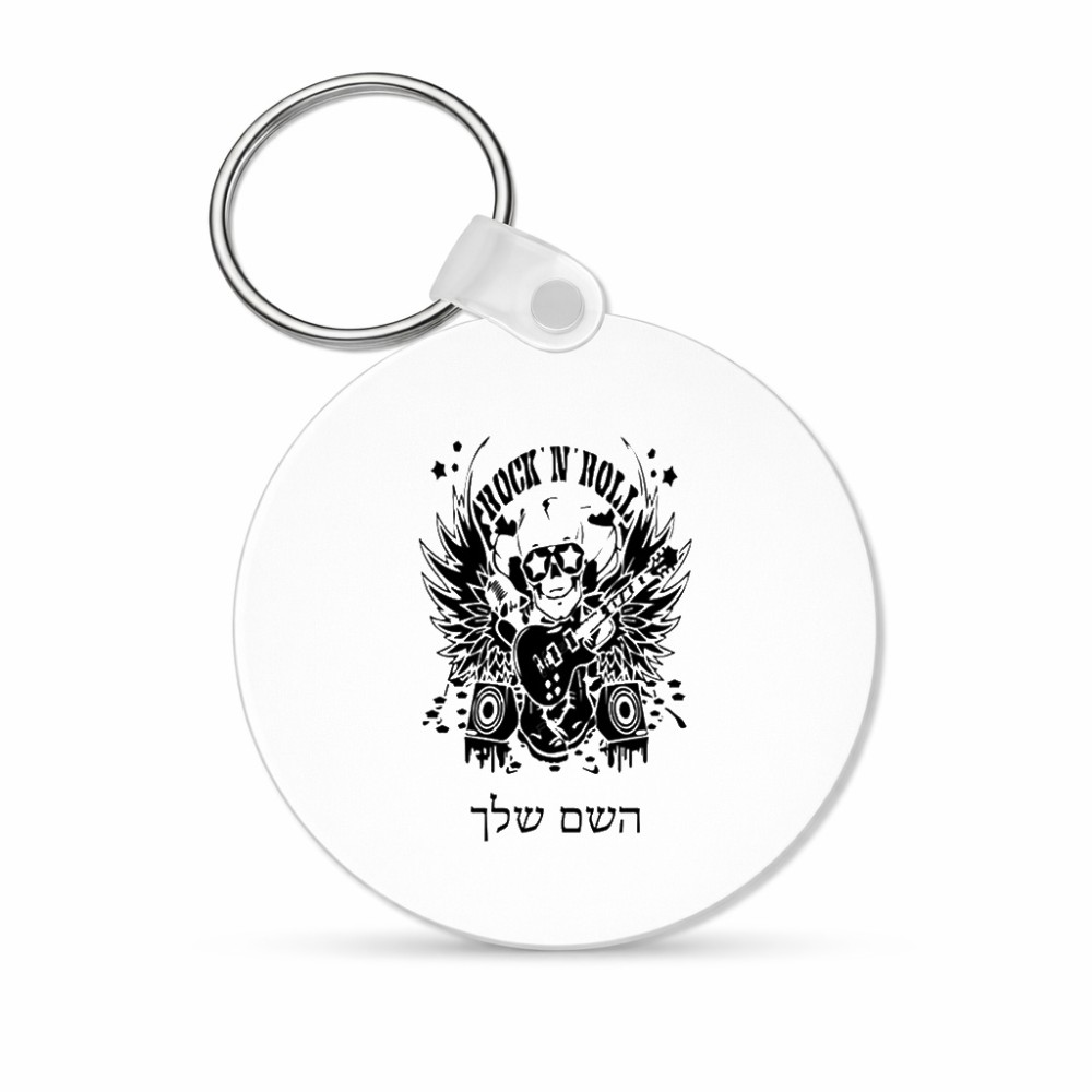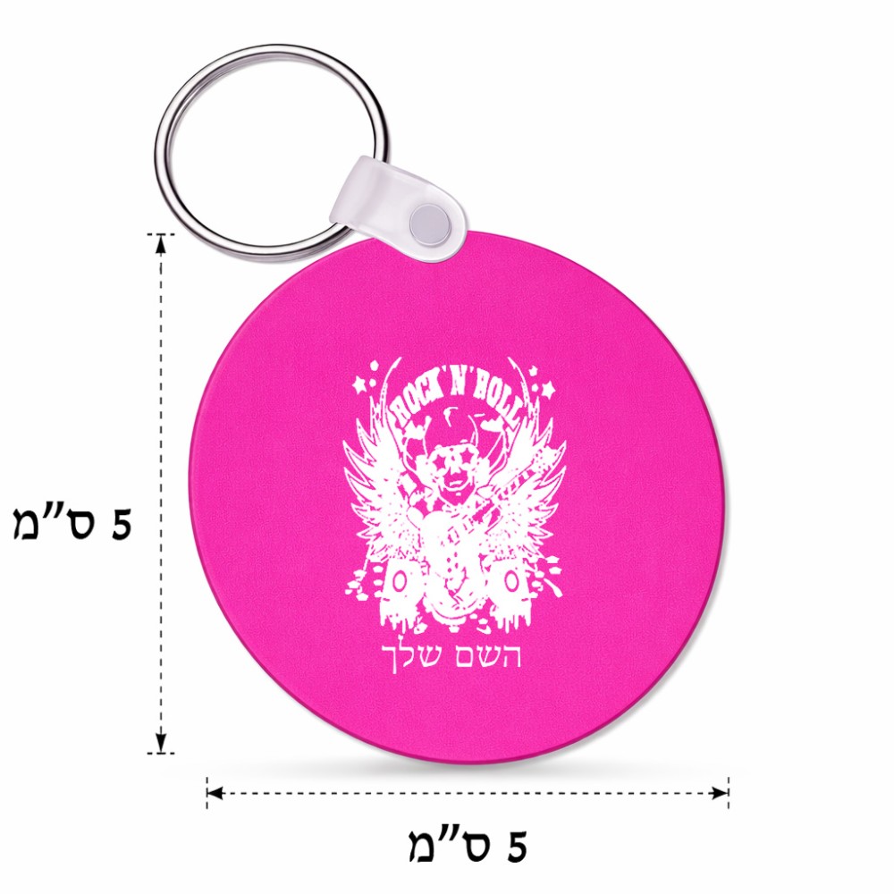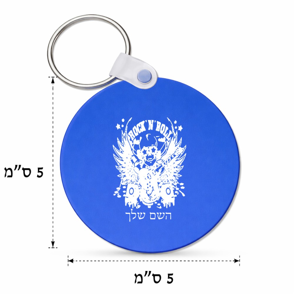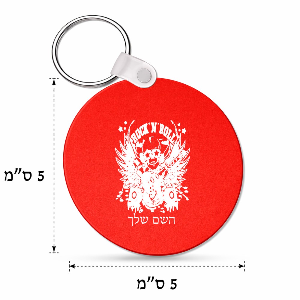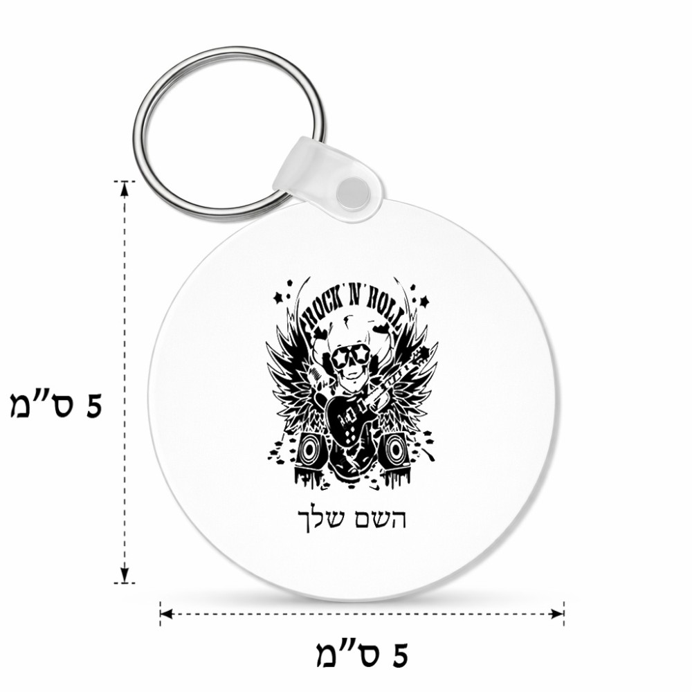מחזיק מפתחות בצורת עיגול בעיצוב אישי עם השם שלך בעיצוב רוקנרול גודל המחזיק 5 × 5 ס"מ. את השם המבוקש ניתן לציין בהזמנה, אם לא צויין אנחנו ניצור קשר לבירור.