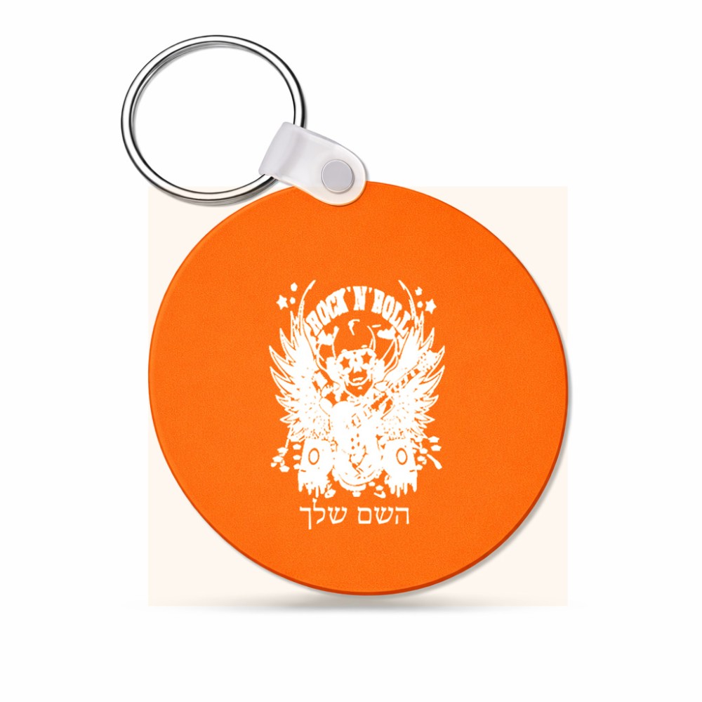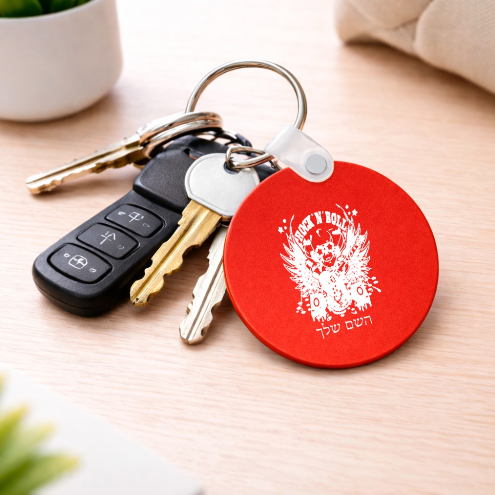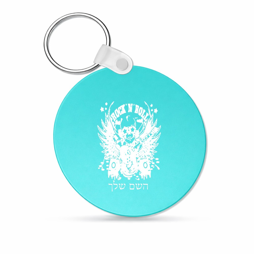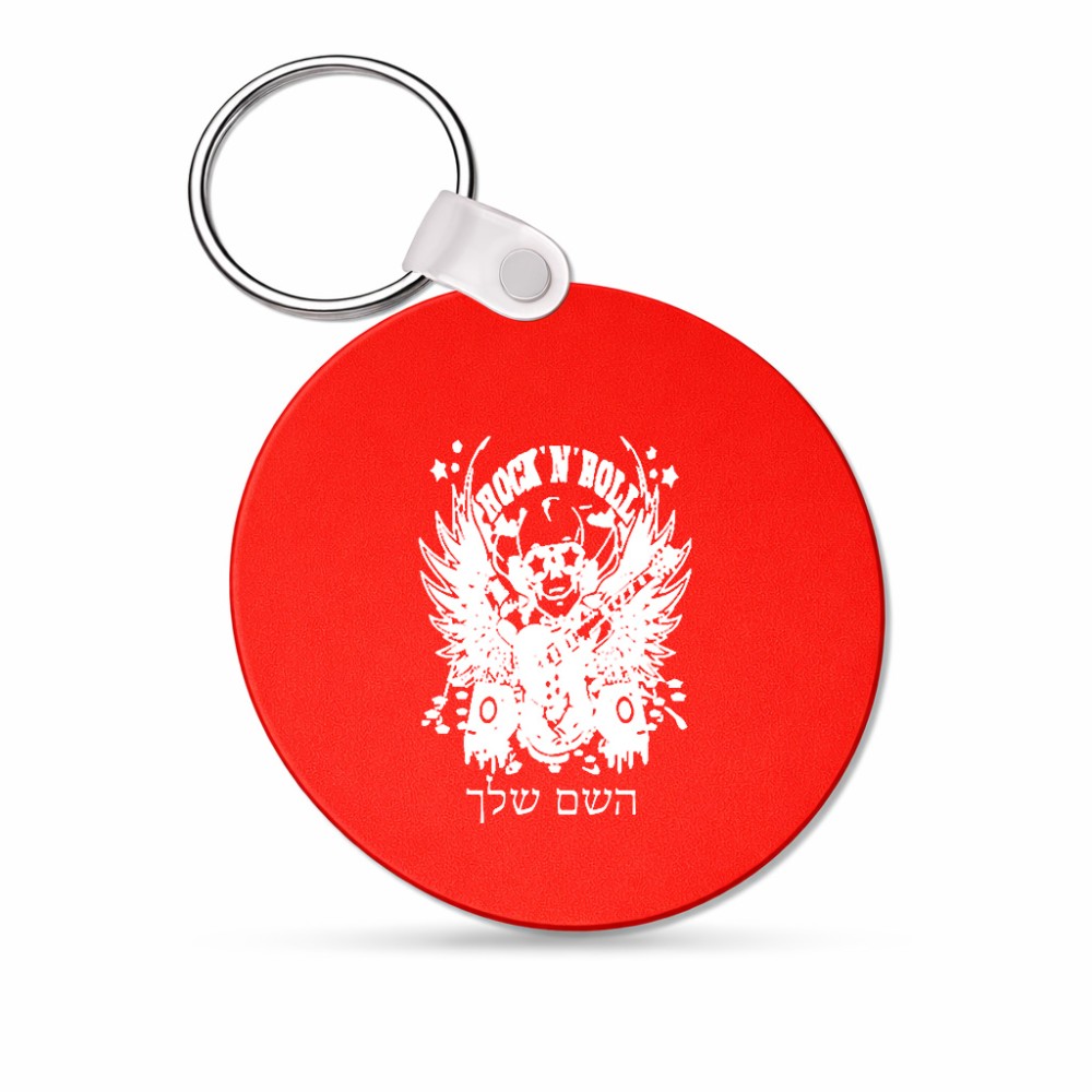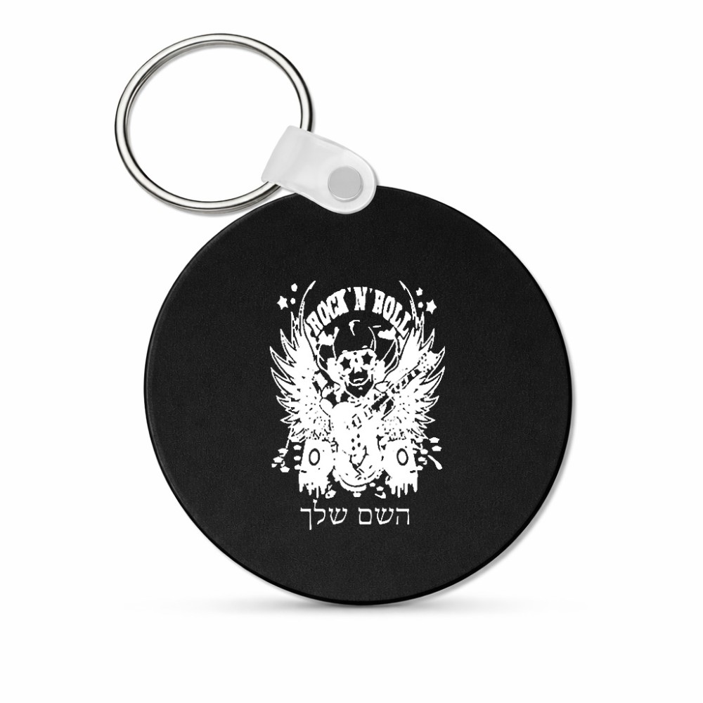מחזיק מפתחות בצורת עיגול בעיצוב אישי עם השם שלך בעיצוב רוקנרול גודל המחזיק 5 × 5 ס"מ. את השם המבוקש ניתן לציין בהזמנה, אם לא צויין אנחנו ניצור קשר לבירור.