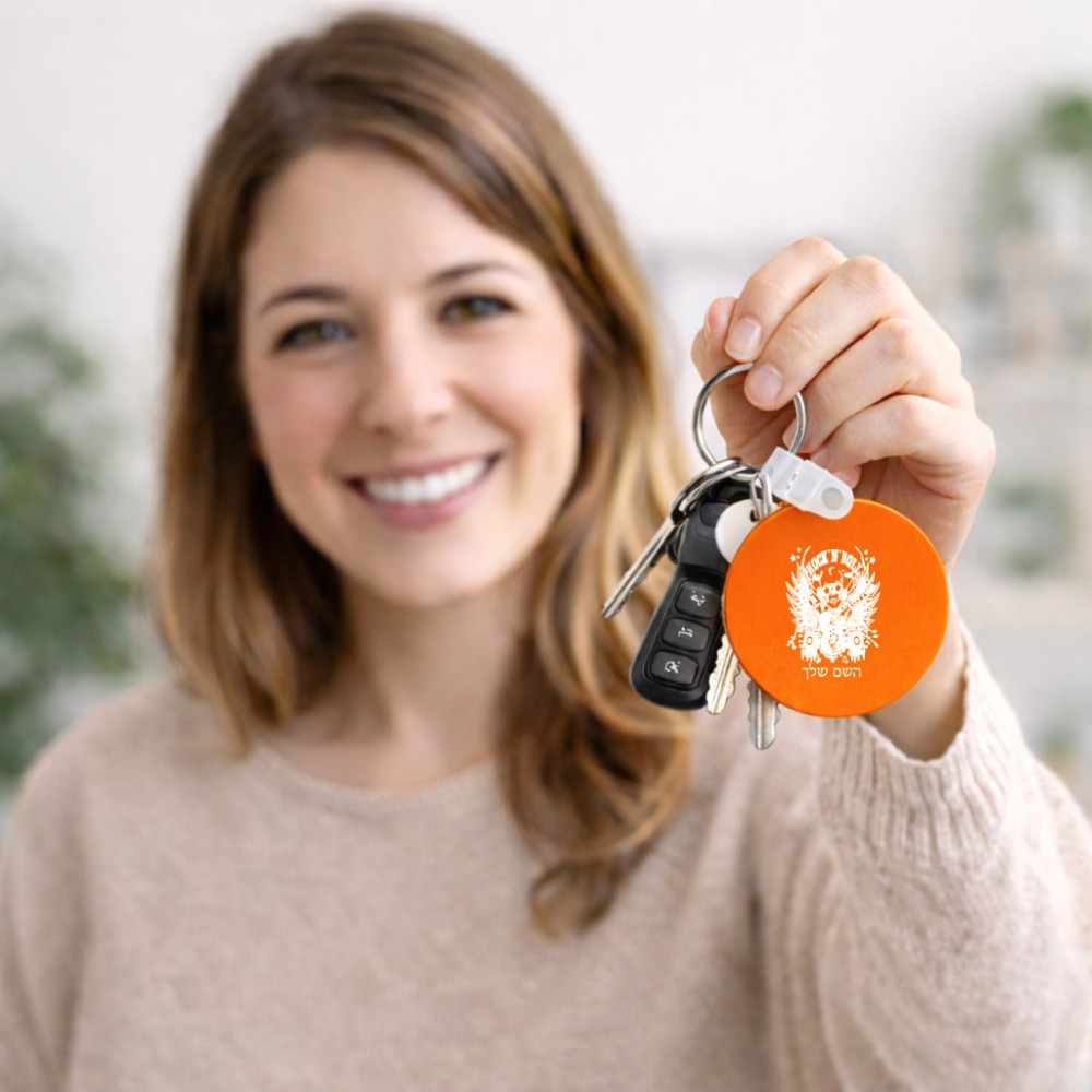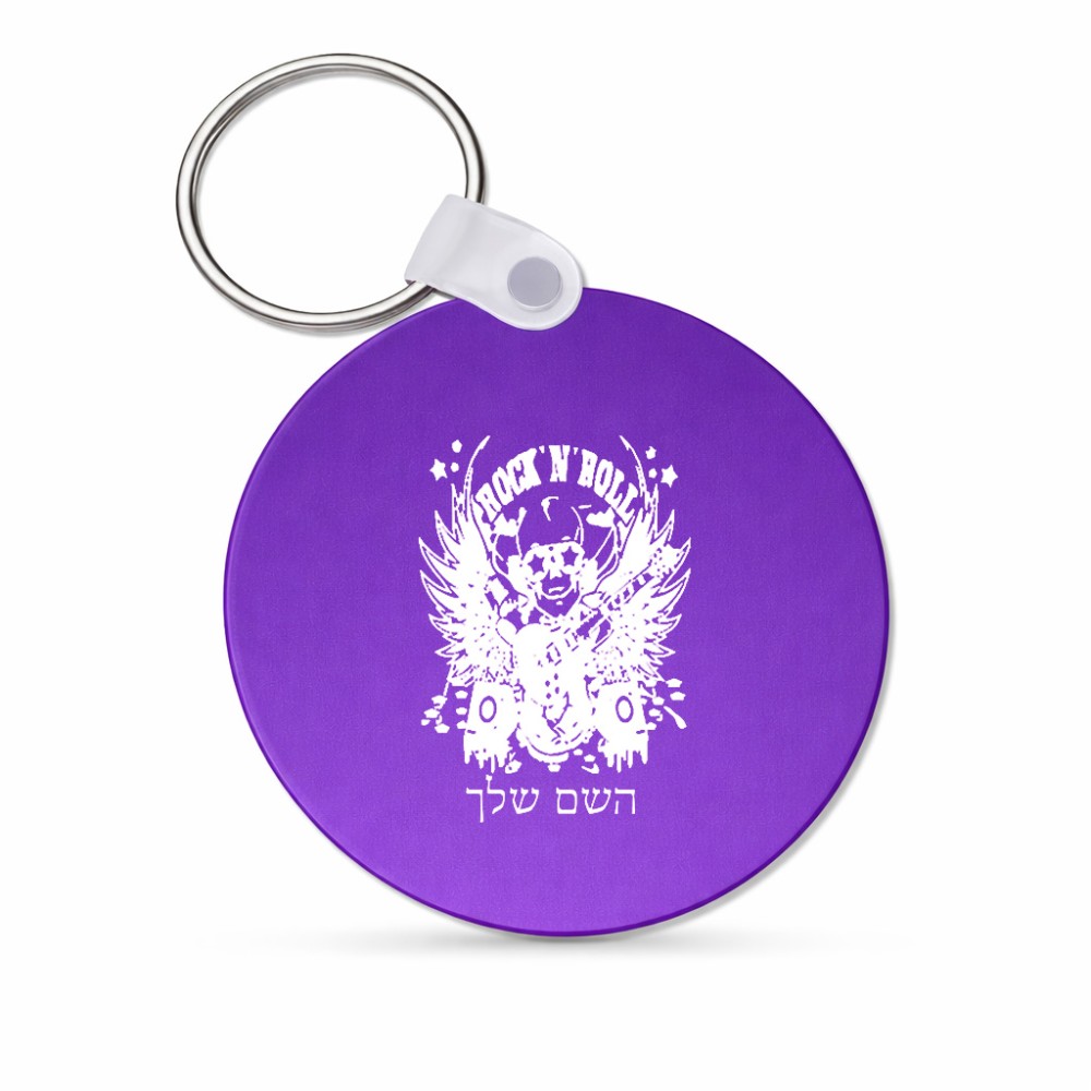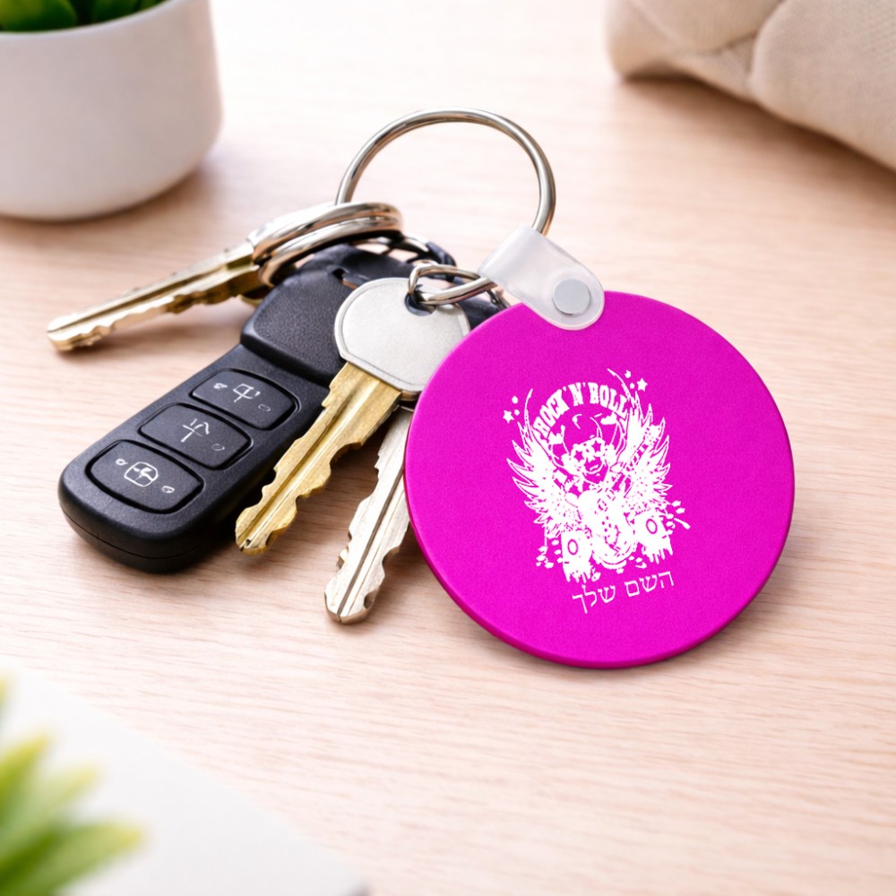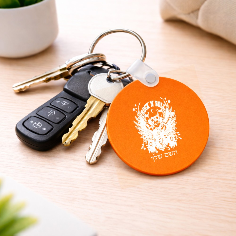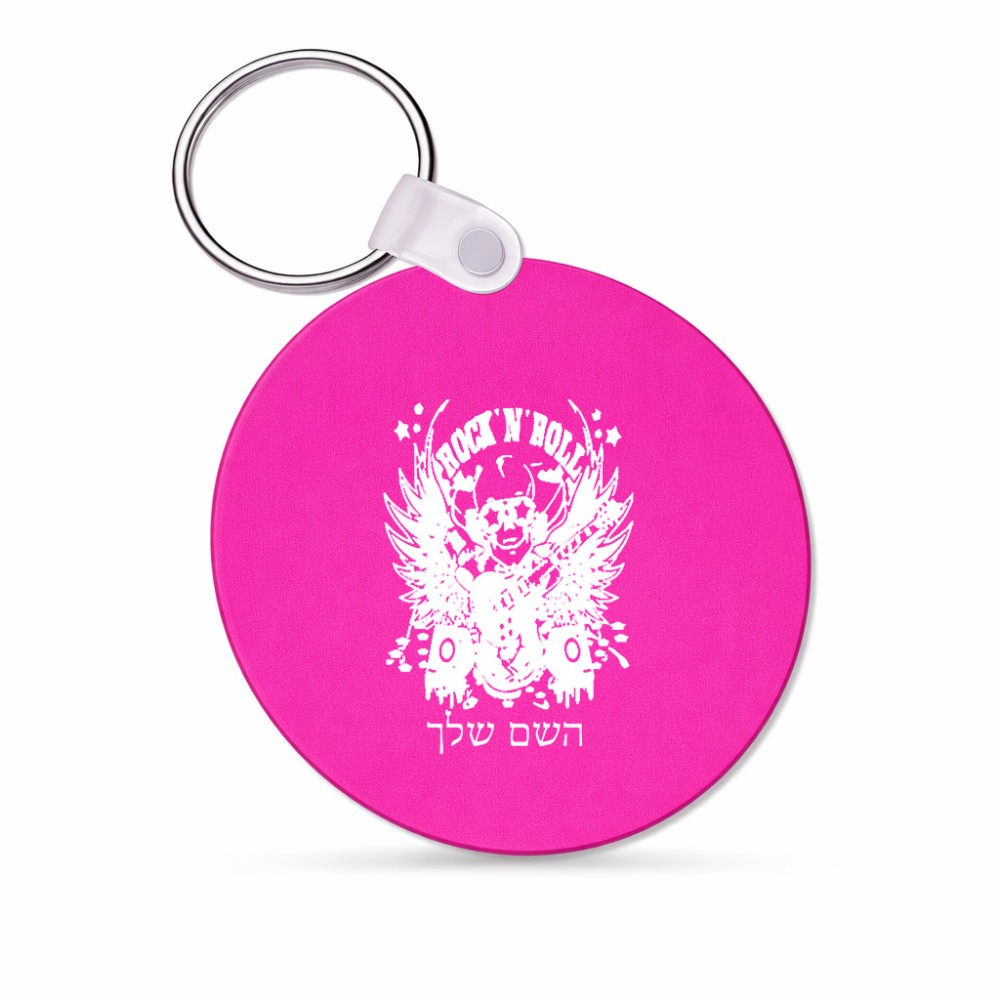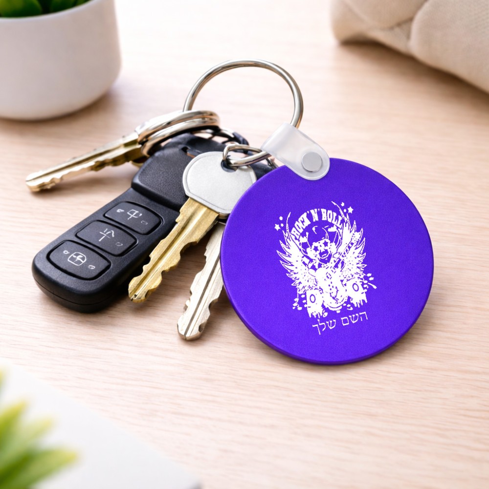 מחזיק מפתחות בצורת עיגול בעיצוב אישי עם השם שלך בעיצוב רוקנרול גודל המחזיק 5 × 5 ס"מ. את השם המבוקש ניתן לציין בהזמנה, אם לא צויין אנחנו ניצור קשר לבירור.