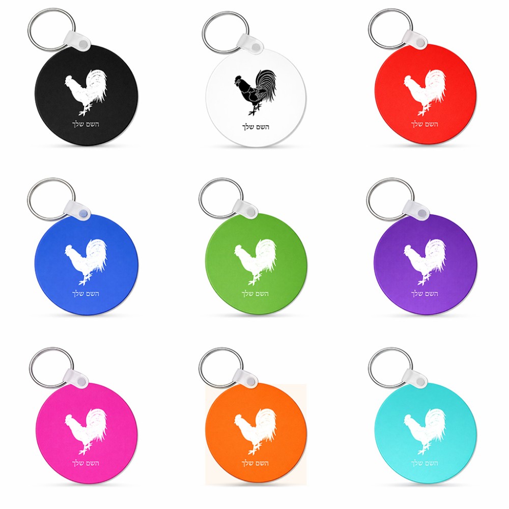 מחזיק מפתחות בצורת עיגול בעיצוב אישי עם השם שלך בעיצוב תרנגול גודל המחזיק 5 × 5 ס"מ