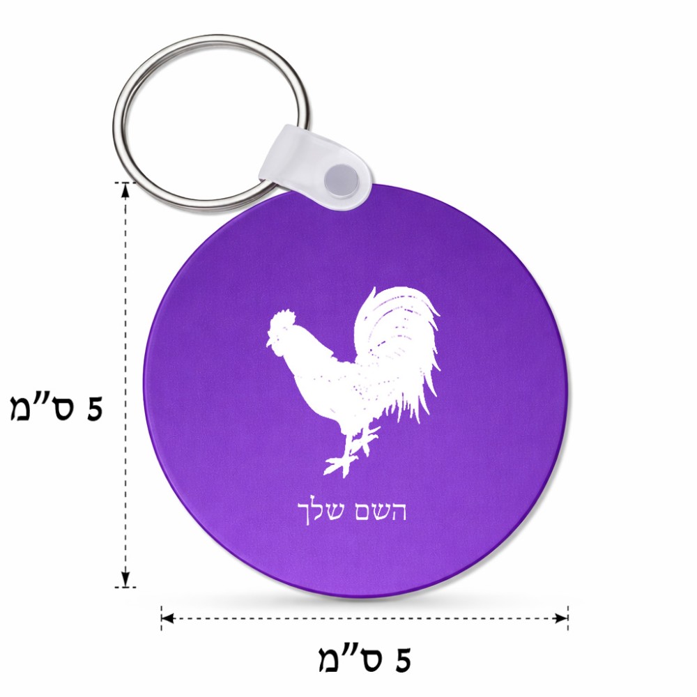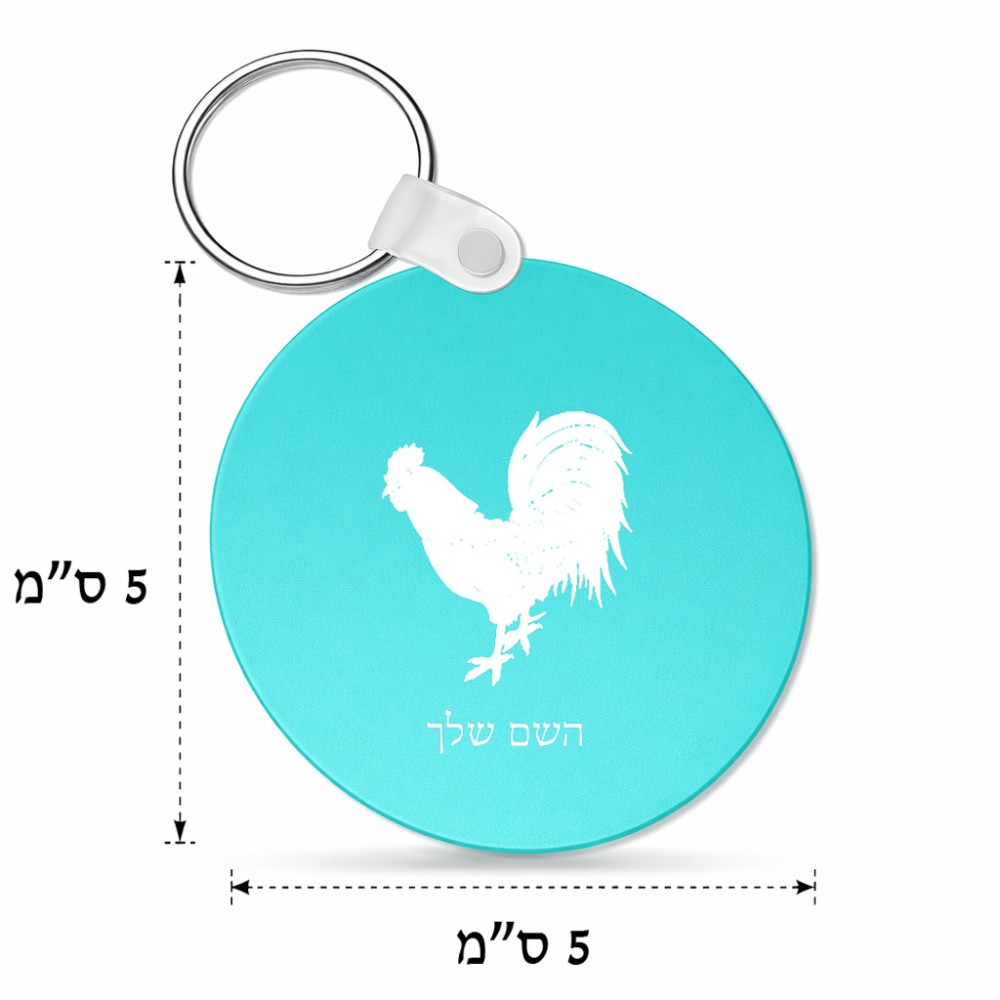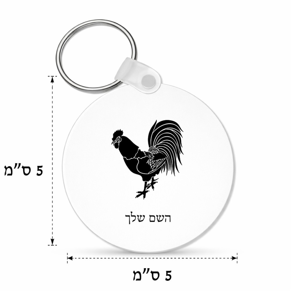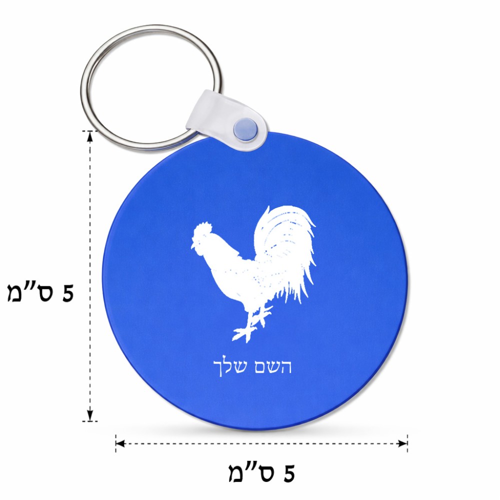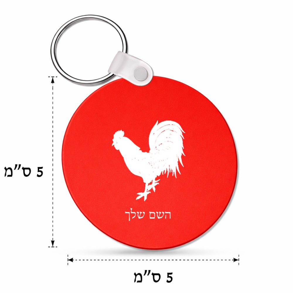 מחזיק מפתחות בצורת עיגול בעיצוב אישי עם השם שלך בעיצוב תרנגול גודל המחזיק 5 × 5 ס"מ. את השם המבוקש ניתן לציין בהזמנה, אם לא צויין אנחנו ניצור קשר לבירור.