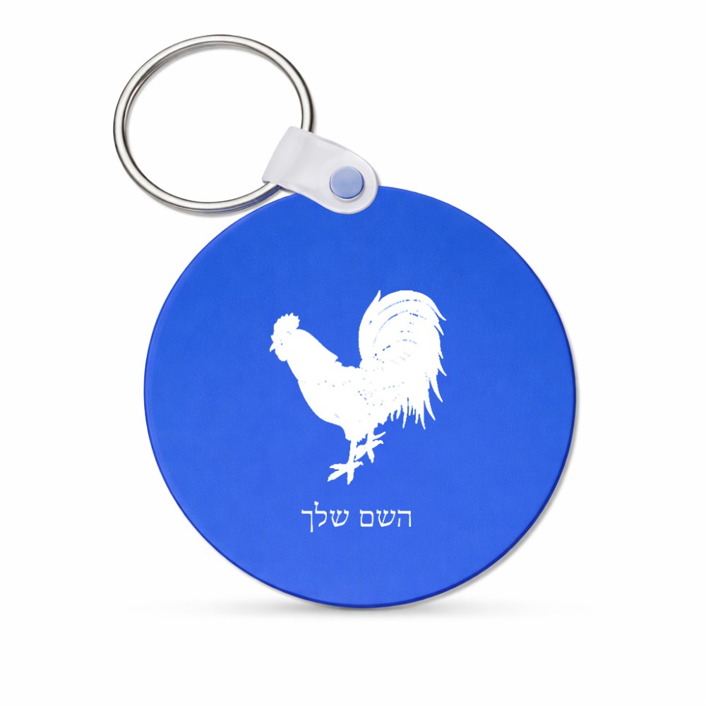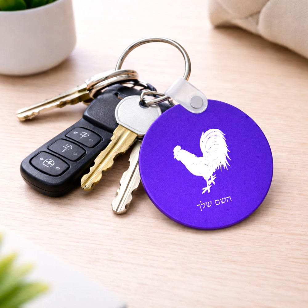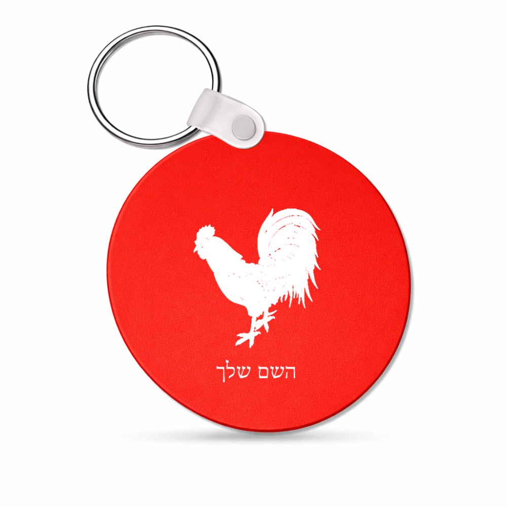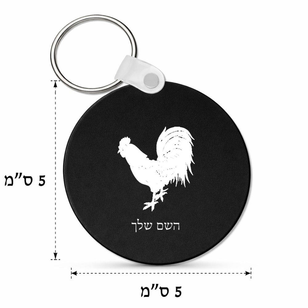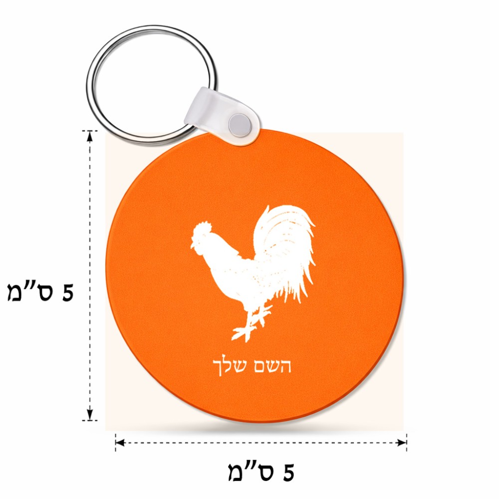 מחזיק מפתחות בצורת עיגול בעיצוב אישי עם השם שלך בעיצוב תרנגול גודל המחזיק 5 × 5 ס"מ. את השם המבוקש ניתן לציין בהזמנה, אם לא צויין אנחנו ניצור קשר לבירור.