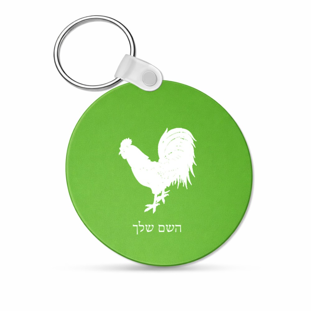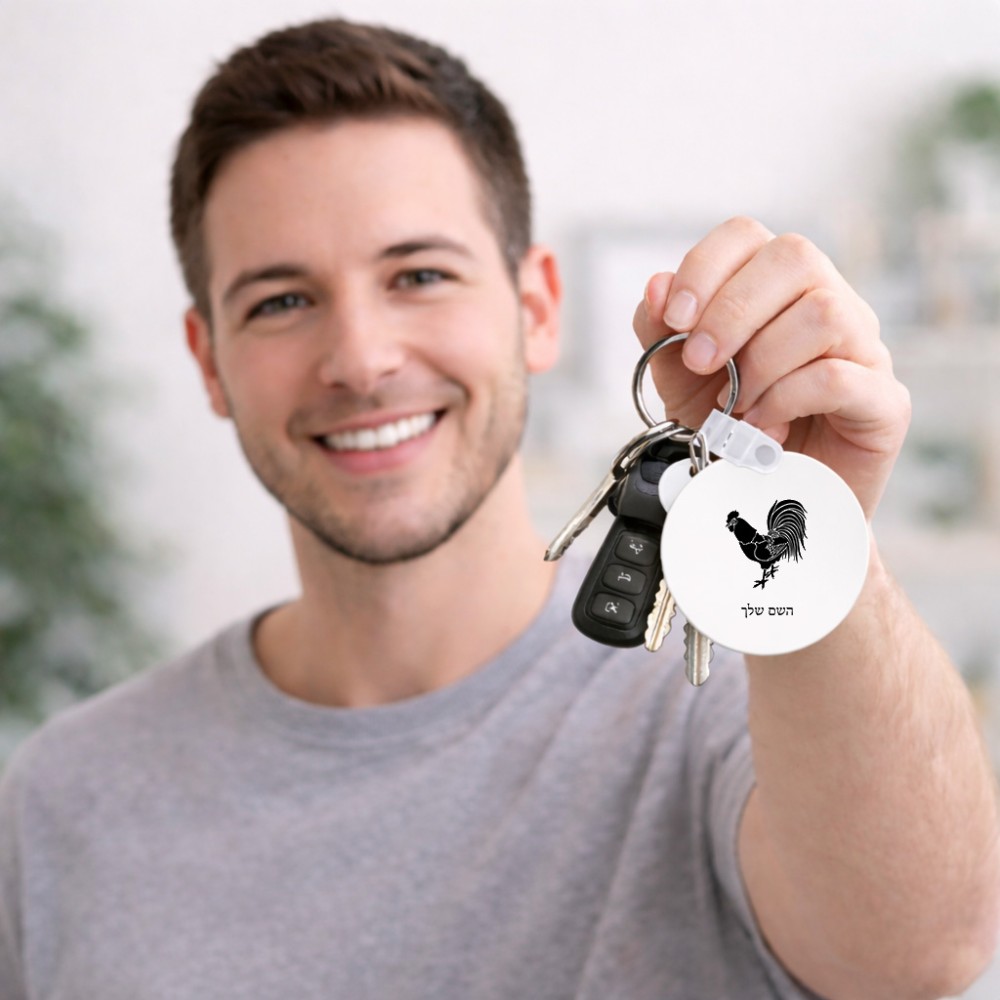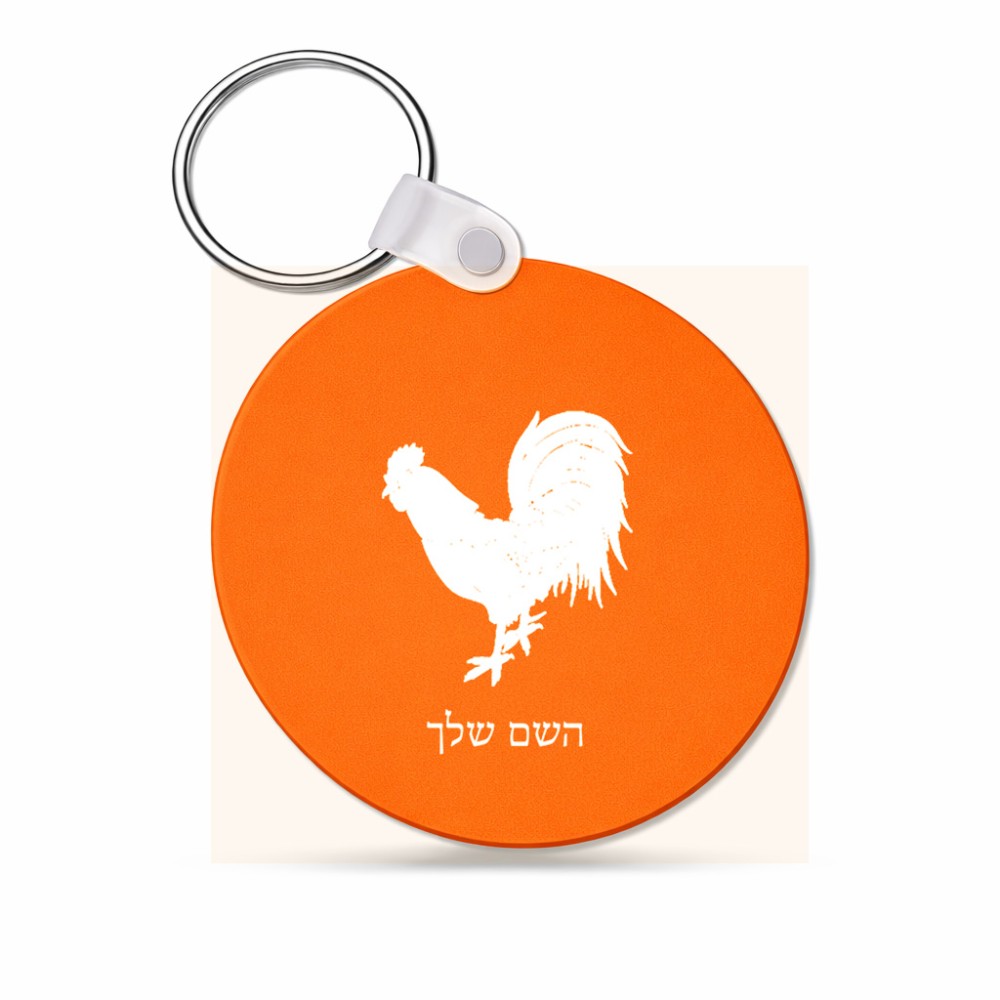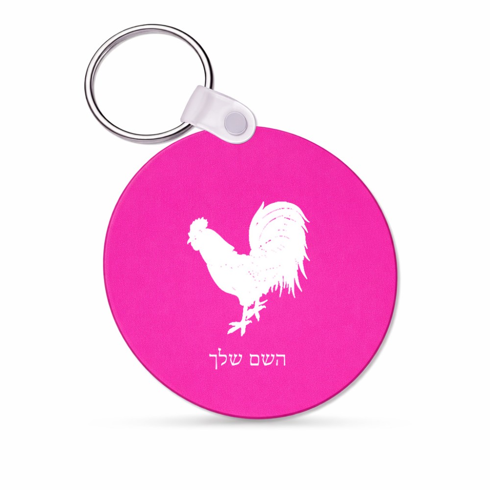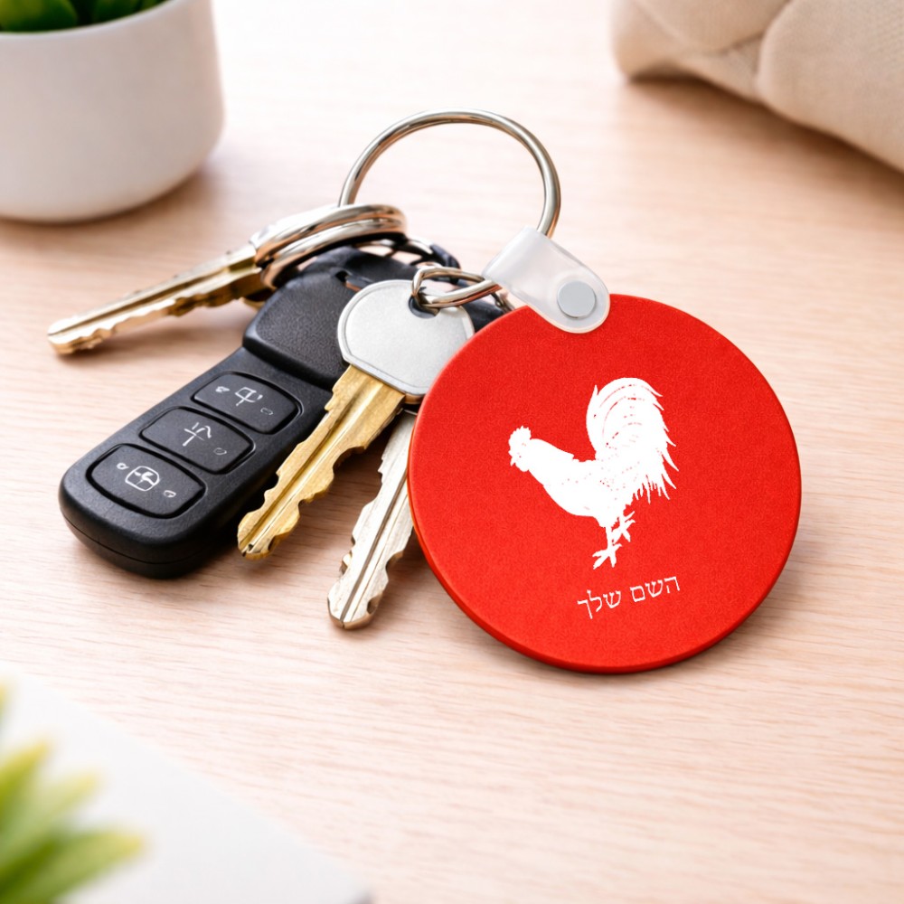 מחזיק מפתחות בצורת עיגול בעיצוב אישי עם השם שלך בעיצוב תרנגול גודל המחזיק 5 × 5 ס"מ. את השם המבוקש ניתן לציין בהזמנה, אם לא צויין אנחנו ניצור קשר לבירור.