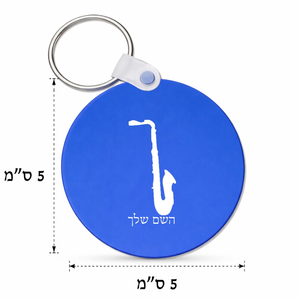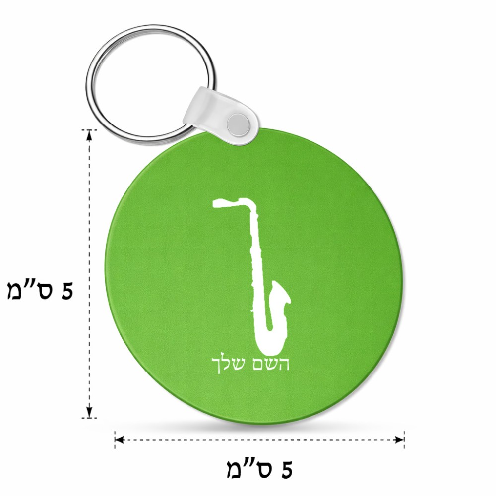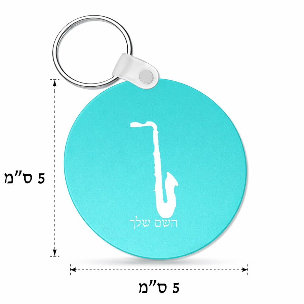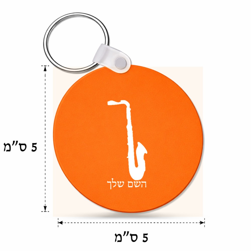 מחזיק מפתחות בצורת עיגול בעיצוב אישי עם השם שלך בעיצוב סקסופון גודל המחזיק 5 × 5 ס"מ. את השם המבוקש ניתן לציין בהזמנה, אם לא צויין אנחנו ניצור קשר לבירור.
