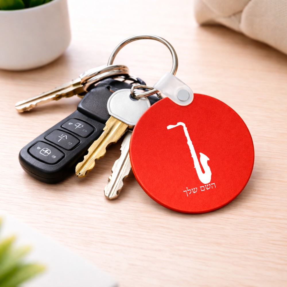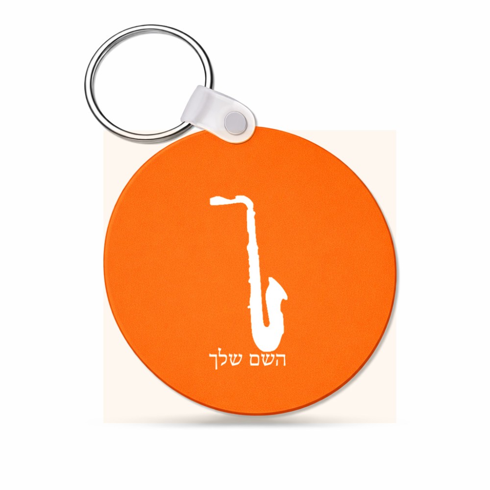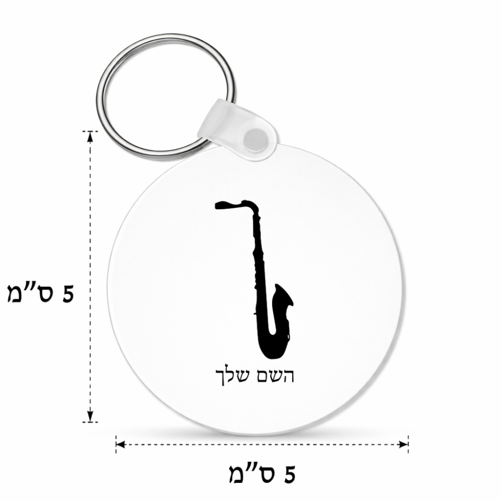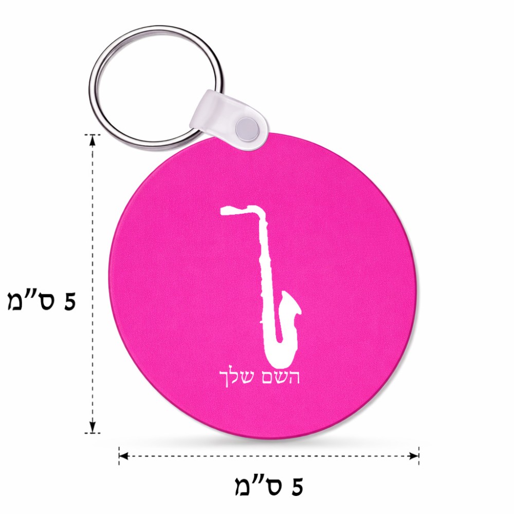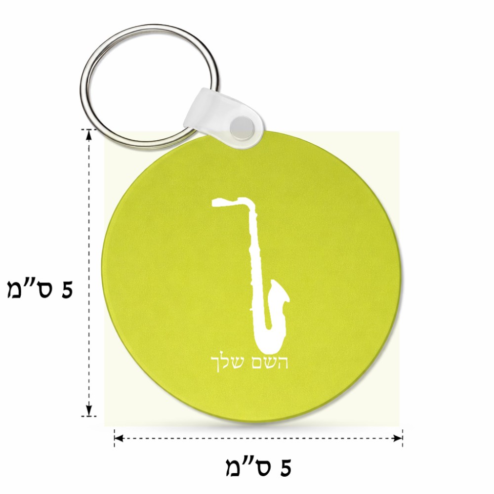 מחזיק מפתחות בצורת עיגול בעיצוב אישי עם השם שלך בעיצוב סקסופון גודל המחזיק 5 × 5 ס"מ. את השם המבוקש ניתן לציין בהזמנה, אם לא צויין אנחנו ניצור קשר לבירור.