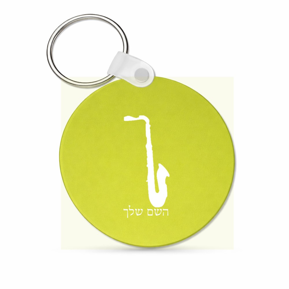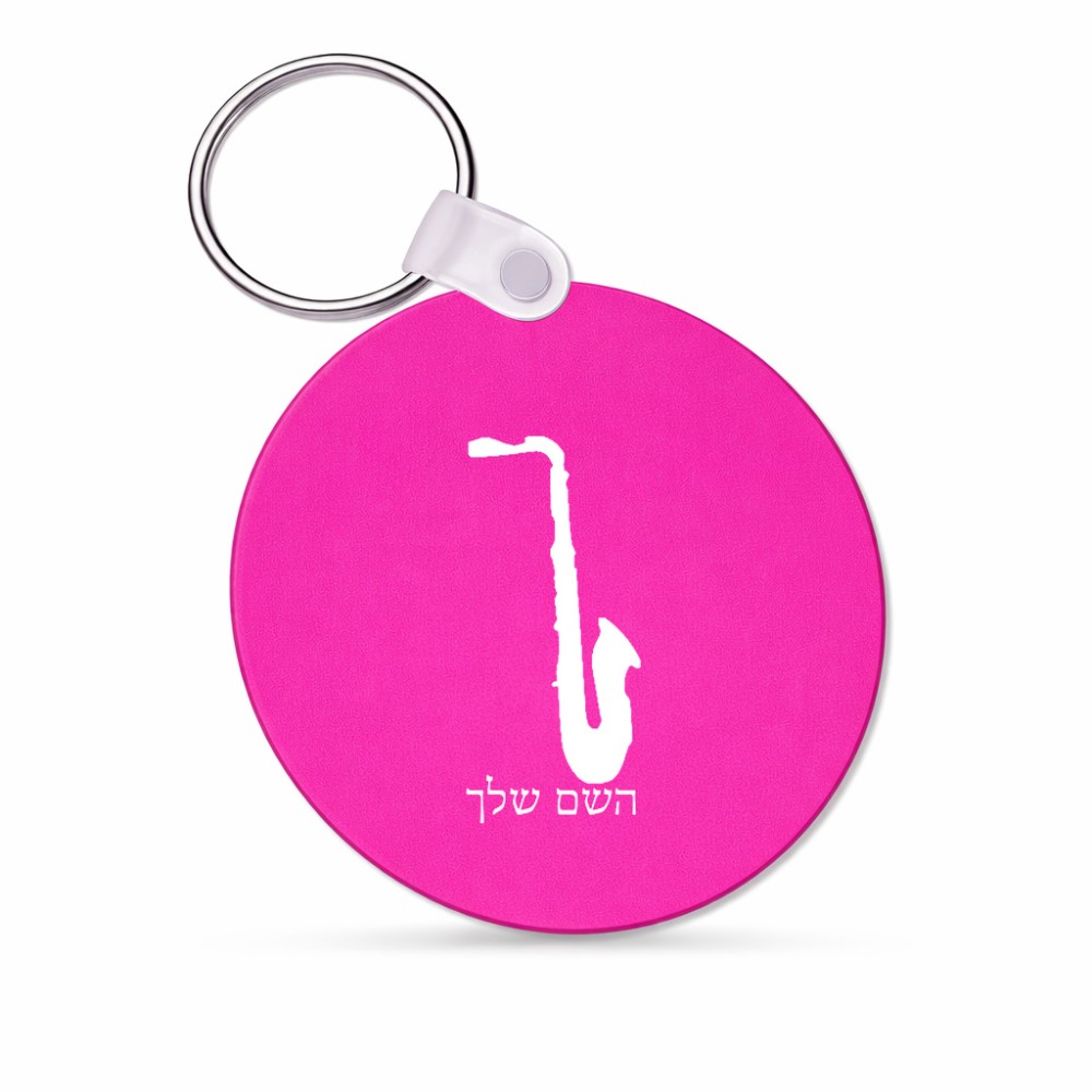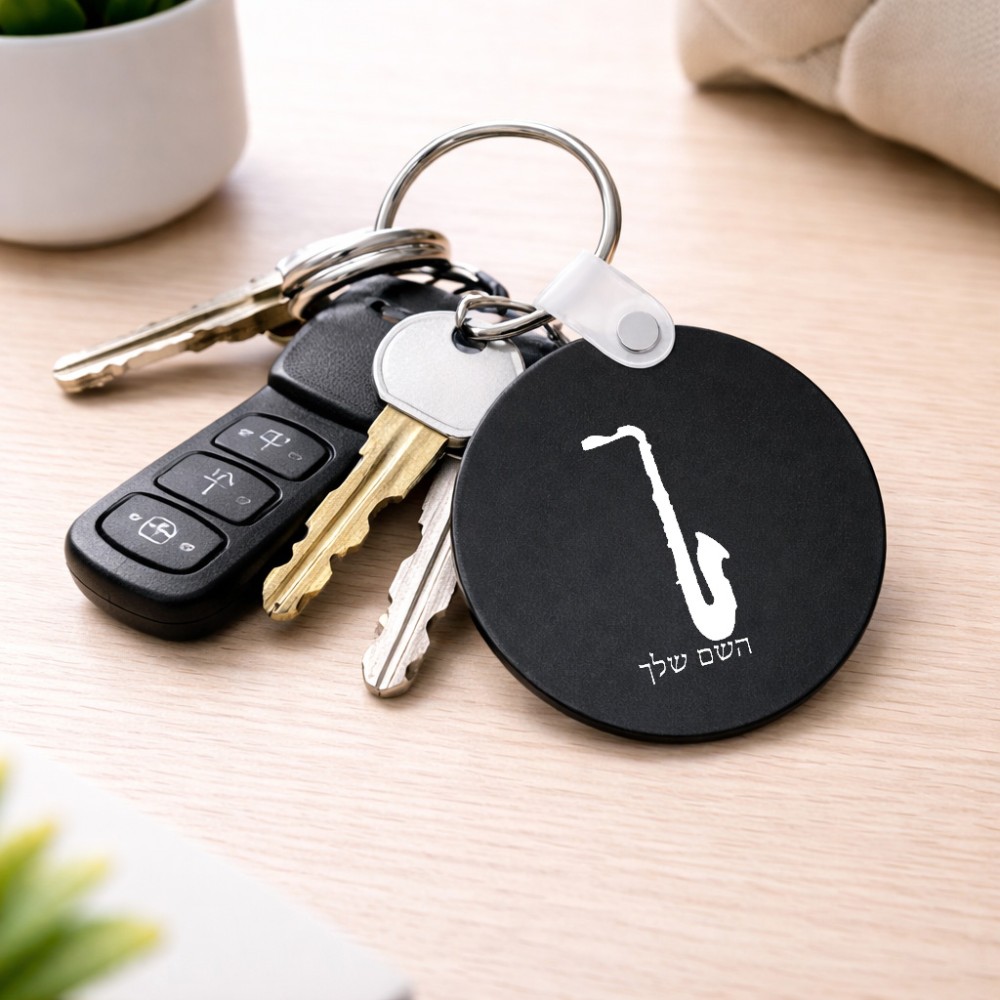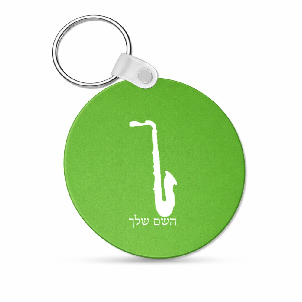 מחזיק מפתחות בצורת עיגול בעיצוב אישי עם השם שלך בעיצוב סקסופון גודל המחזיק 5 × 5 ס"מ. את השם המבוקש ניתן לציין בהזמנה, אם לא צויין אנחנו ניצור קשר לבירור.