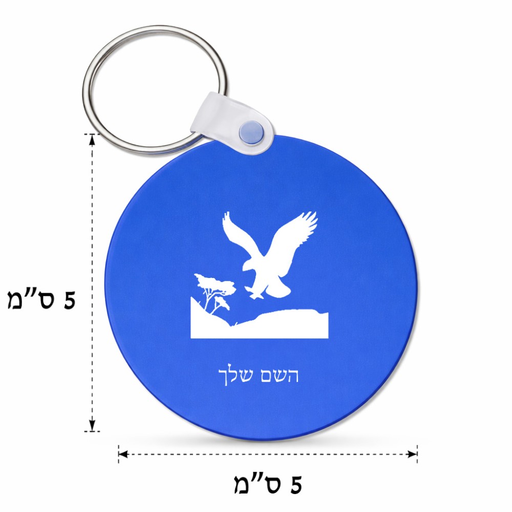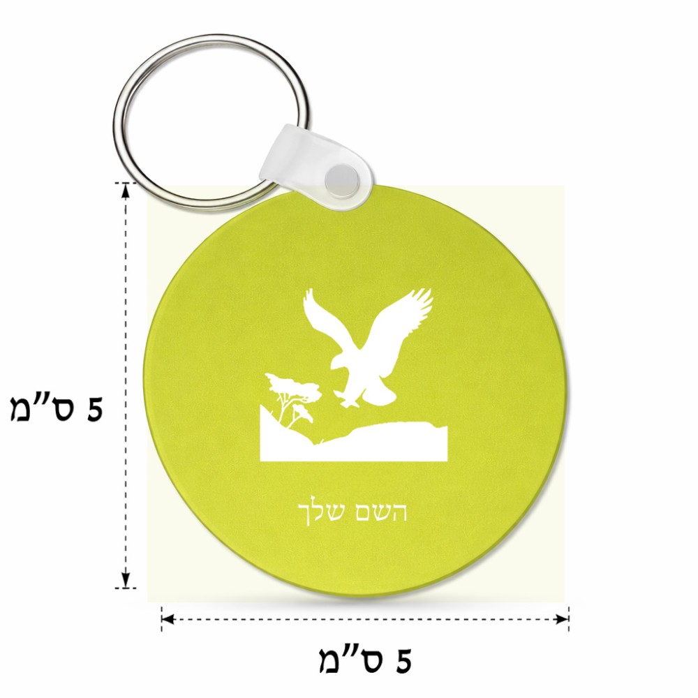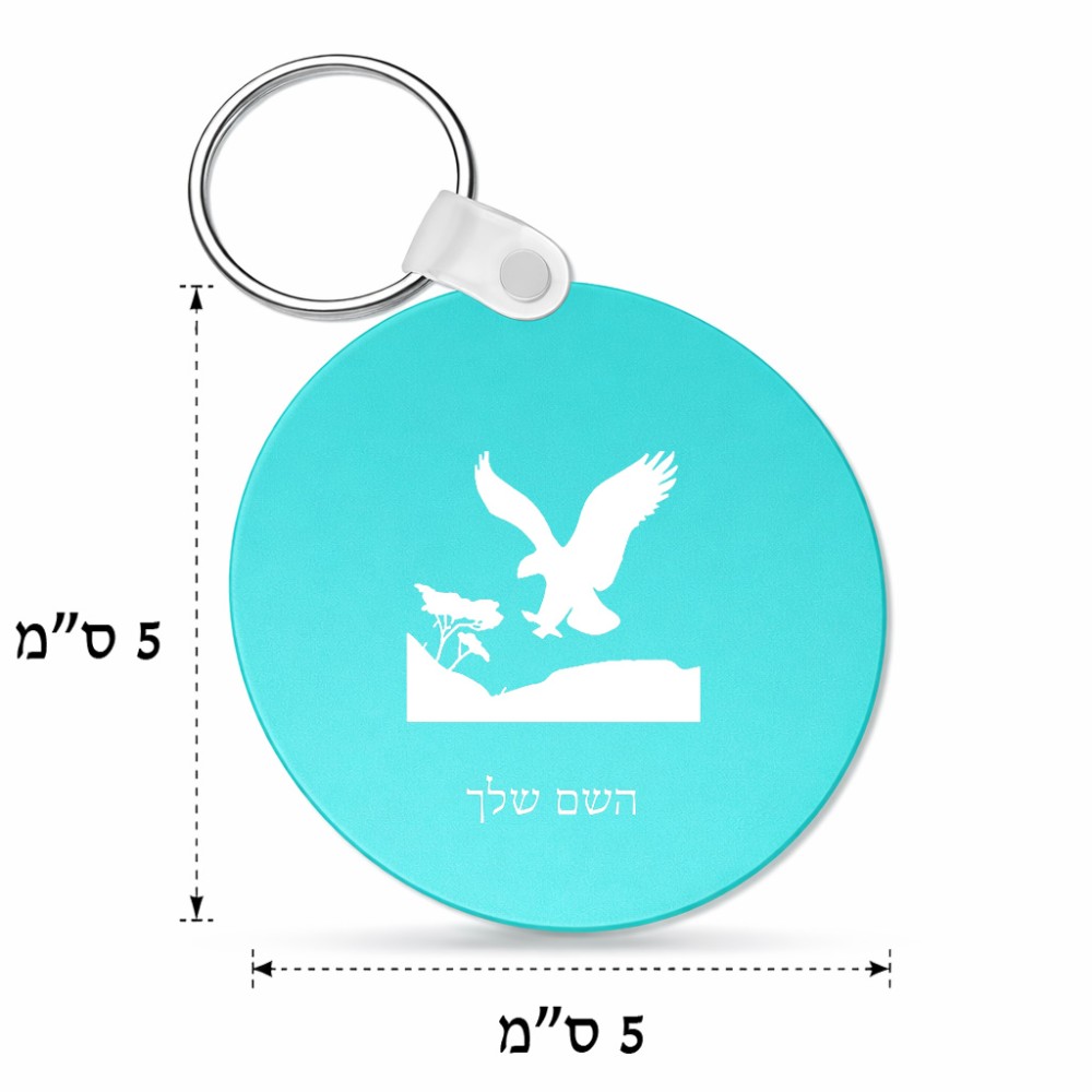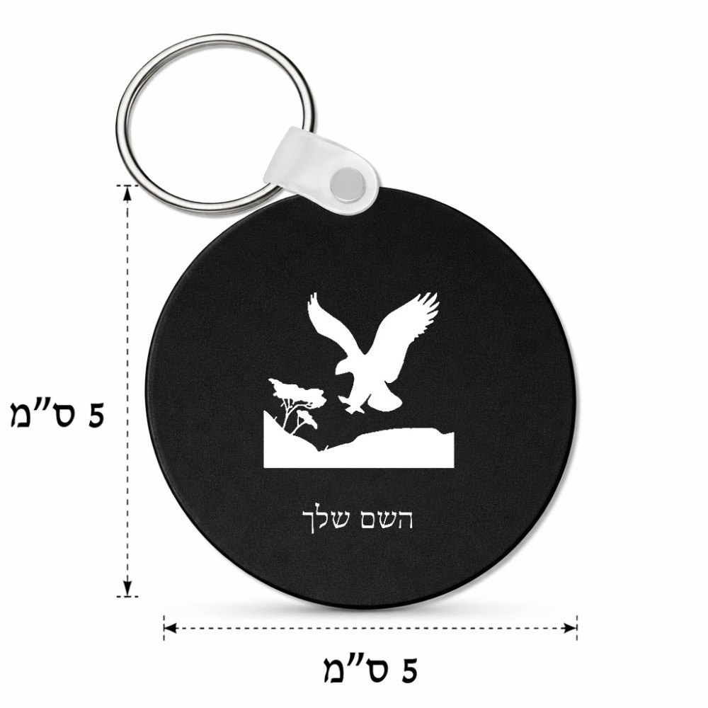 מחזיק מפתחות בצורת עיגול בעיצוב אישי עם השם שלך בעיצוב נשר אמריקאי גודל המחזיק 5 × 5 ס"מ. את השם המבוקש ניתן לציין בהזמנה, אם לא צויין אנחנו ניצור קשר לבירור.
