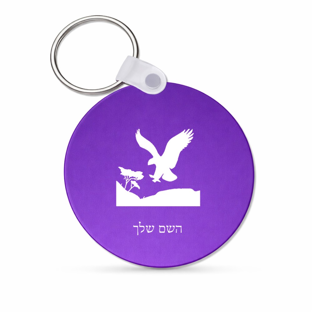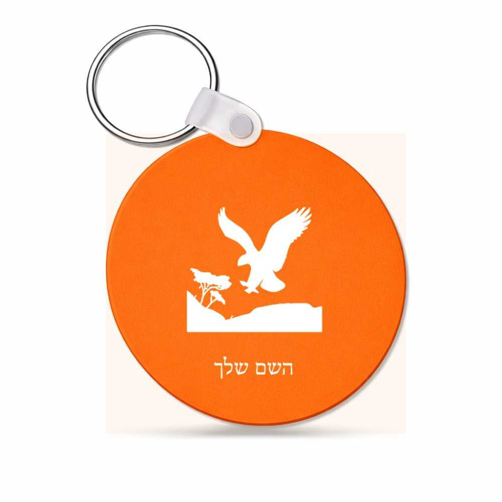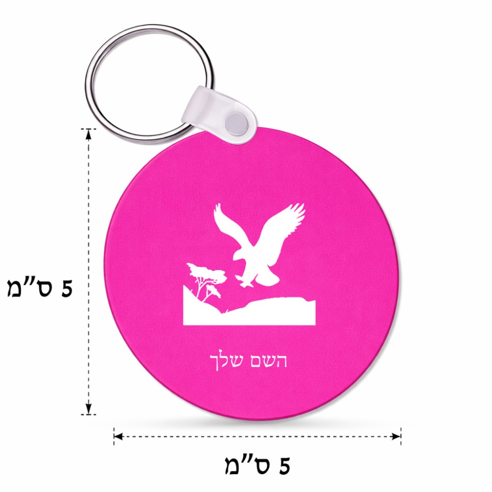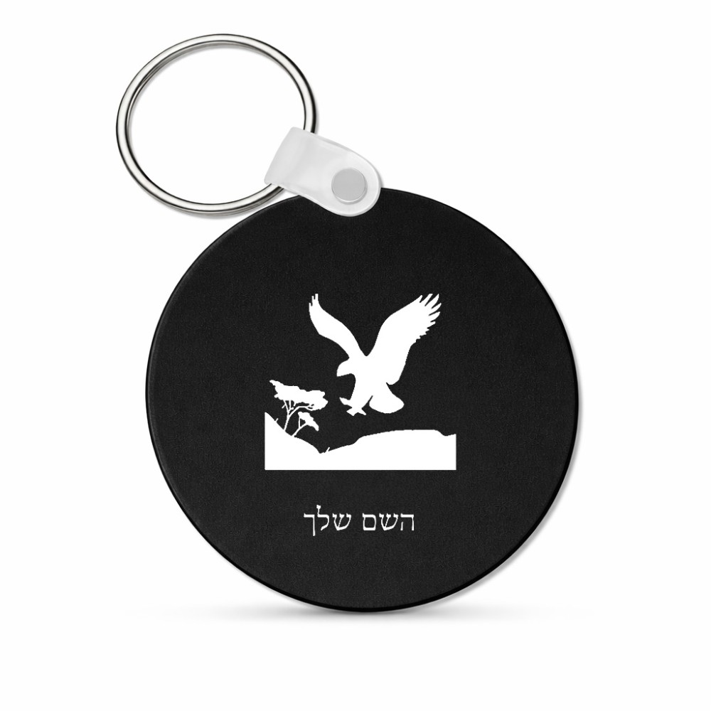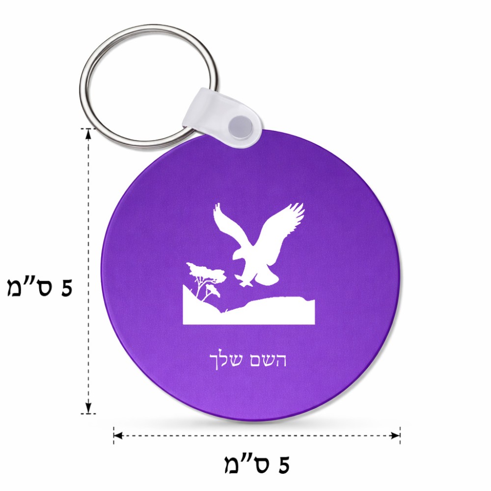מחזיק מפתחות בצורת עיגול בעיצוב אישי עם השם שלך בעיצוב נשר אמריקאי גודל המחזיק 5 × 5 ס"מ. את השם המבוקש ניתן לציין בהזמנה, אם לא צויין אנחנו ניצור קשר לבירור.