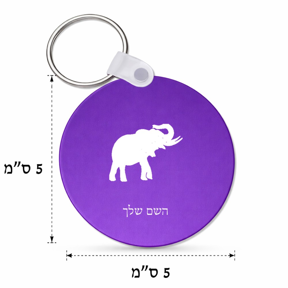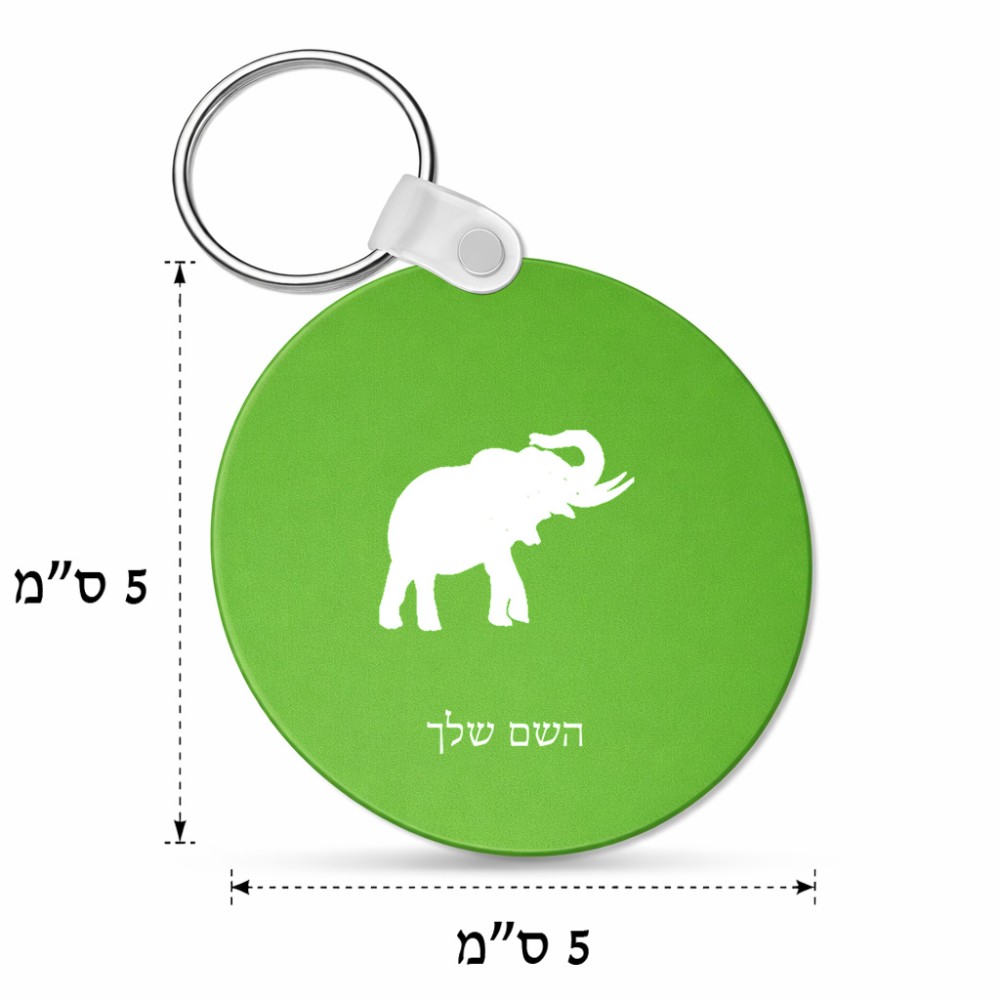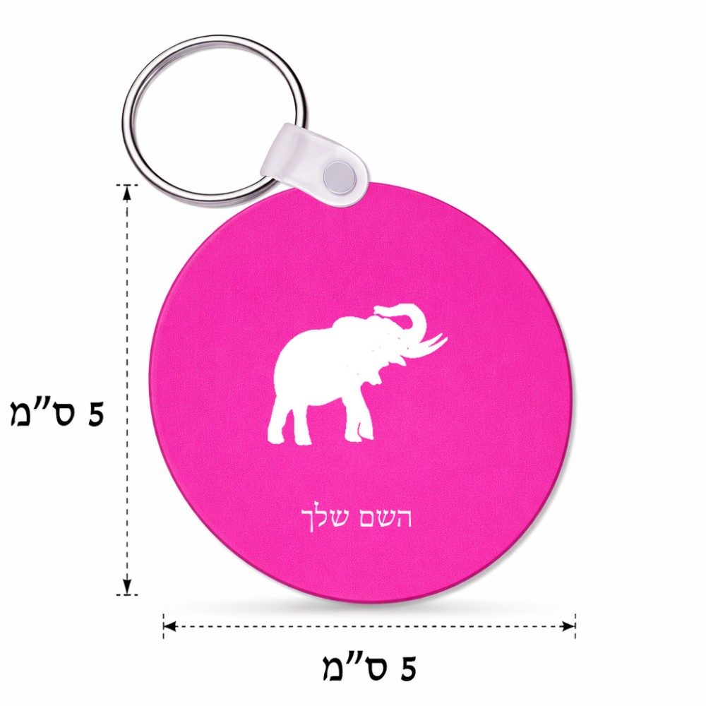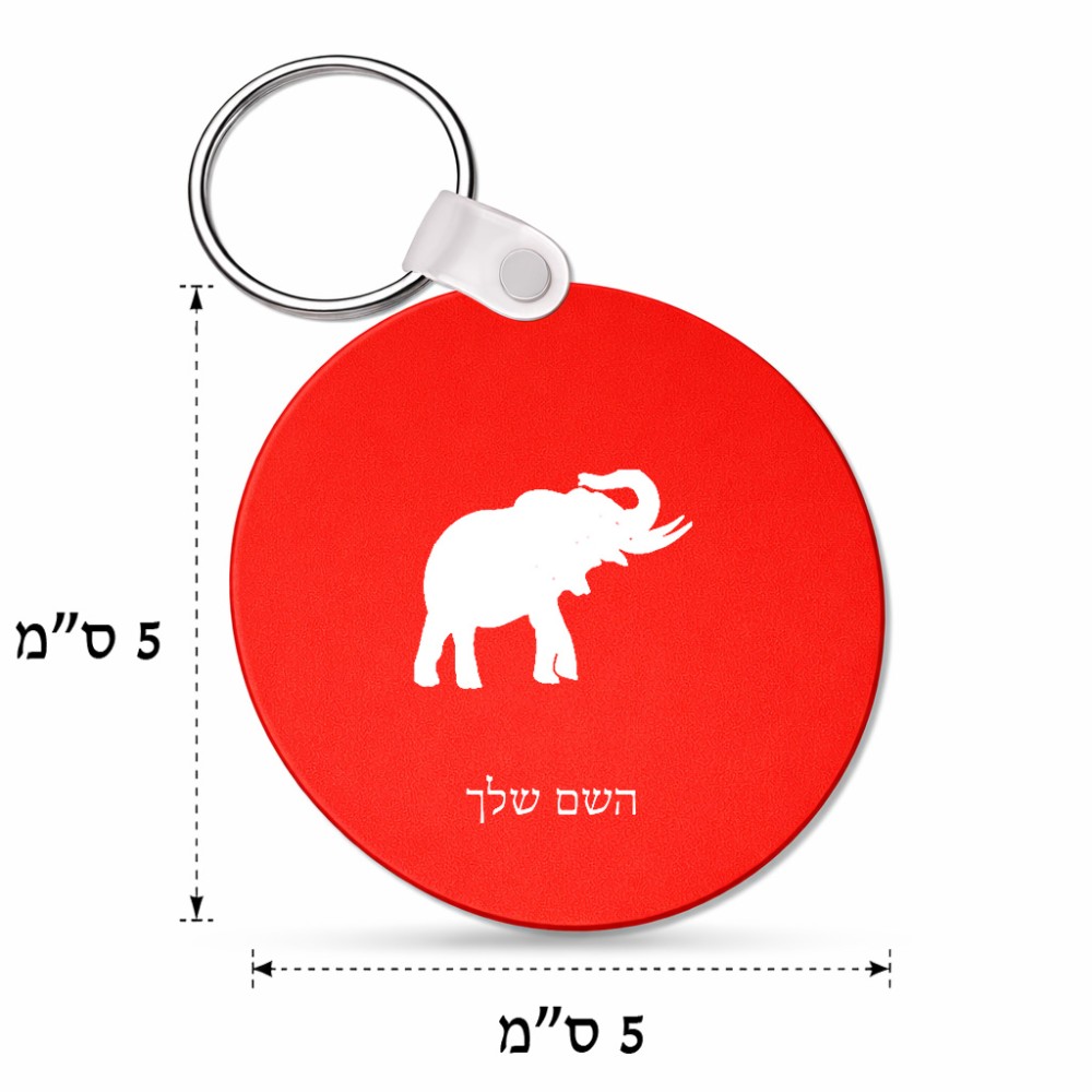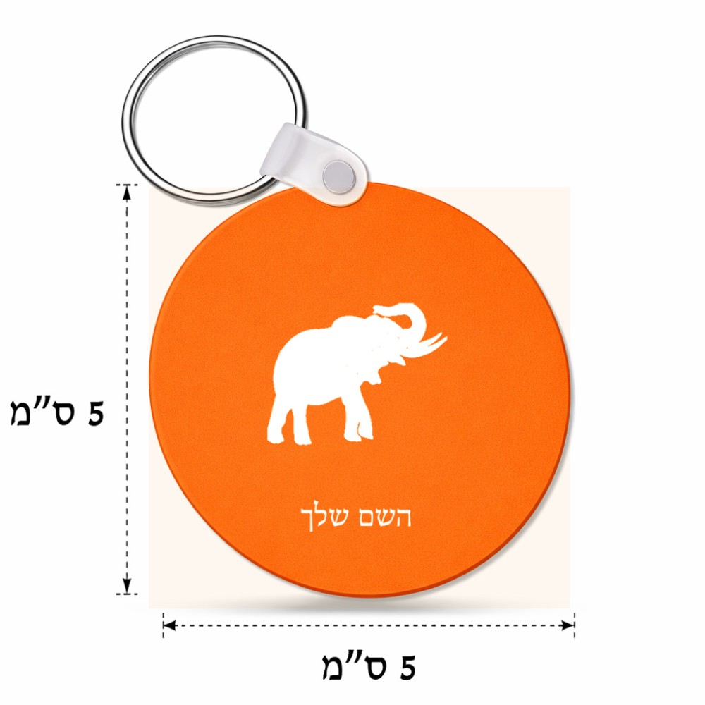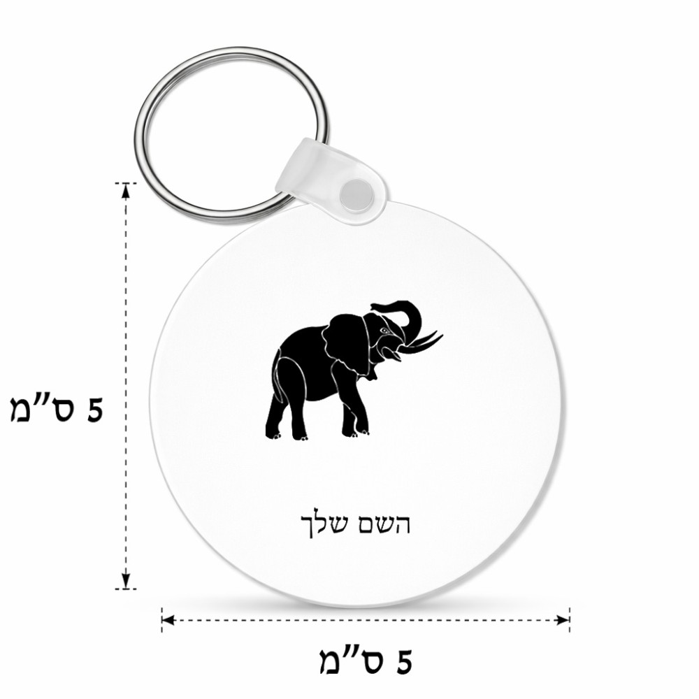 מחזיק מפתחות בצורת עיגול בעיצוב אישי עם השם שלך בעיצוב פיל גודל המחזיק 5 × 5 ס"מ. את השם המבוקש ניתן לציין בהזמנה, אם לא צויין אנחנו ניצור קשר לבירור.