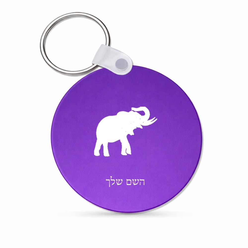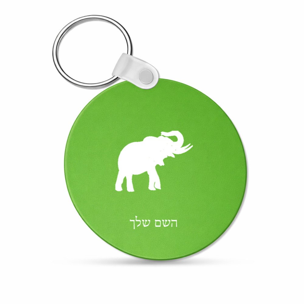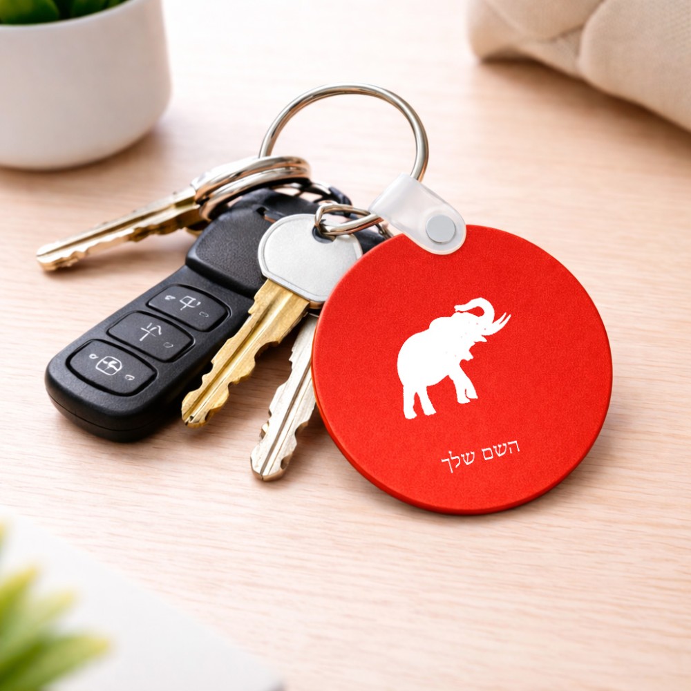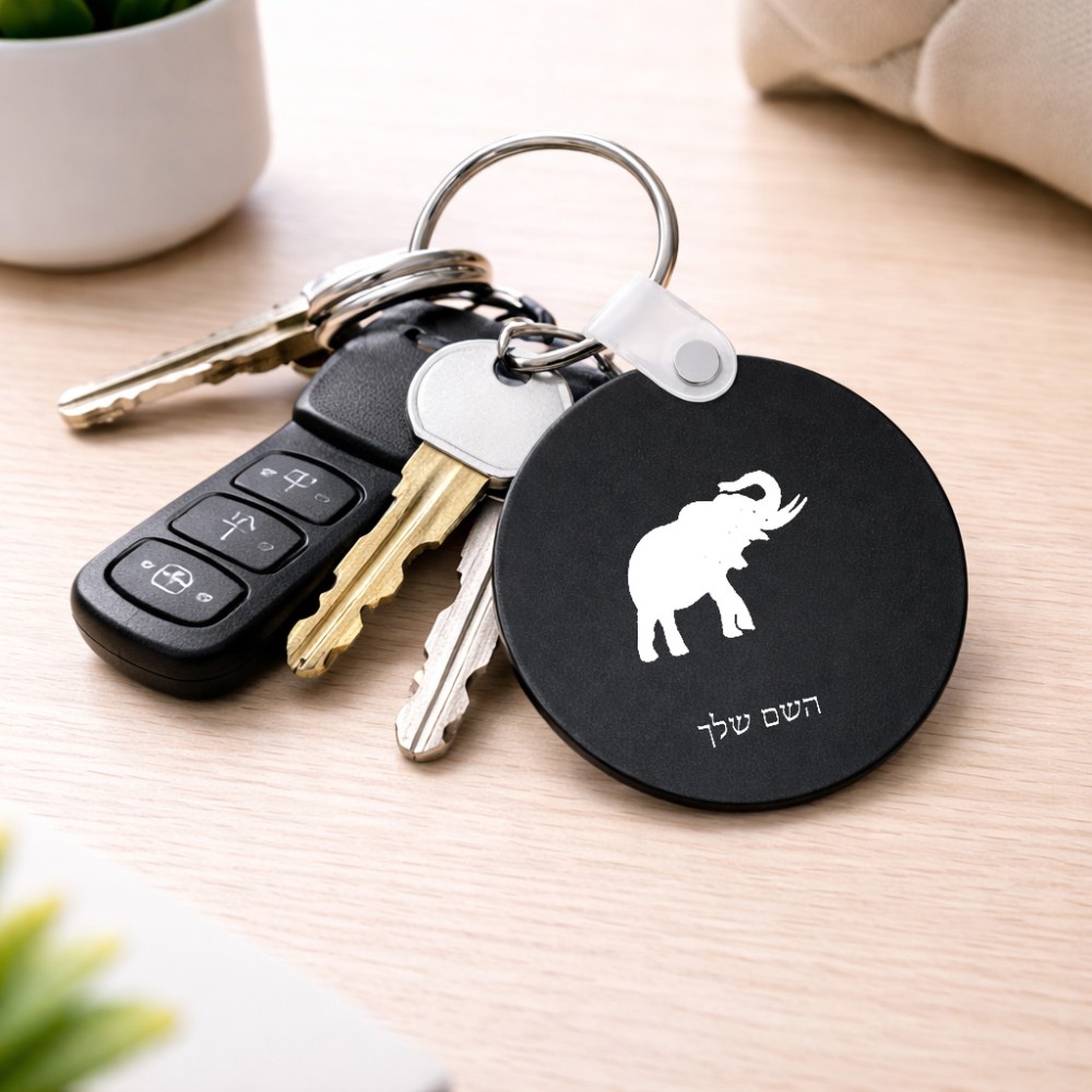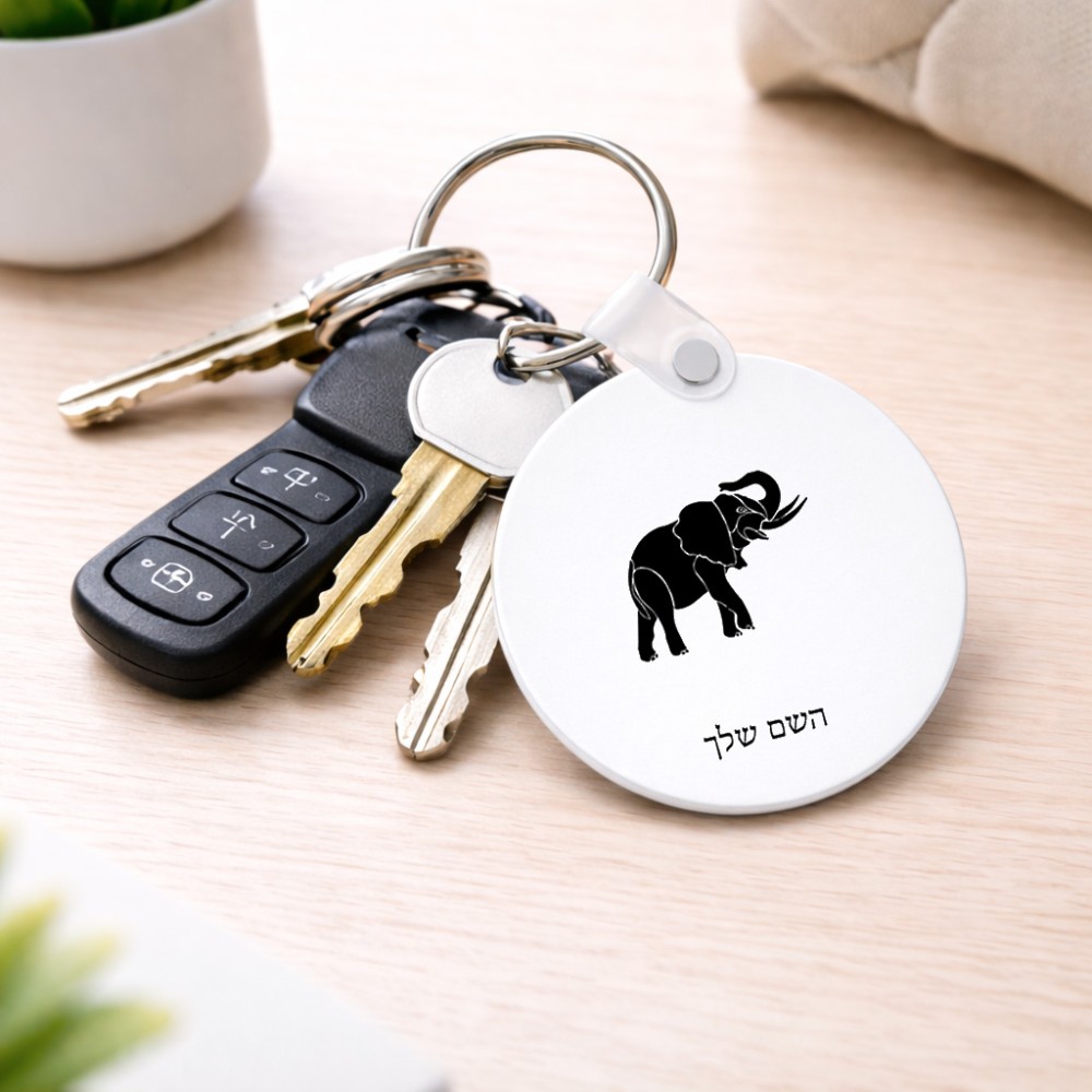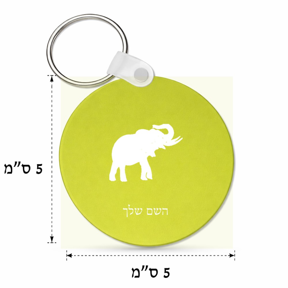 מחזיק מפתחות בצורת עיגול בעיצוב אישי עם השם שלך בעיצוב פיל גודל המחזיק 5 × 5 ס"מ. את השם המבוקש ניתן לציין בהזמנה, אם לא צויין אנחנו ניצור קשר לבירור.