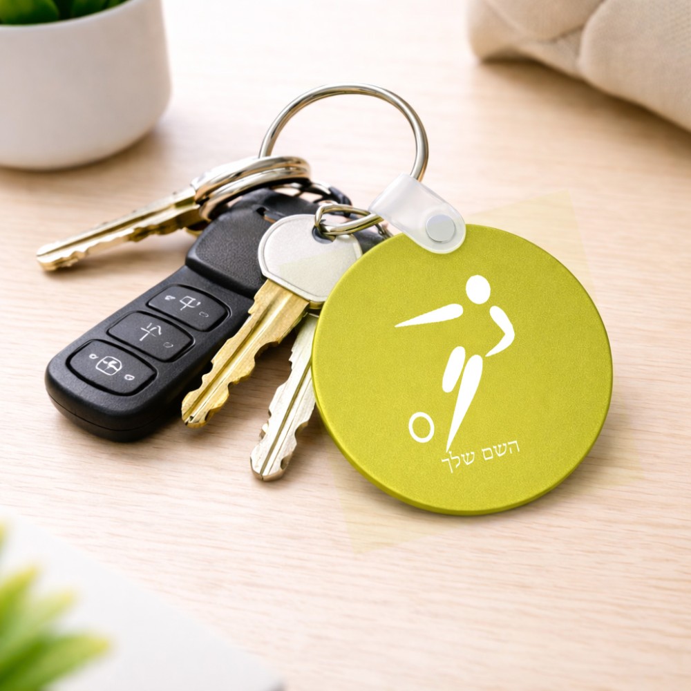 מחזיק מפתחות בצורת עיגול בעיצוב אישי עם השם שלך בעיצוב כדורגל אולימפי גודל המחזיק 5 × 5 ס"מ. את השם המבוקש ניתן לציין בהזמנה, אם לא צויין אנחנו ניצור קשר לבירור.