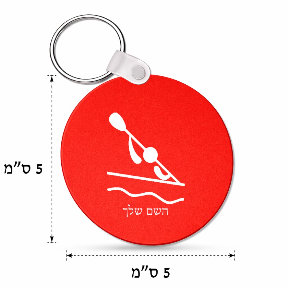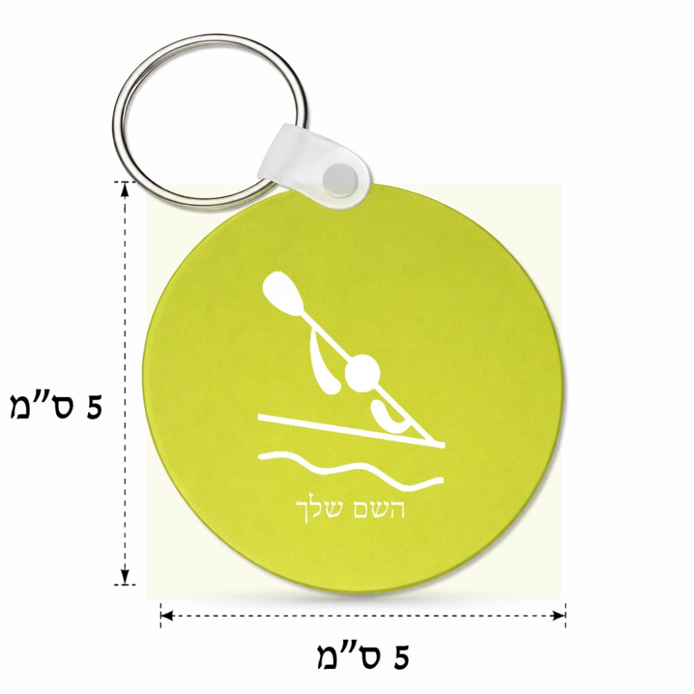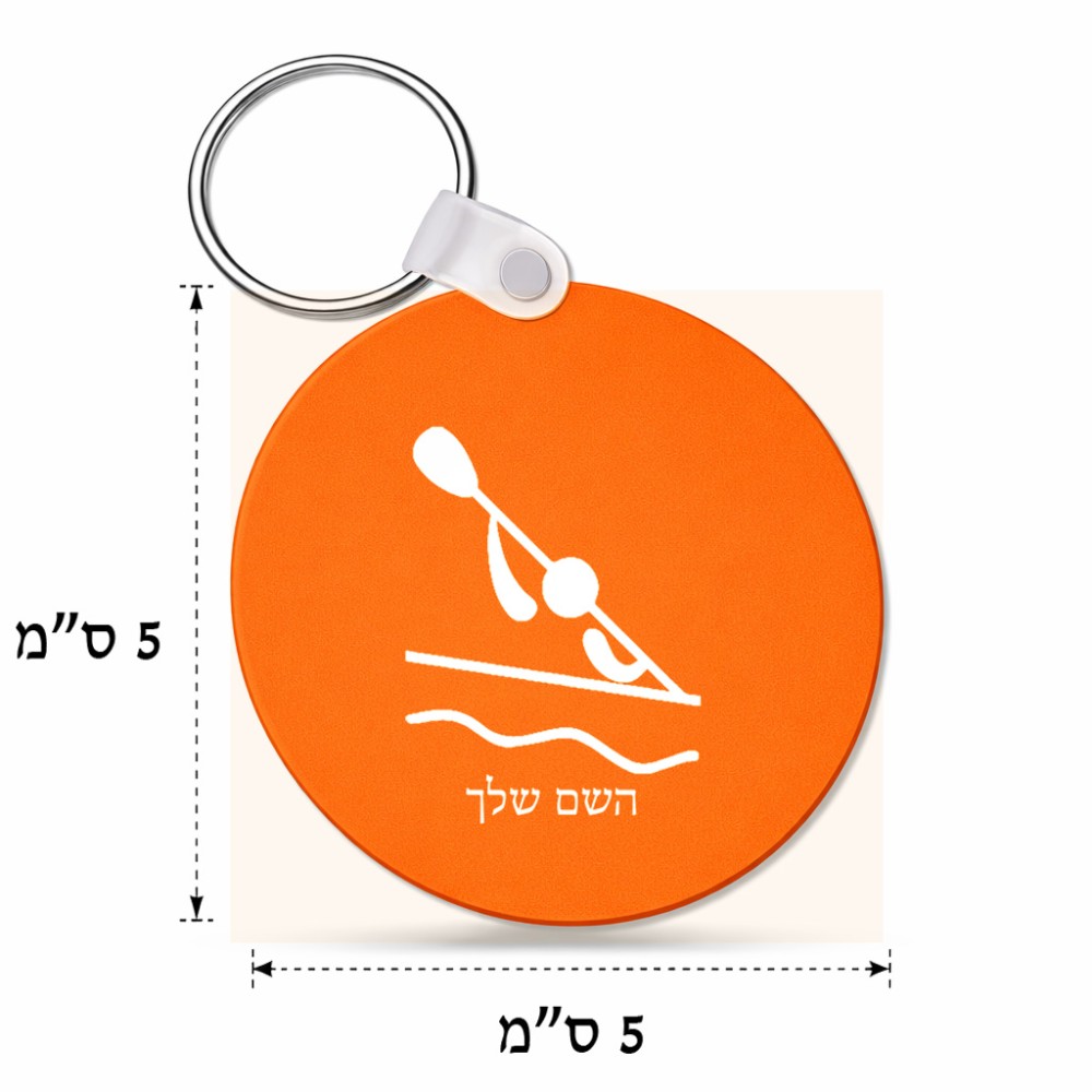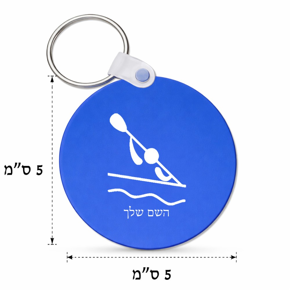 מחזיק מפתחות בצורת עיגול בעיצוב אישי עם השם שלך בעיצוב קיאק אולימפי גודל המחזיק 5 × 5 ס"מ. את השם המבוקש ניתן לציין בהזמנה, אם לא צויין אנחנו ניצור קשר לבירור.