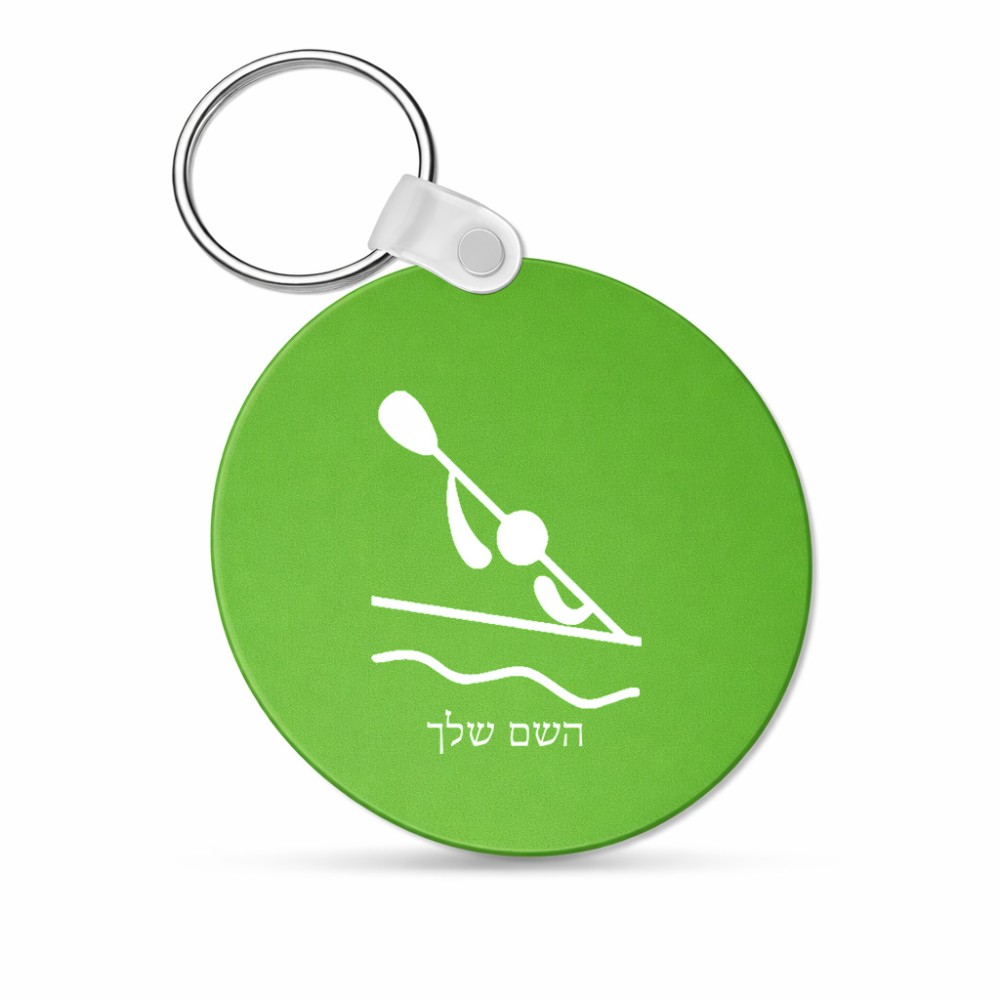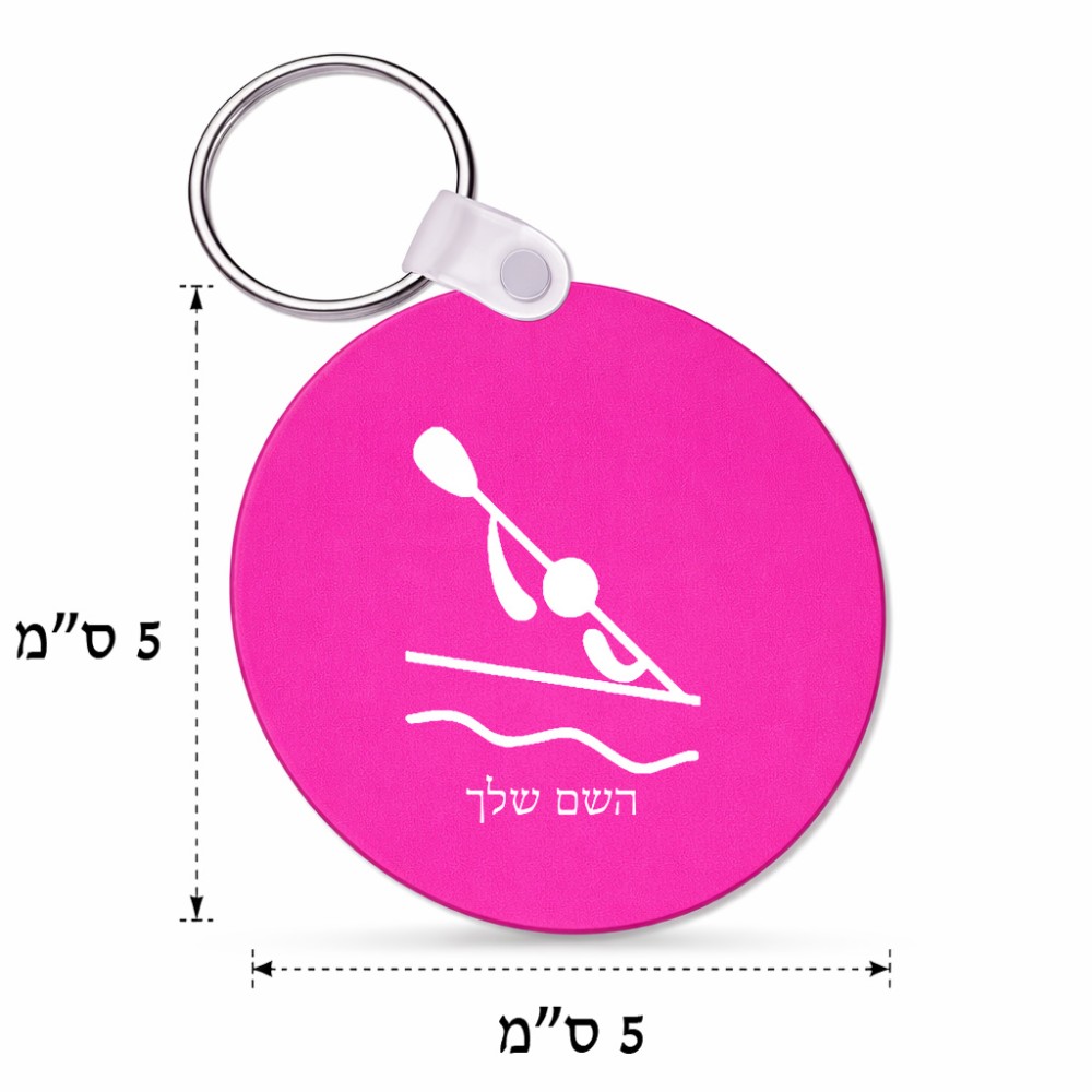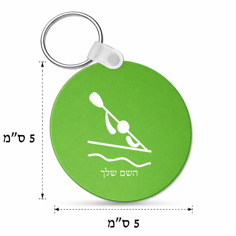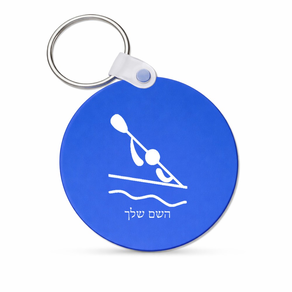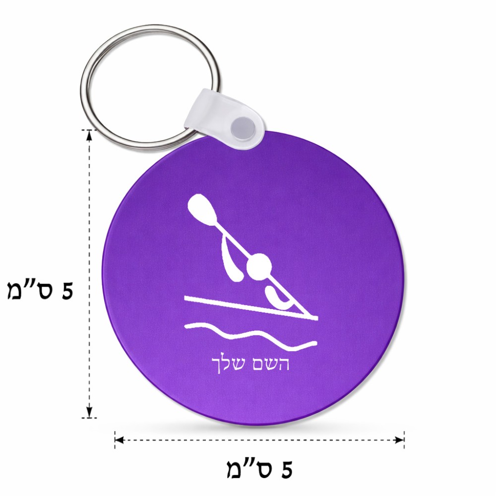 מחזיק מפתחות בצורת עיגול בעיצוב אישי עם השם שלך בעיצוב קיאק אולימפי גודל המחזיק 5 × 5 ס"מ. את השם המבוקש ניתן לציין בהזמנה, אם לא צויין אנחנו ניצור קשר לבירור.