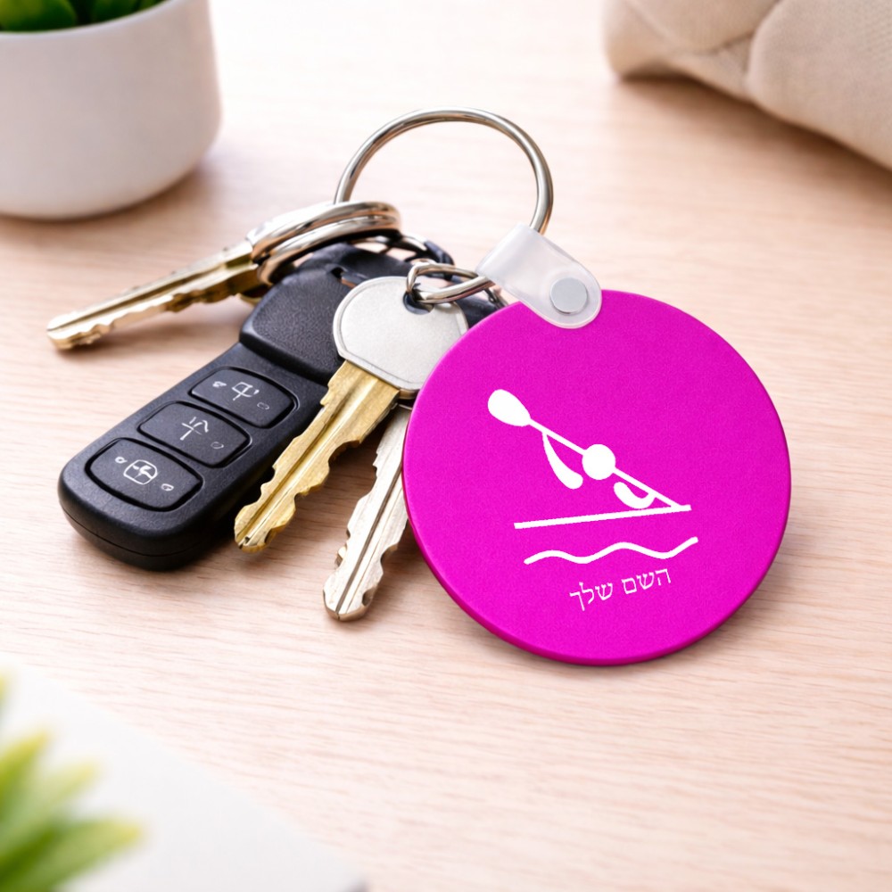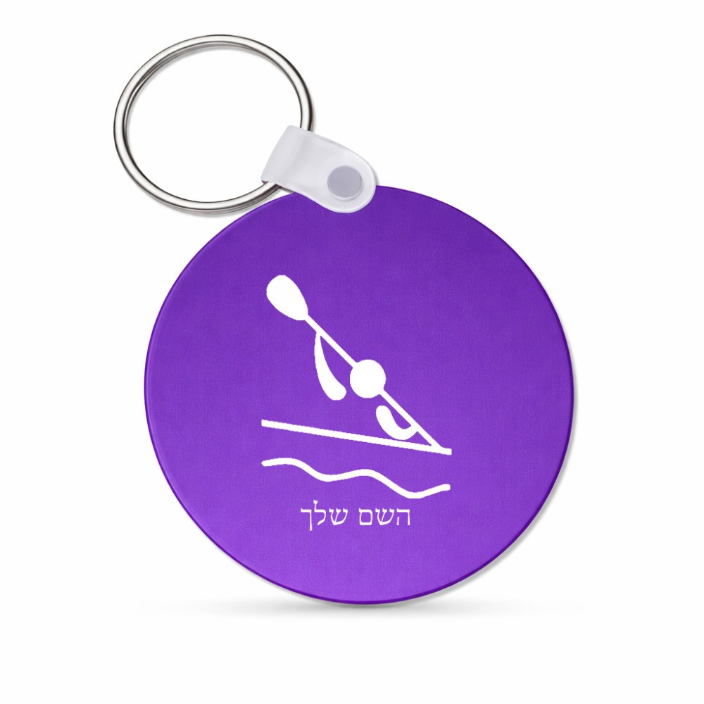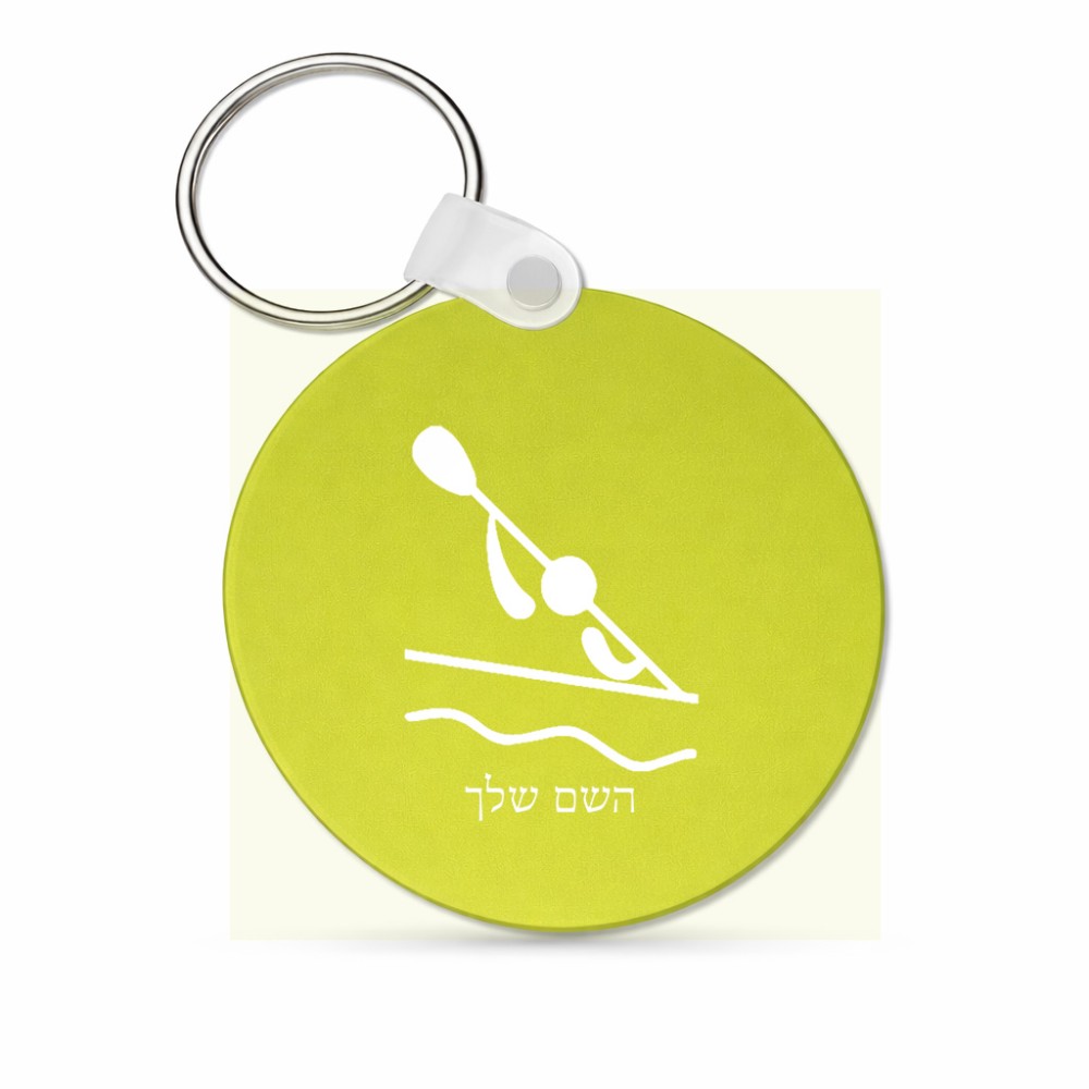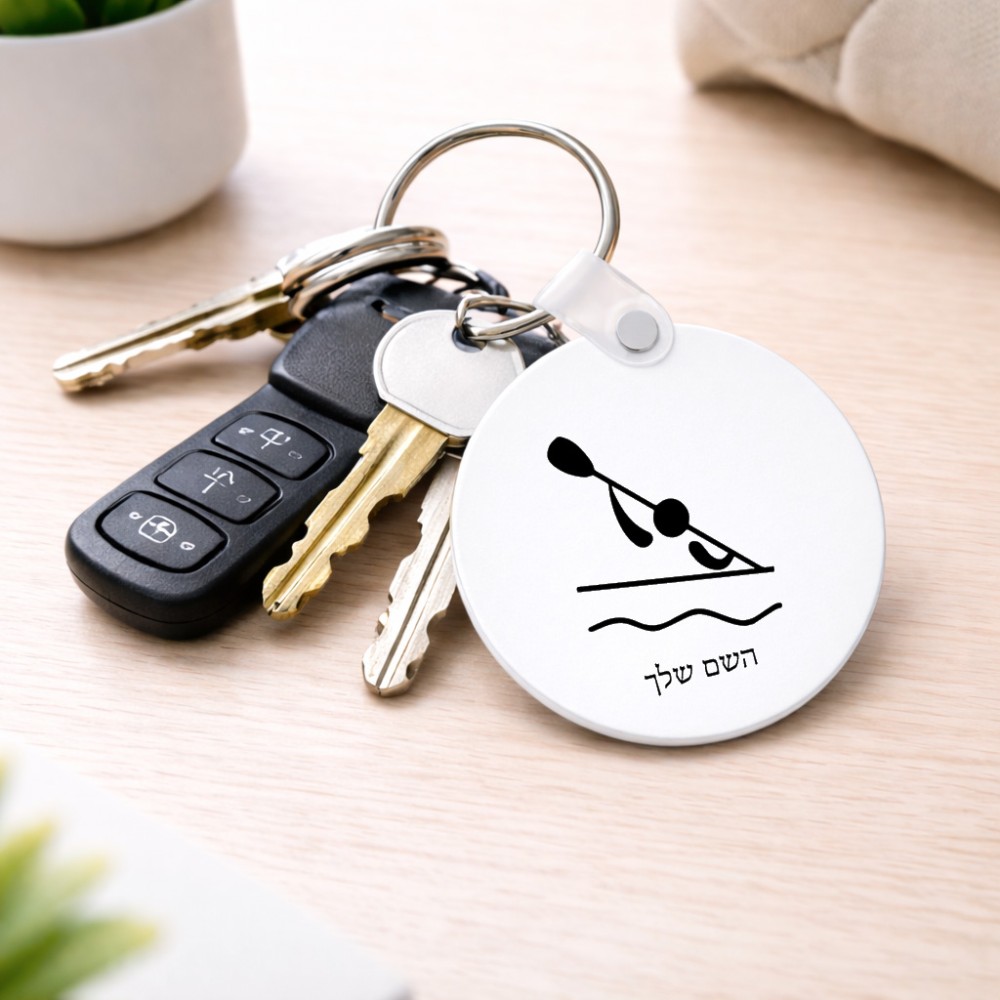 מחזיק מפתחות בצורת עיגול בעיצוב אישי עם השם שלך בעיצוב קיאק אולימפי גודל המחזיק 5 × 5 ס"מ. את השם המבוקש ניתן לציין בהזמנה, אם לא צויין אנחנו ניצור קשר לבירור.