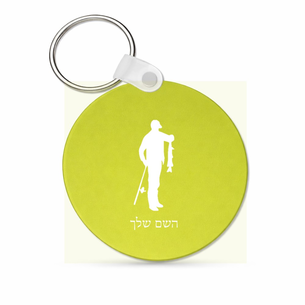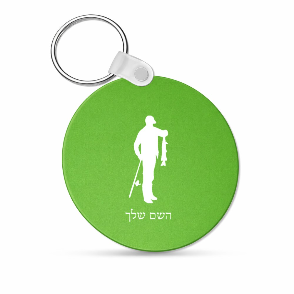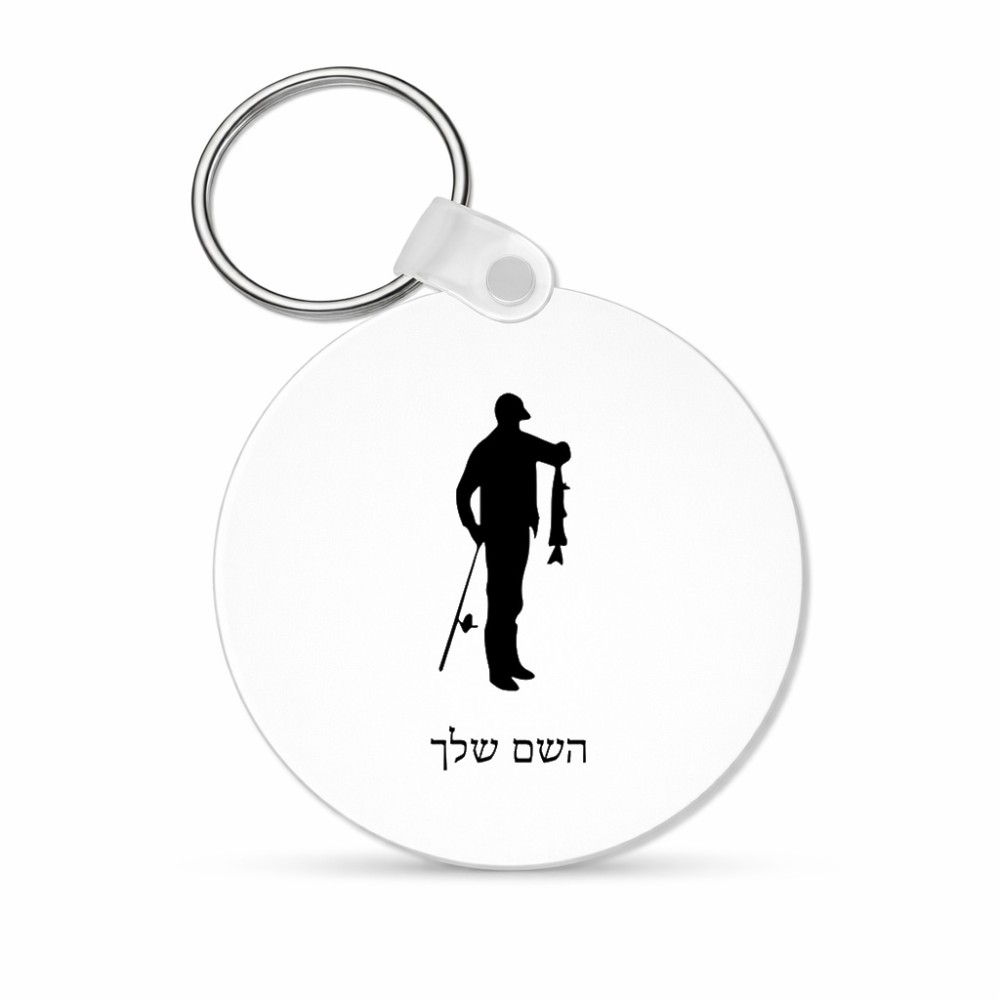 מחזיק מפתחות בצורת עיגול בעיצוב אישי עם השם שלך בעיצוב פישמן גודל המחזיק 5 × 5 ס"מ. את השם המבוקש ניתן לציין בהזמנה, אם לא צויין אנחנו ניצור קשר לבירור.