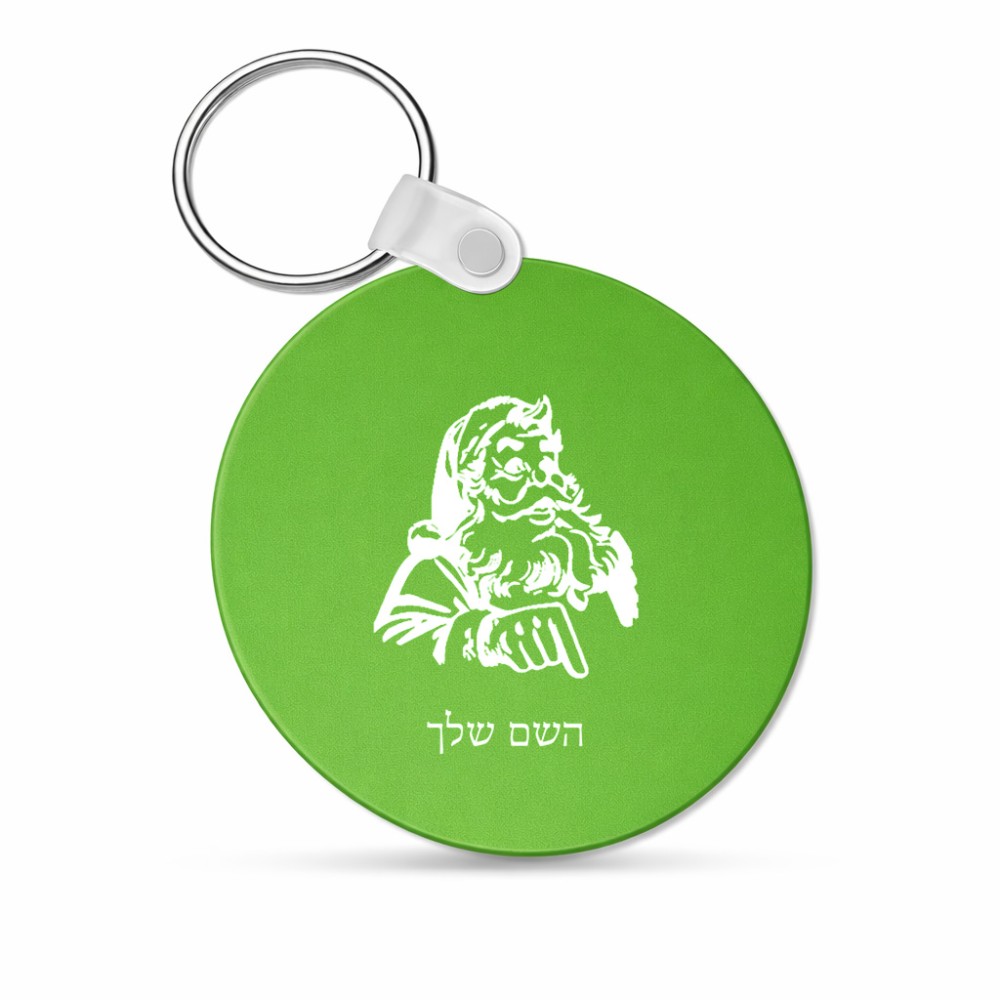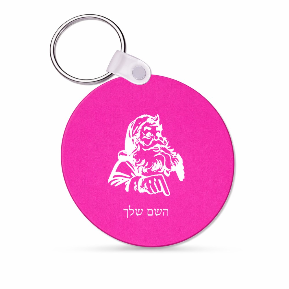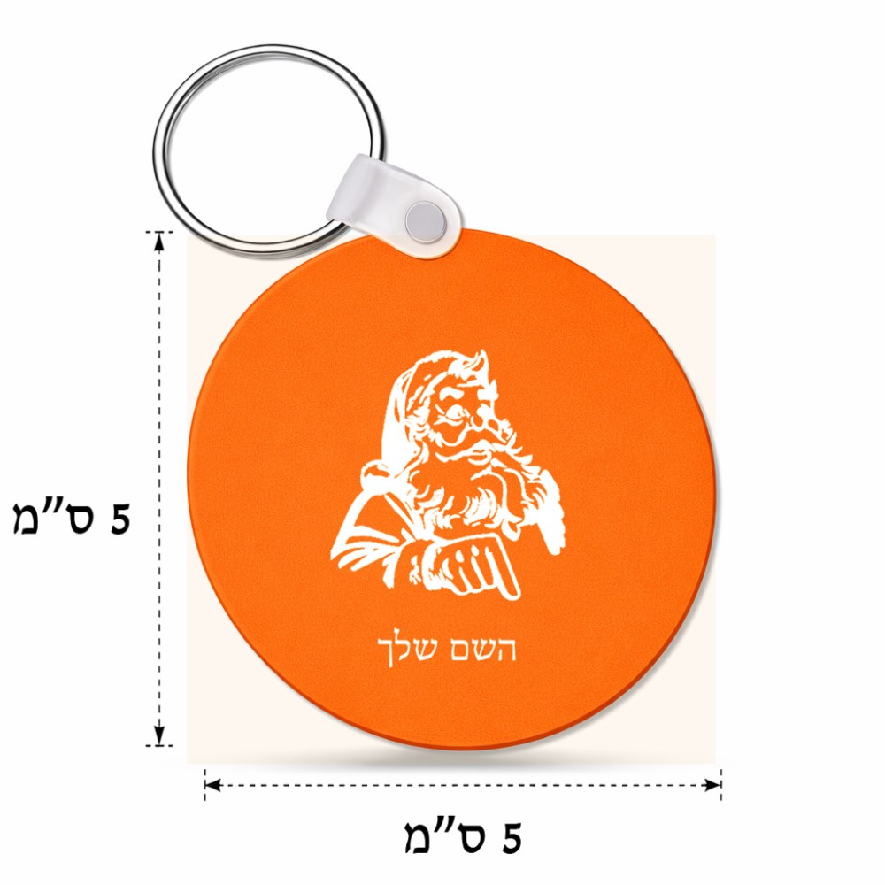 מחזיק מפתחות בצורת עיגול בעיצוב אישי עם השם שלך בעיצוב סנטה קלאוס גודל המחזיק 5 × 5 ס"מ. את השם המבוקש ניתן לציין בהזמנה, אם לא צויין אנחנו ניצור קשר לבירור.