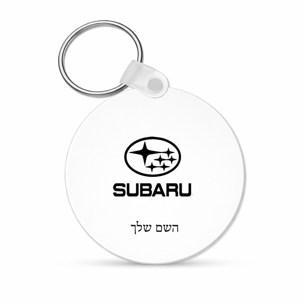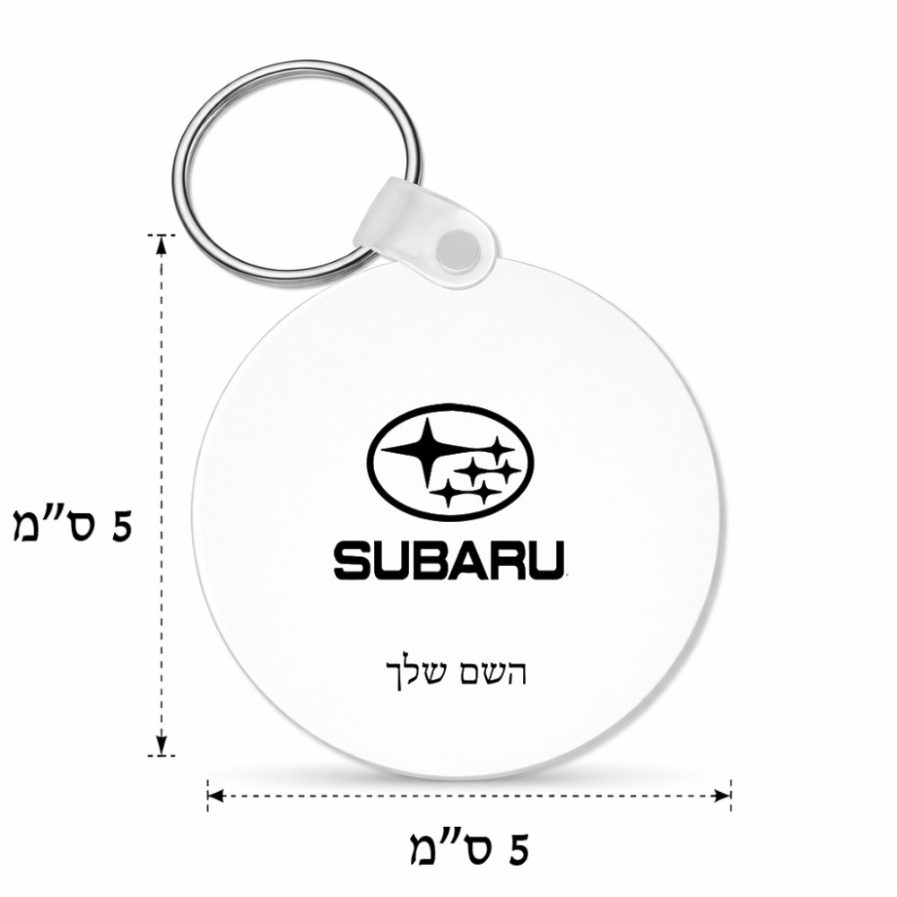 מחזיק מפתחות בצורת עיגול בעיצוב אישי עם השם שלך בעיצוב סובארו גודל המחזיק 5 × 5 ס"מ. את השם המבוקש ניתן לציין בהזמנה, אם לא צויין אנחנו ניצור קשר לבירור.