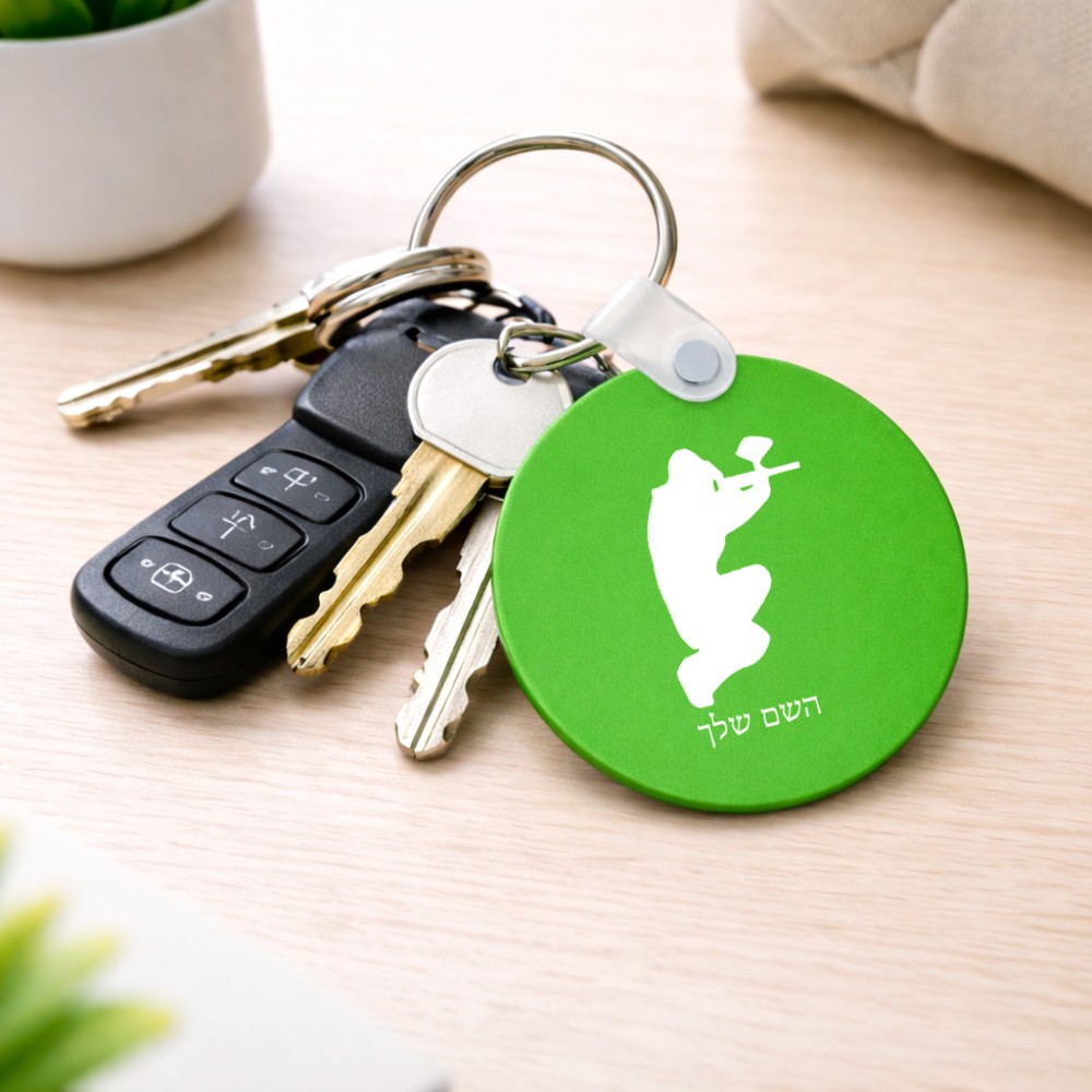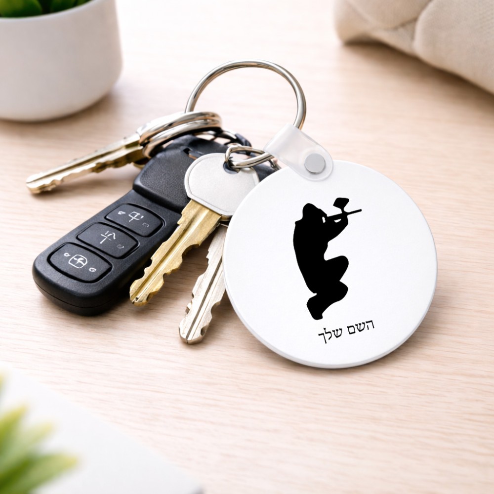 מחזיק מפתחות בצורת עיגול בעיצוב אישי עם השם שלך בעיצוב שחקן כאב כדור גודל המחזיק 5 × 5 ס"מ. את השם המבוקש ניתן לציין בהזמנה, אם לא צויין אנחנו ניצור קשר לבירור.