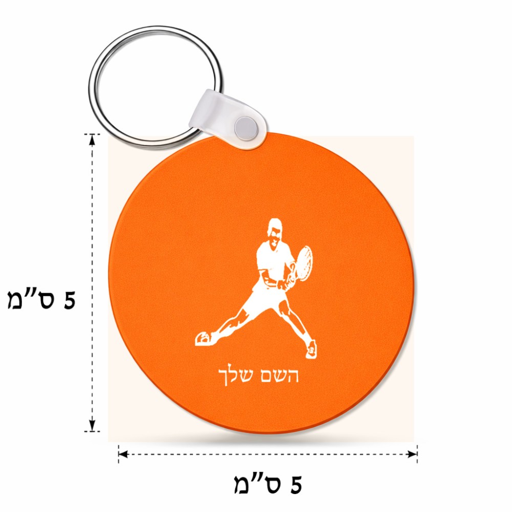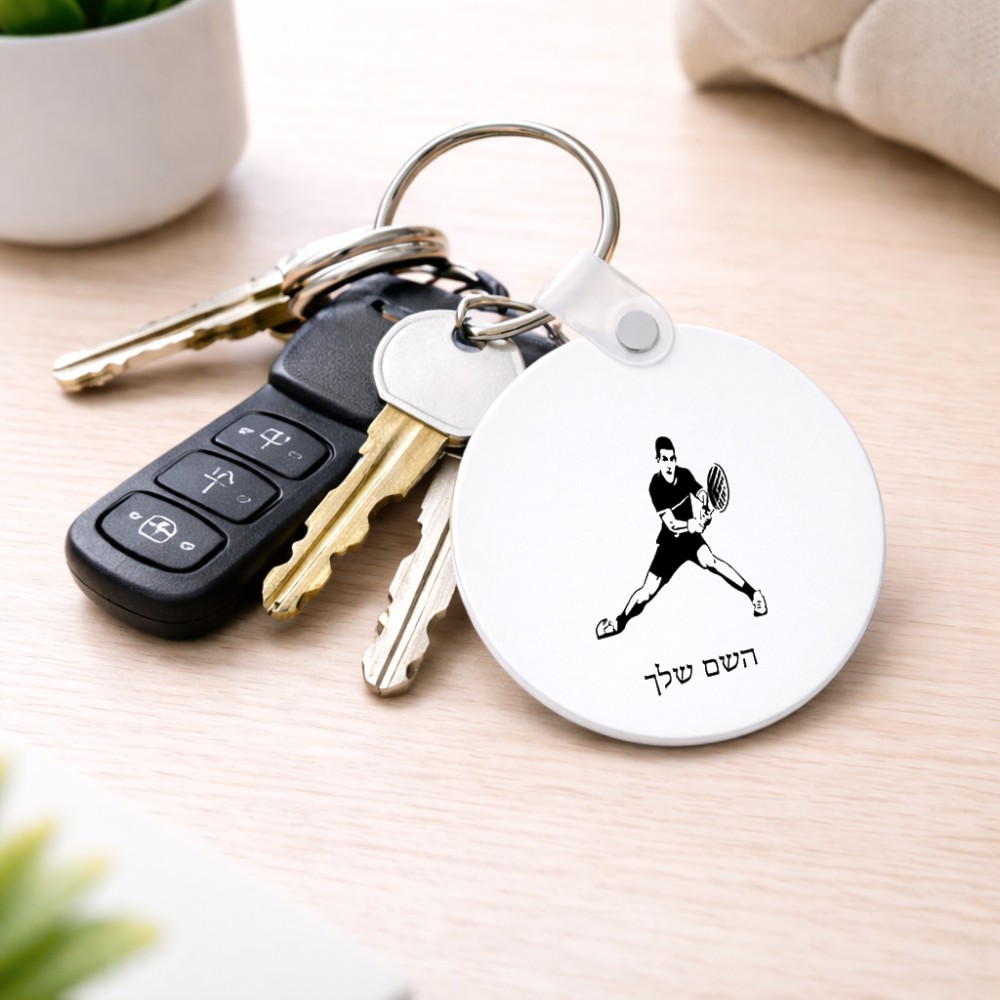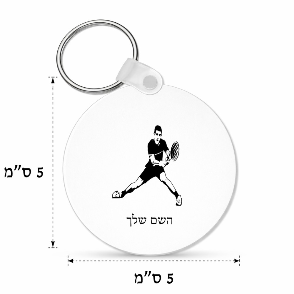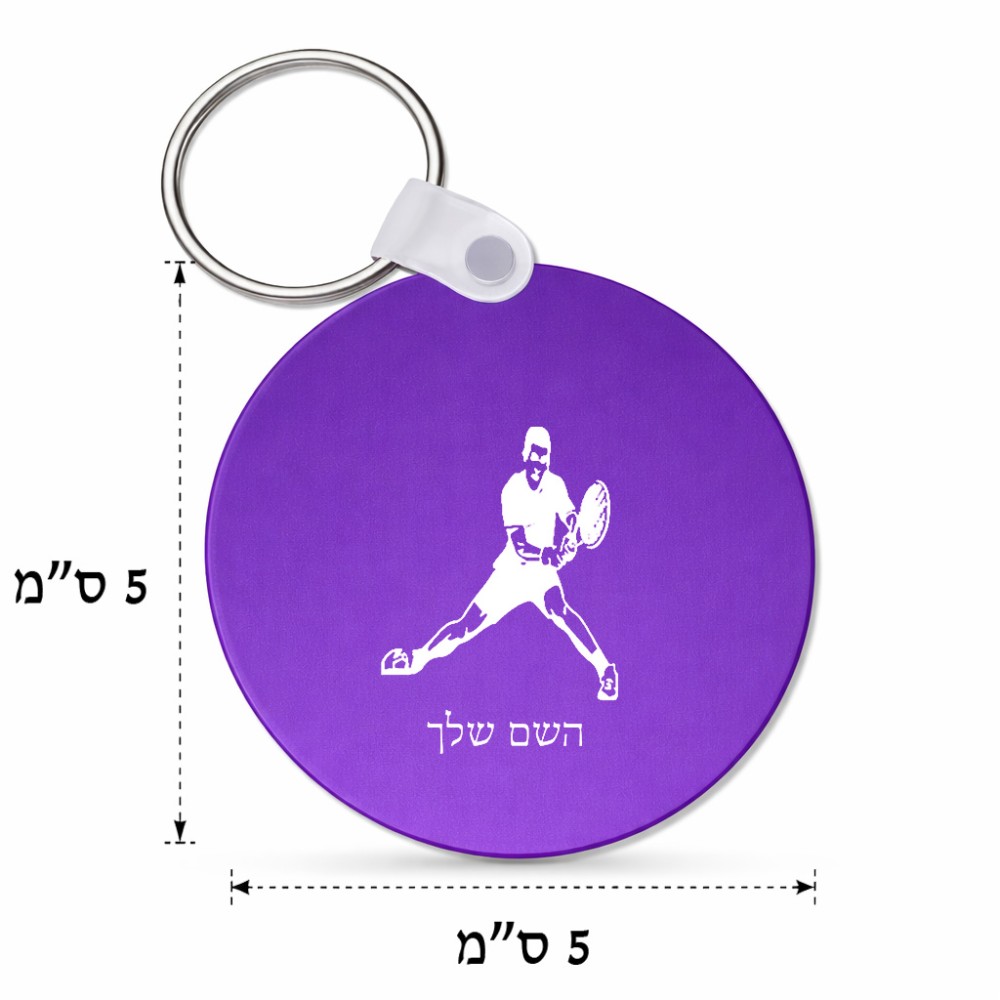 מחזיק מפתחות בצורת עיגול בעיצוב אישי עם השם שלך בעיצוב שחקן טניס גודל המחזיק 5 × 5 ס"מ. את השם המבוקש ניתן לציין בהזמנה, אם לא צויין אנחנו ניצור קשר לבירור.