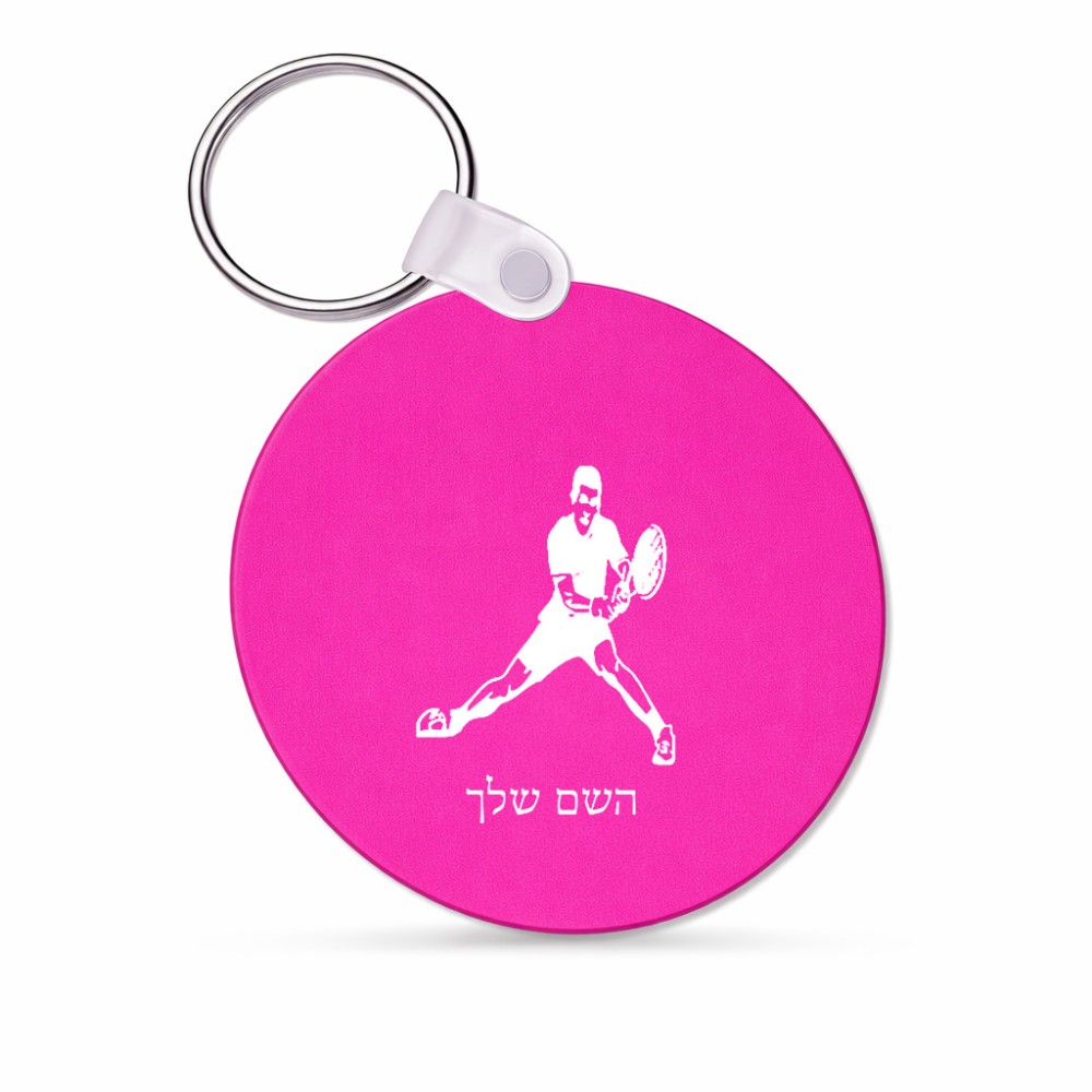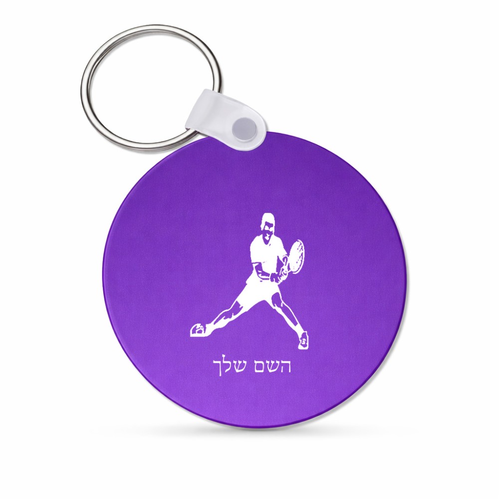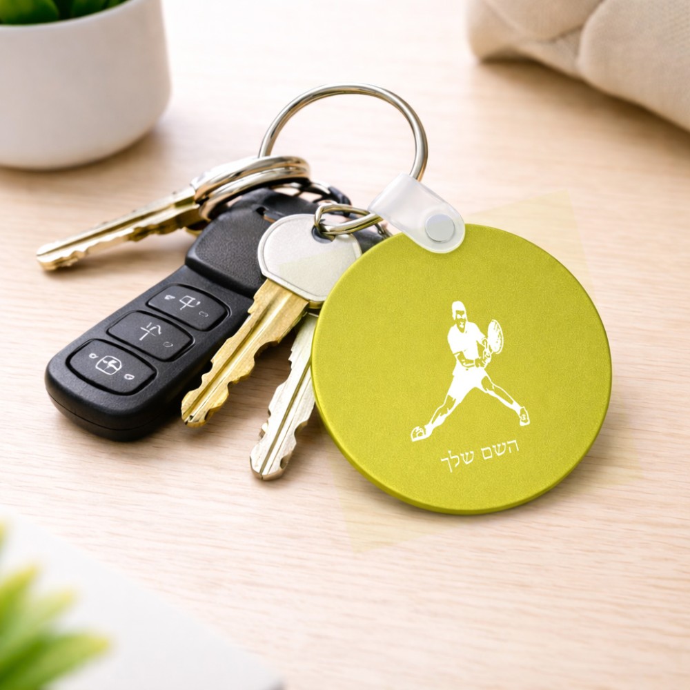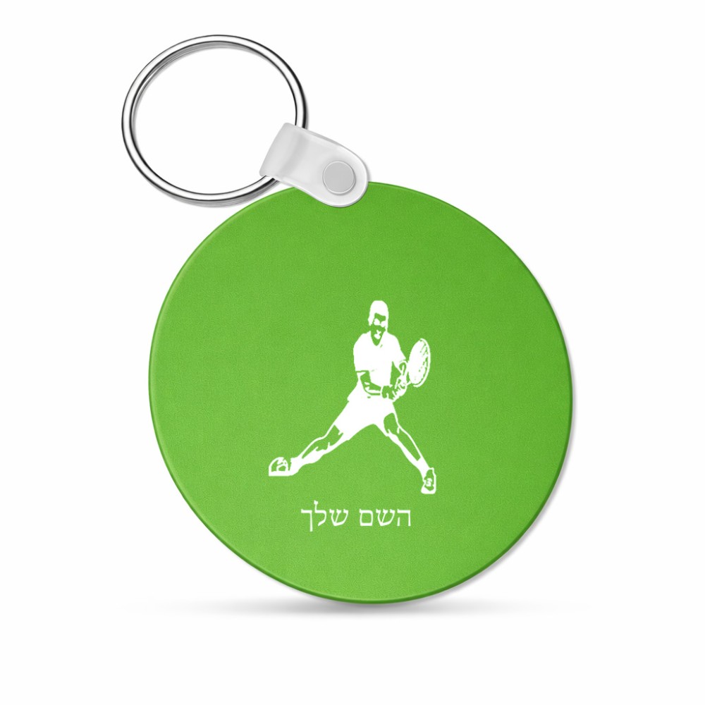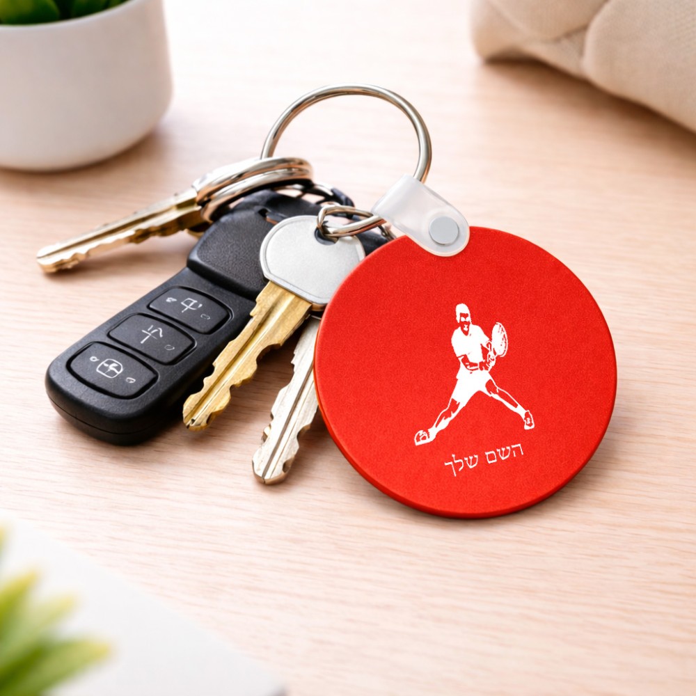 מחזיק מפתחות בצורת עיגול בעיצוב אישי עם השם שלך בעיצוב שחקן טניס גודל המחזיק 5 × 5 ס"מ. את השם המבוקש ניתן לציין בהזמנה, אם לא צויין אנחנו ניצור קשר לבירור.