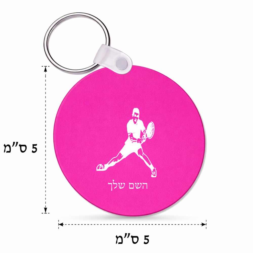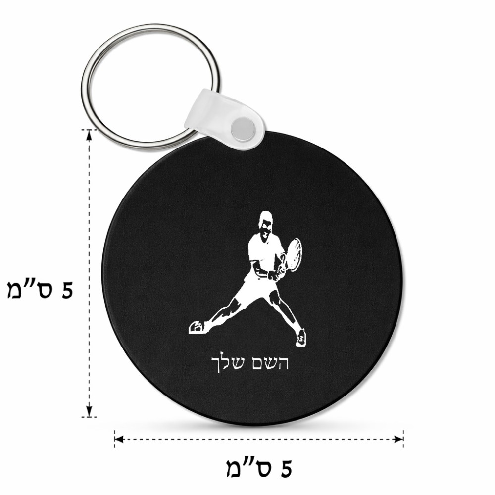 מחזיק מפתחות בצורת עיגול בעיצוב אישי עם השם שלך בעיצוב שחקן טניס גודל המחזיק 5 × 5 ס"מ