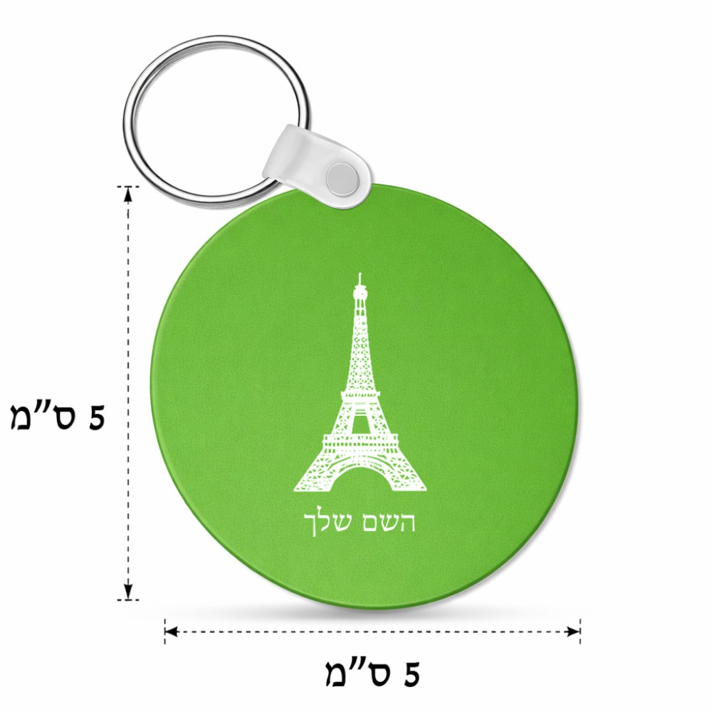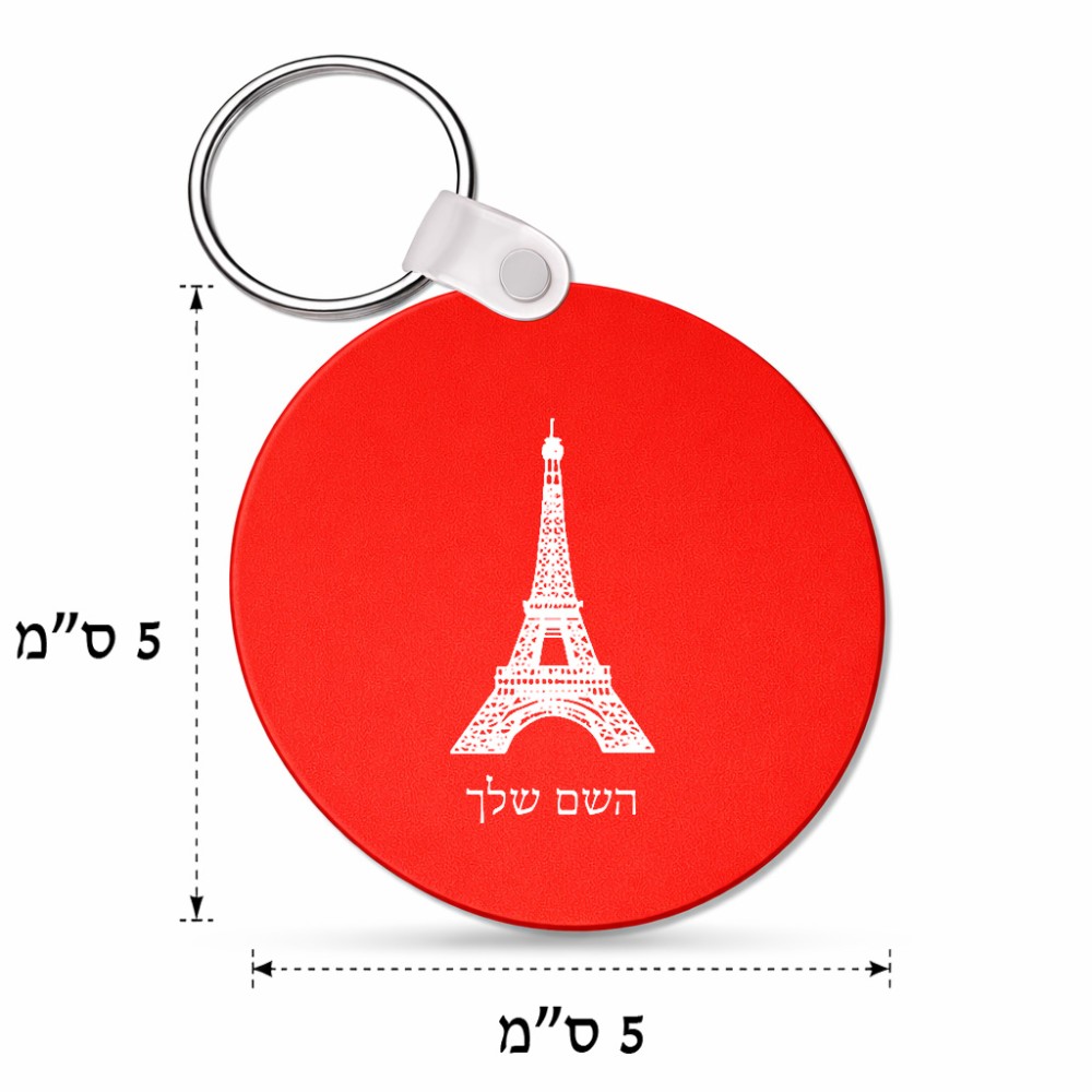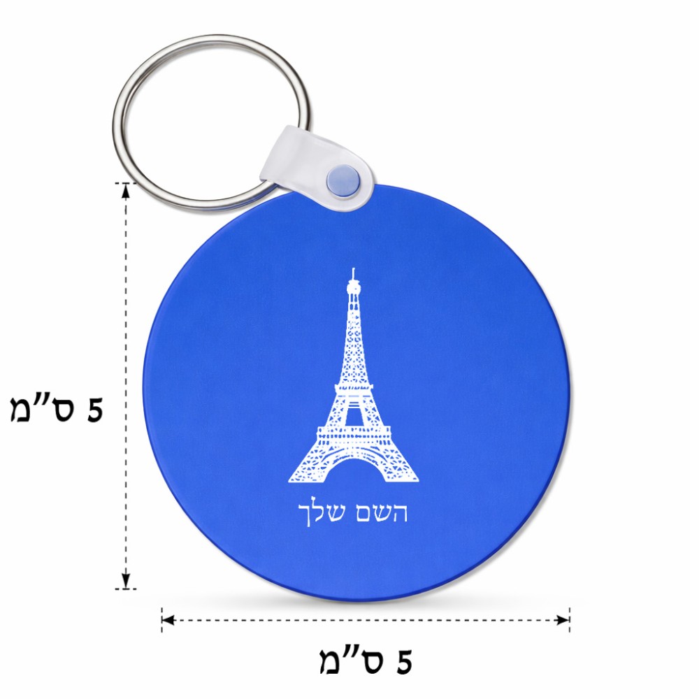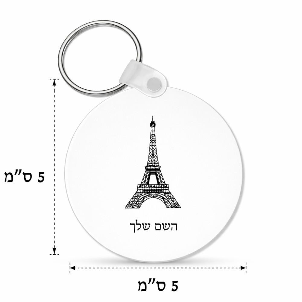 מחזיק מפתחות בצורת עיגול בעיצוב אישי עם השם שלך בעיצוב מגדל אייפל גודל המחזיק 5 × 5 ס"מ. את השם המבוקש ניתן לציין בהזמנה, אם לא צויין אנחנו ניצור קשר לבירור.