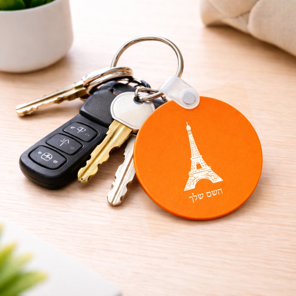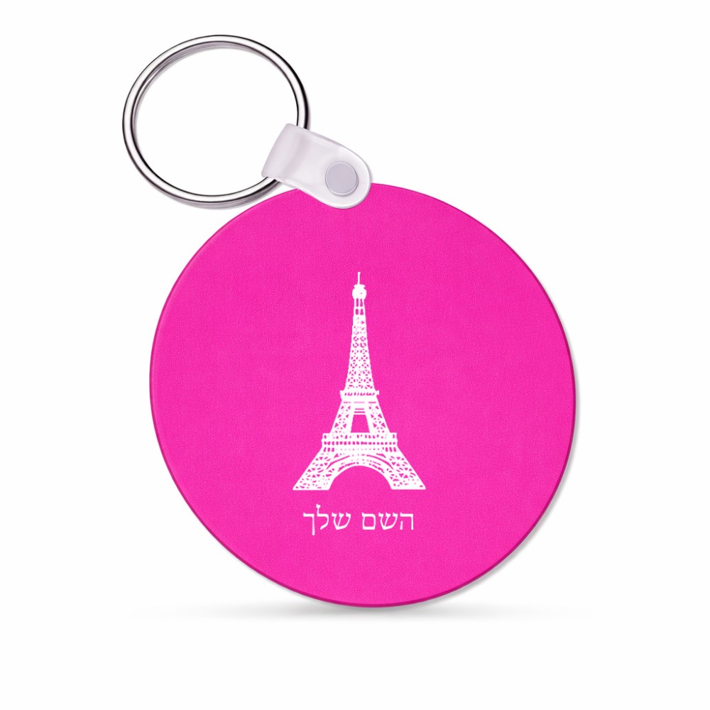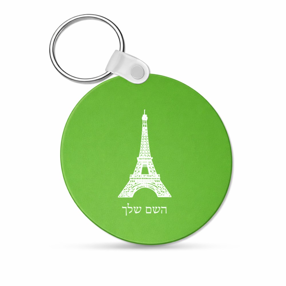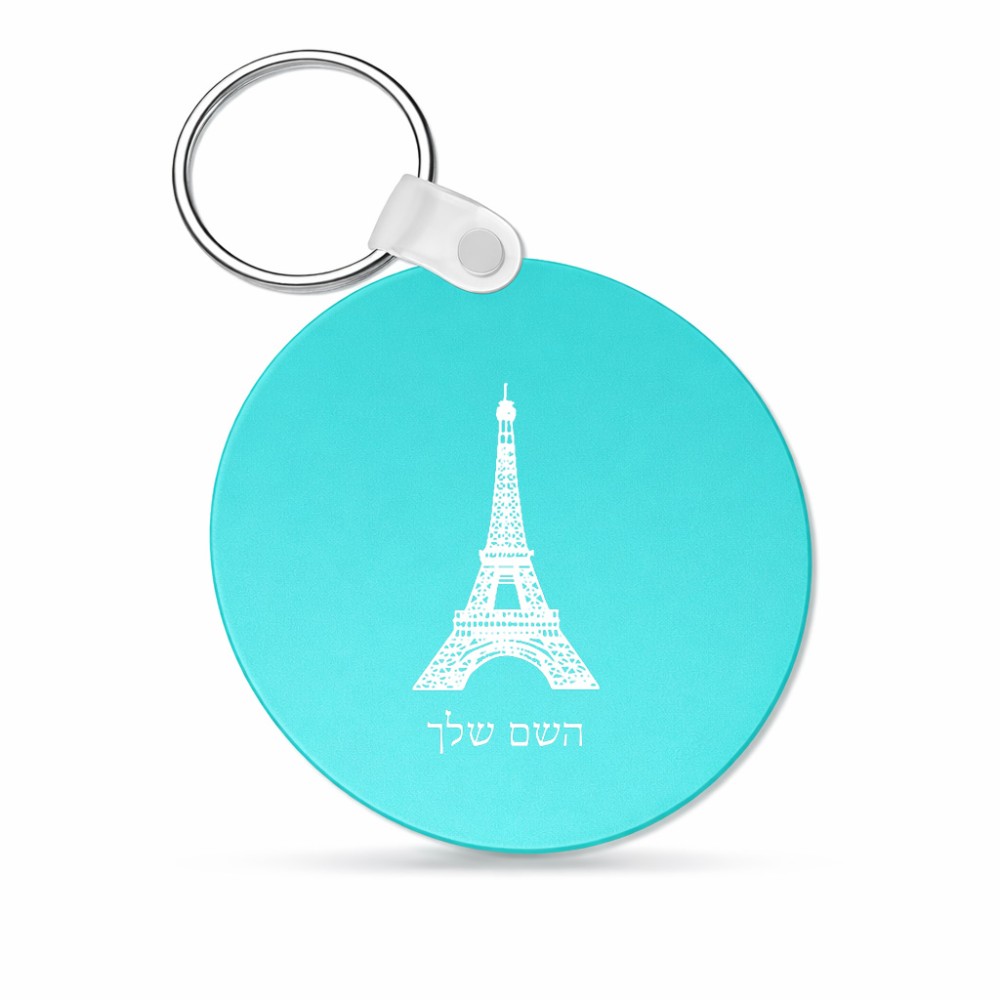 מחזיק מפתחות בצורת עיגול בעיצוב אישי עם השם שלך בעיצוב מגדל אייפל גודל המחזיק 5 × 5 ס"מ. את השם המבוקש ניתן לציין בהזמנה, אם לא צויין אנחנו ניצור קשר לבירור.