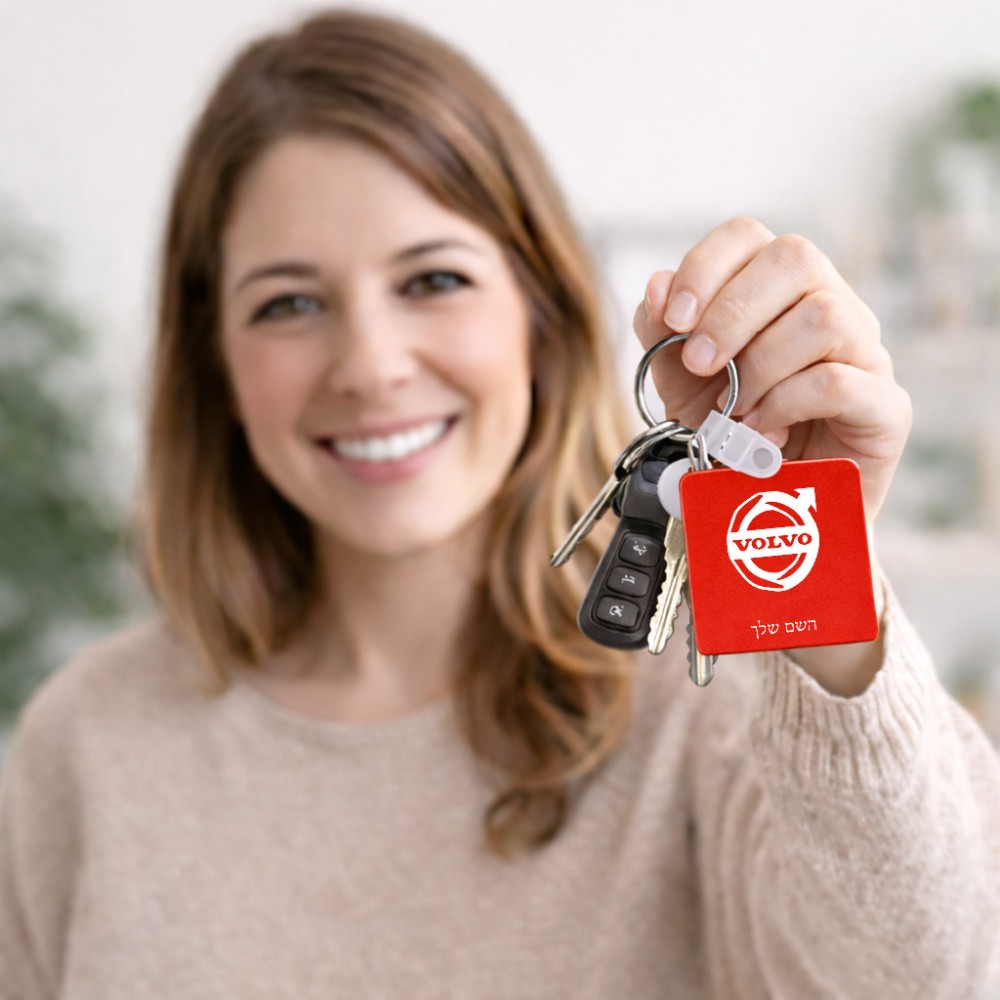 מחזיק מפתחות בצורת ריבוע בעיצוב אישי עם השם שלך בעיצוב וולוו גודל המחזיק 5 × 5 ס"מ. את השם המבוקש ניתן לציין בהזמנה, אם לא צויין אנחנו ניצור קשר לבירור.