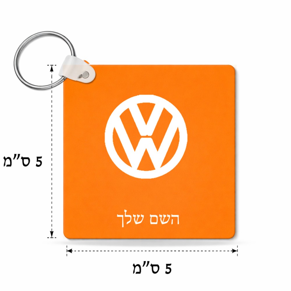 מחזיק מפתחות בצורת ריבוע בעיצוב אישי עם השם שלך בעיצוב פולקסווגן גודל המחזיק 5 × 5 ס"מ. את השם המבוקש ניתן לציין בהזמנה, אם לא צויין אנחנו ניצור קשר לבירור.