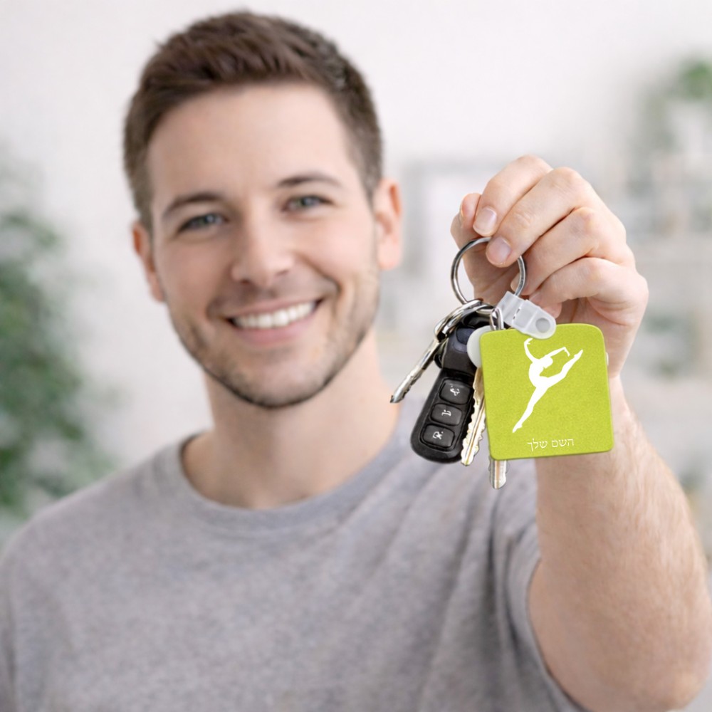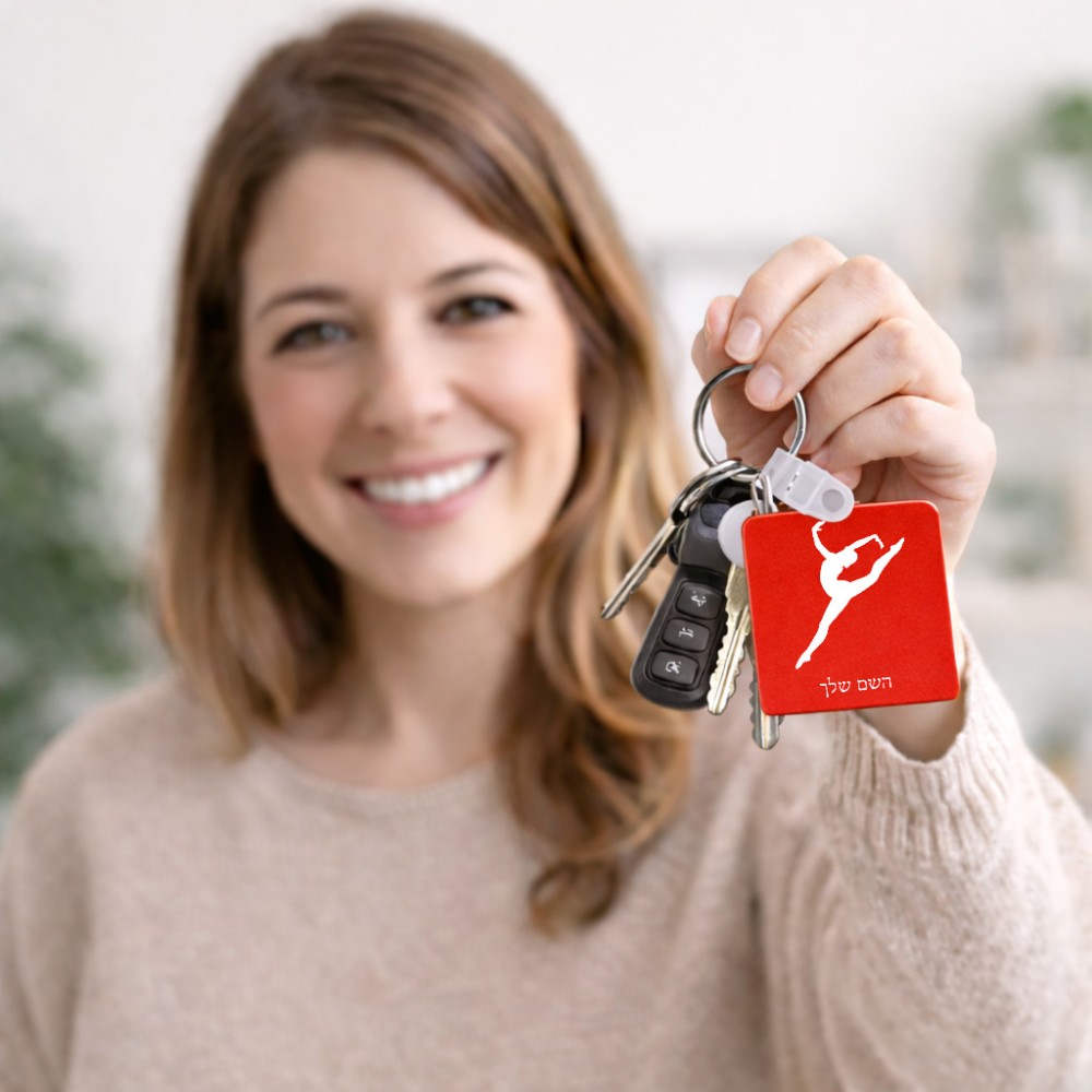 מחזיק מפתחות בצורת ריבוע בעיצוב אישי עם השם שלך בעיצוב בלט גודל המחזיק 5 × 5 ס"מ. את השם המבוקש ניתן לציין בהזמנה, אם לא צויין אנחנו ניצור קשר לבירור.