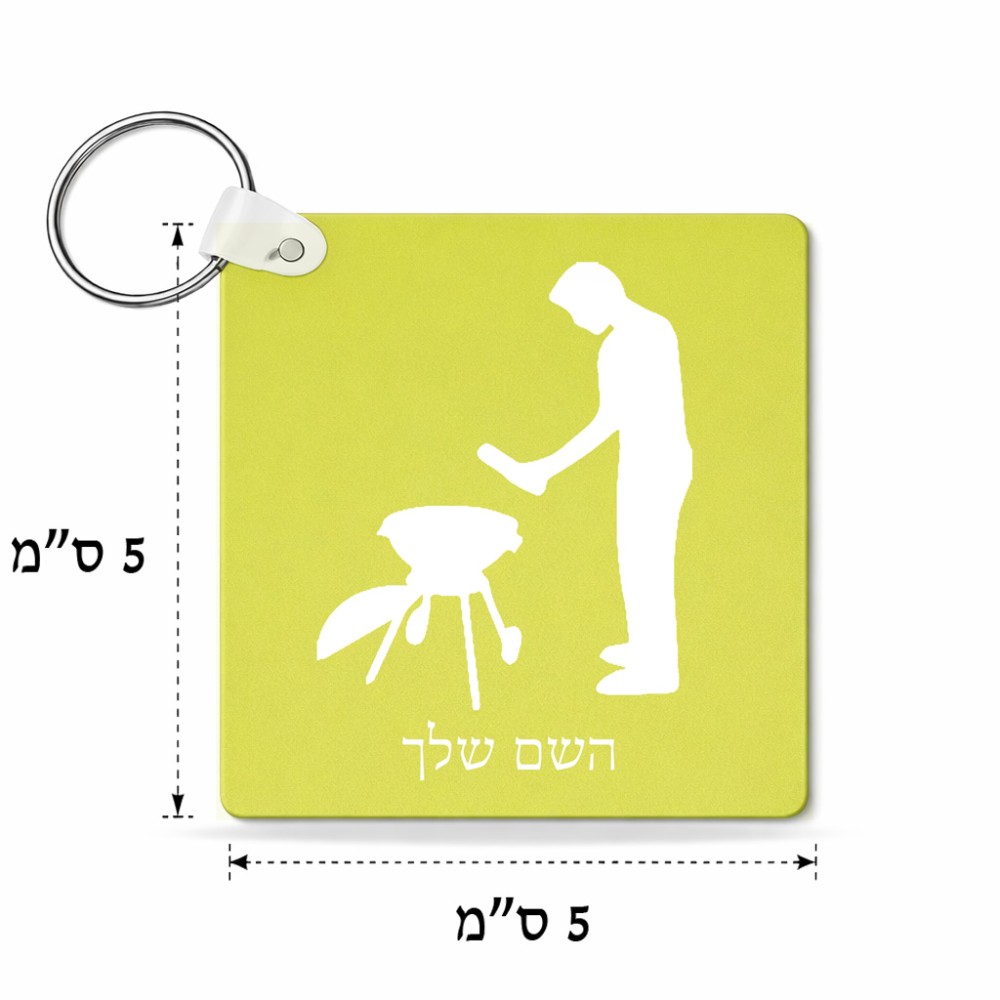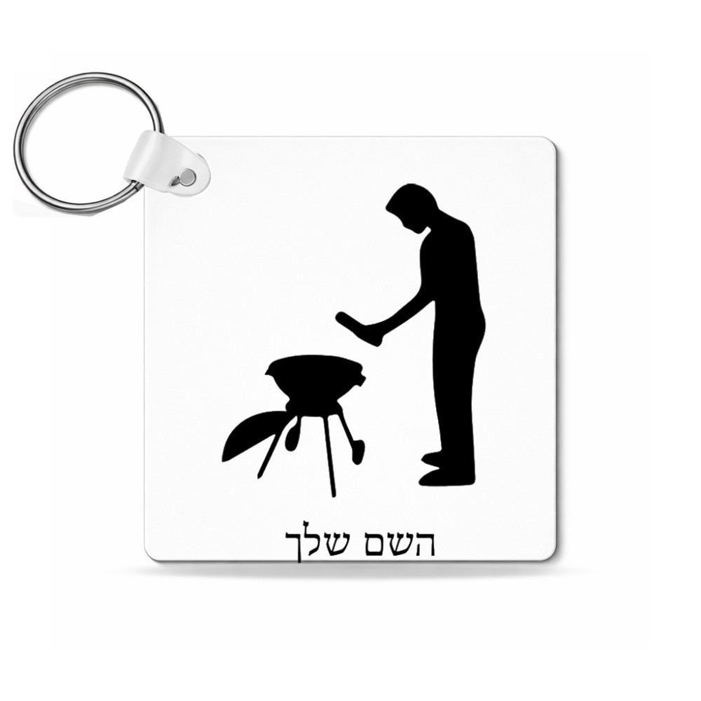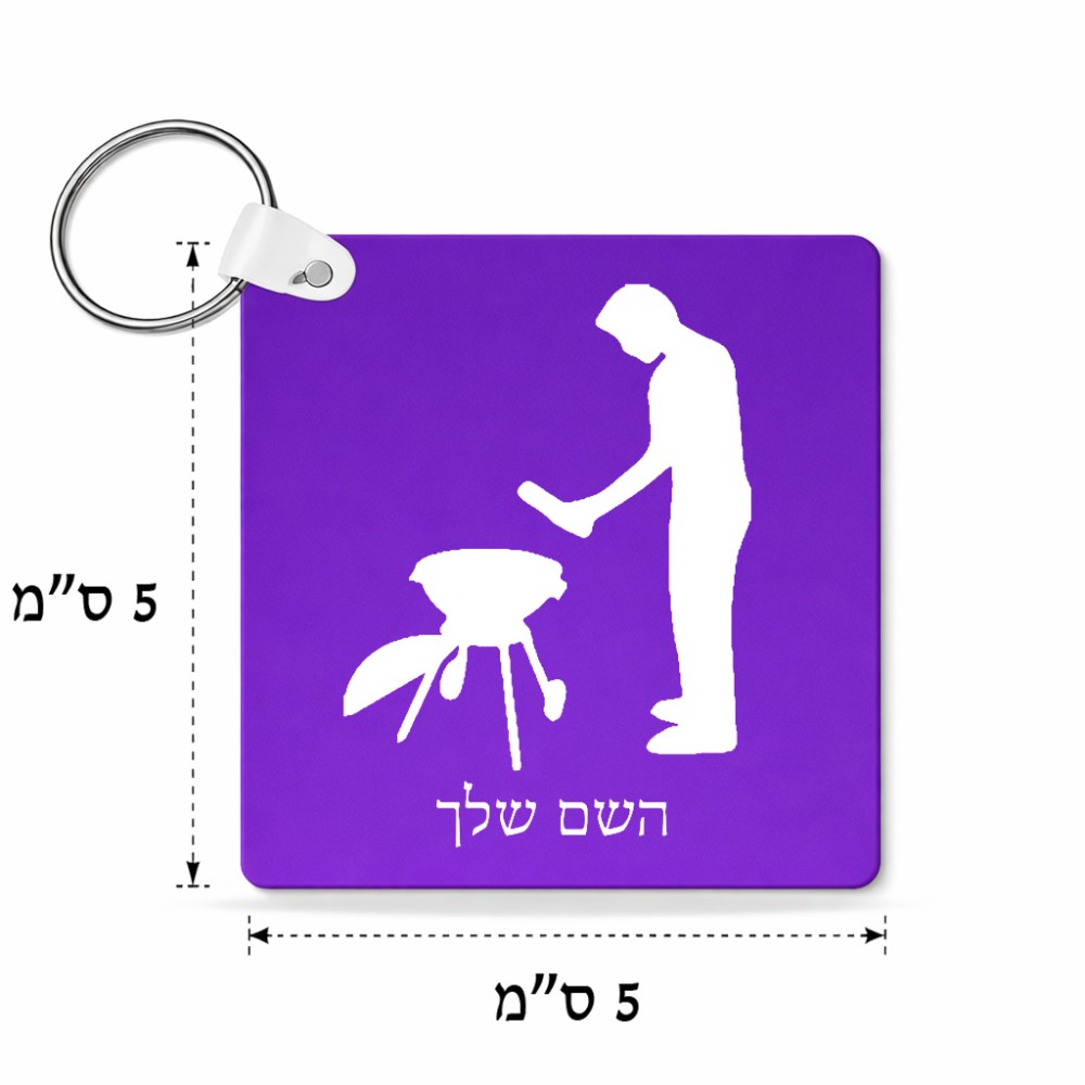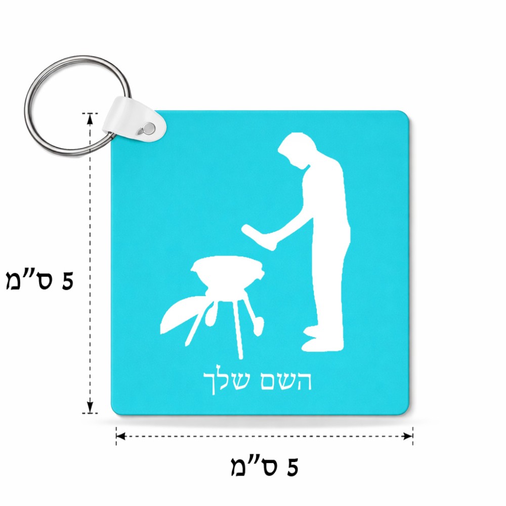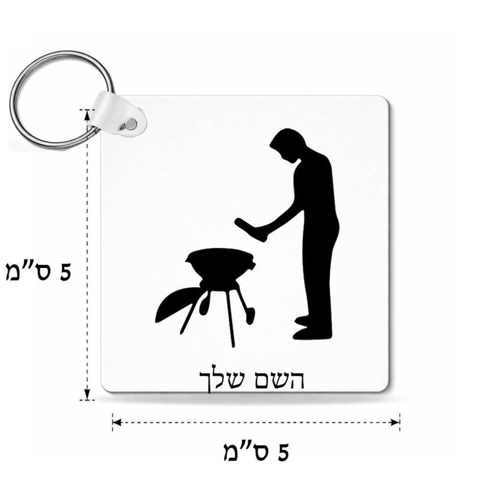 מחזיק מפתחות בצורת ריבוע בעיצוב אישי עם השם שלך בעיצוב גריל ברביקיו גודל המחזיק 5 × 5 ס"מ. את השם המבוקש ניתן לציין בהזמנה, אם לא צויין אנחנו ניצור קשר לבירור.