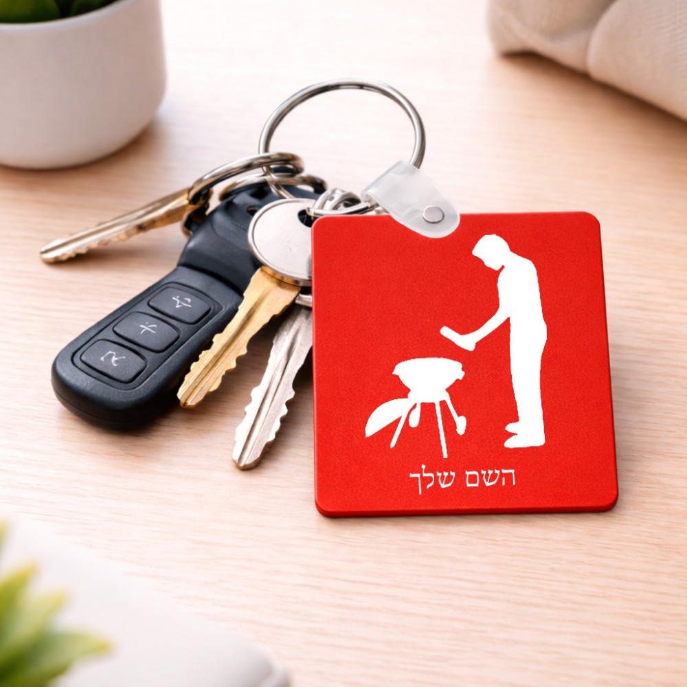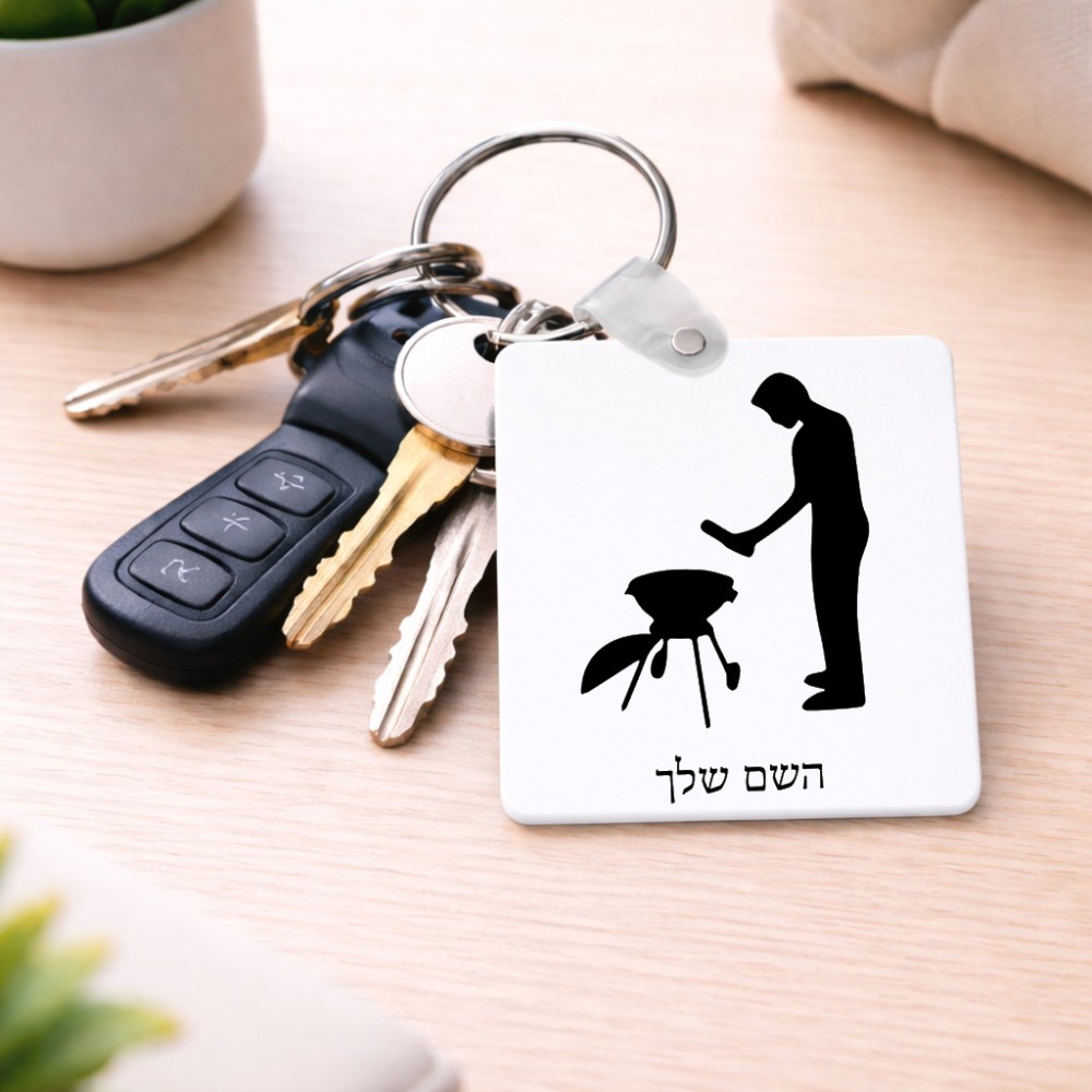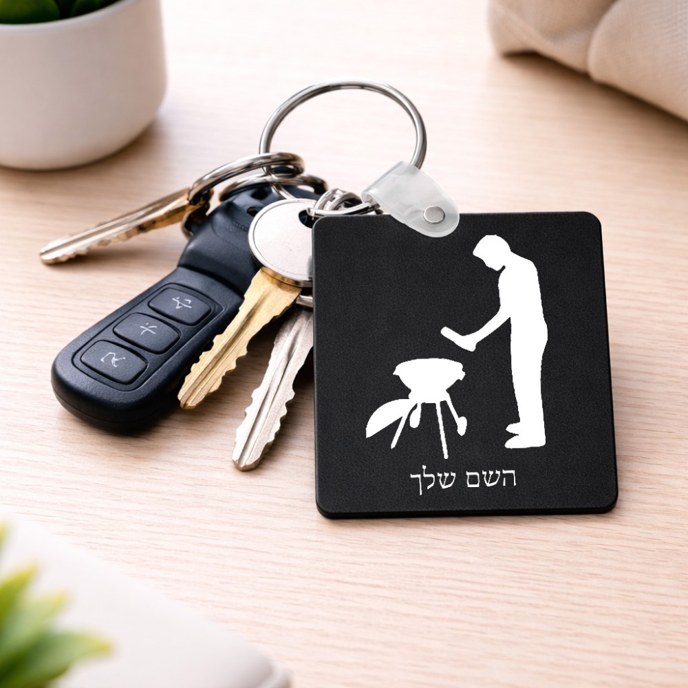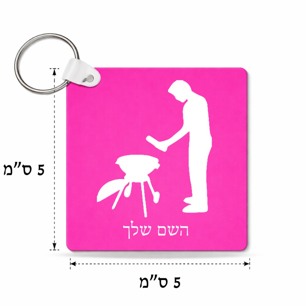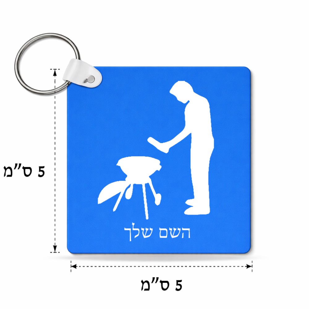 מחזיק מפתחות בצורת ריבוע בעיצוב אישי עם השם שלך בעיצוב גריל ברביקיו גודל המחזיק 5 × 5 ס"מ. את השם המבוקש ניתן לציין בהזמנה, אם לא צויין אנחנו ניצור קשר לבירור.