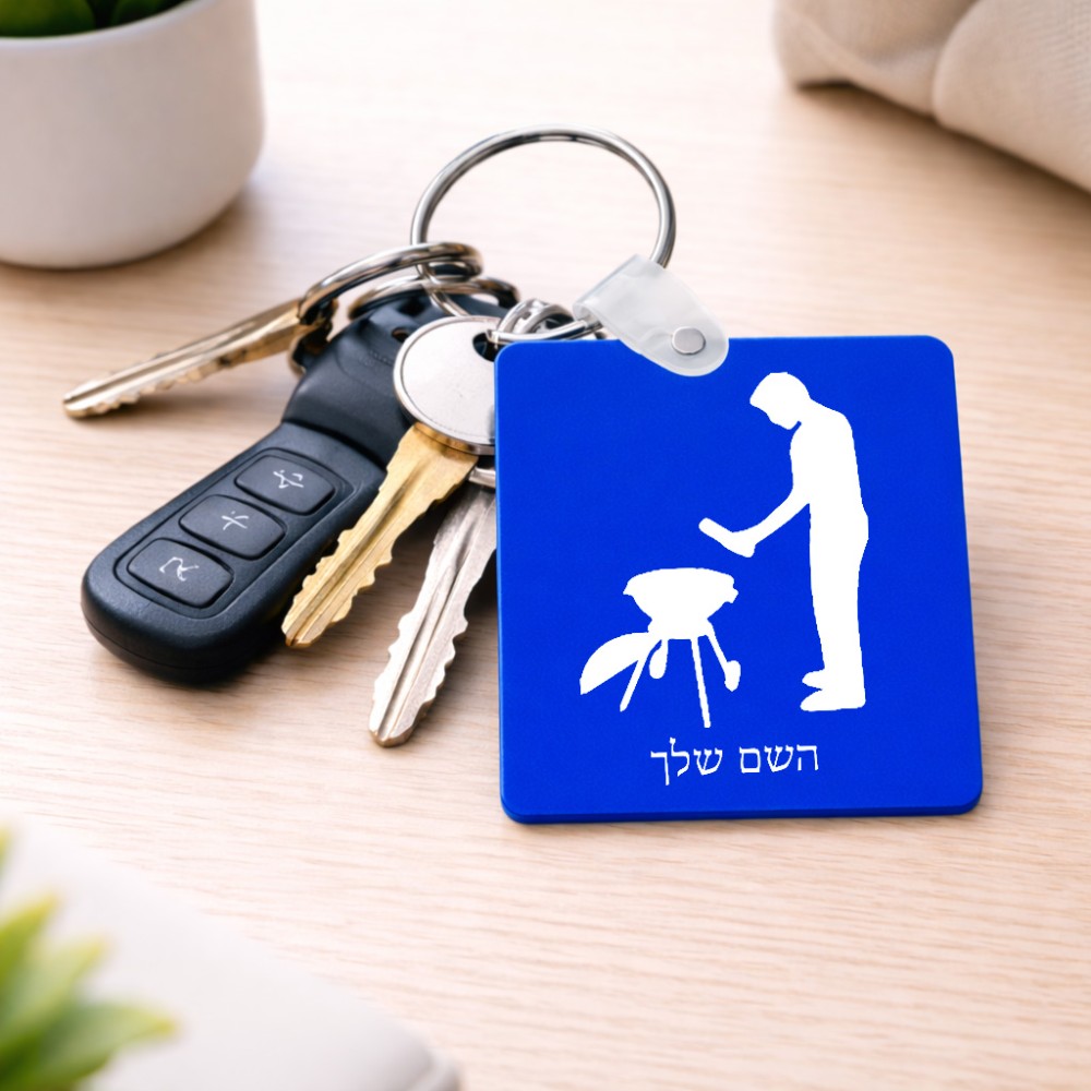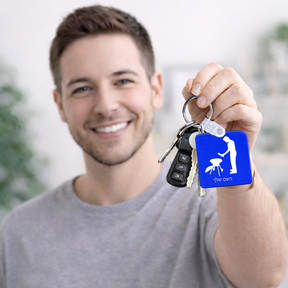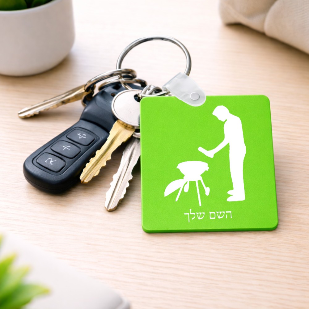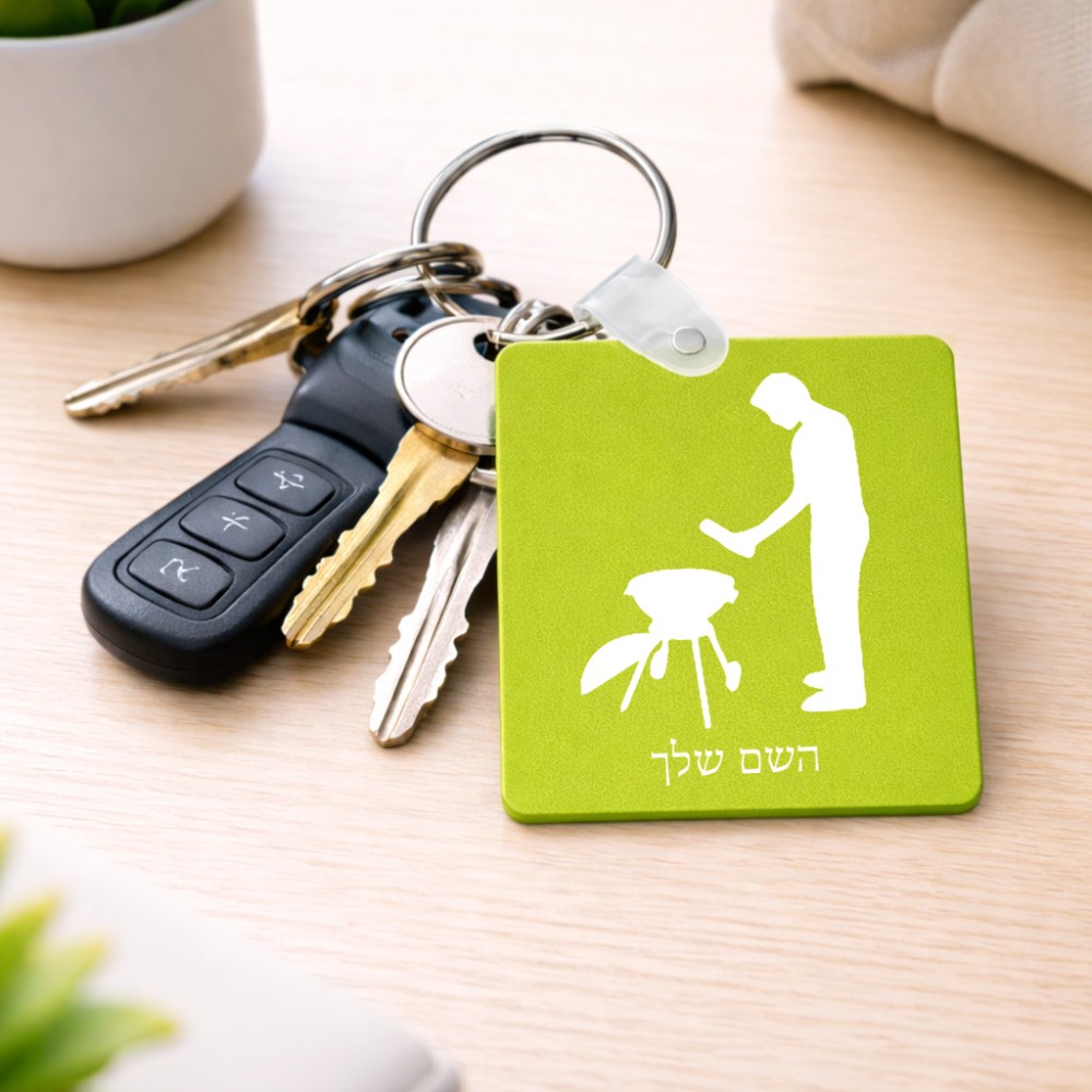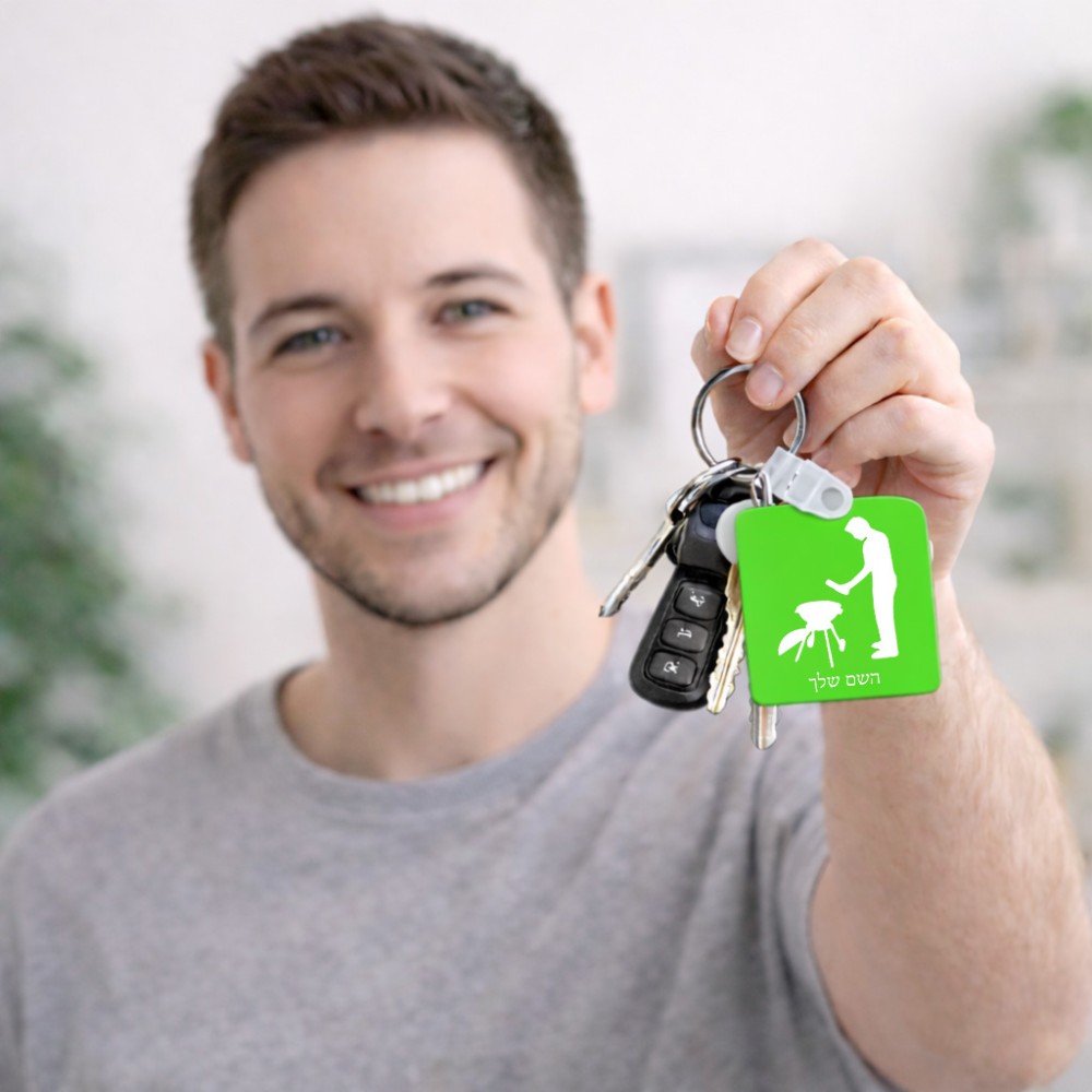 מחזיק מפתחות בצורת ריבוע בעיצוב אישי עם השם שלך בעיצוב גריל ברביקיו גודל המחזיק 5 × 5 ס"מ. את השם המבוקש ניתן לציין בהזמנה, אם לא צויין אנחנו ניצור קשר לבירור.