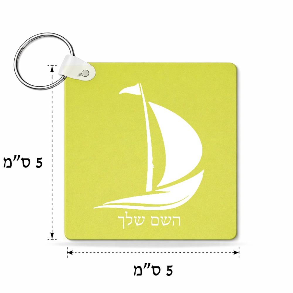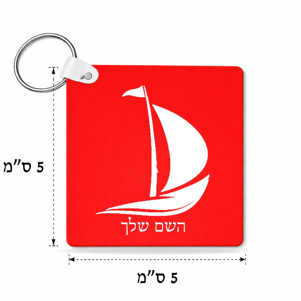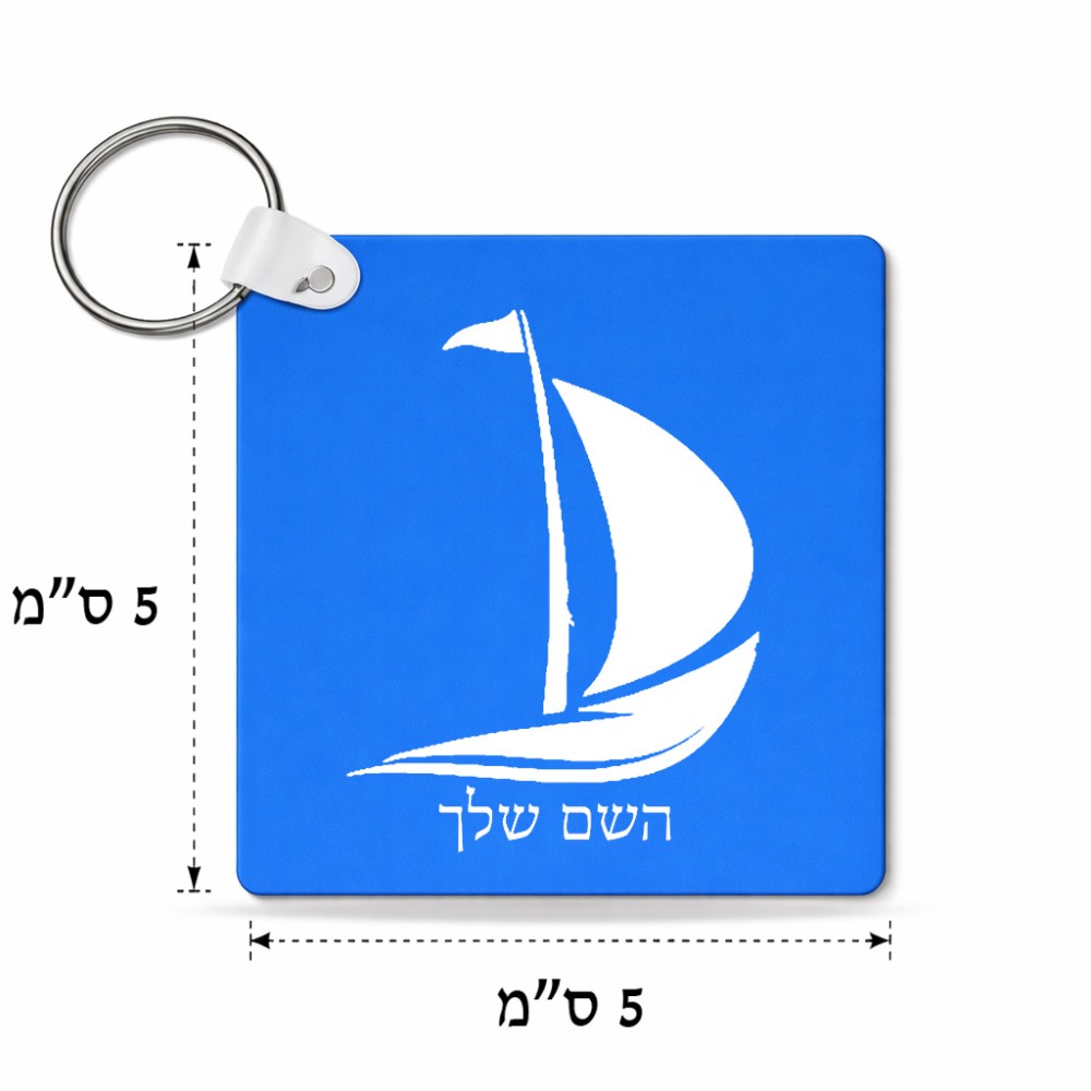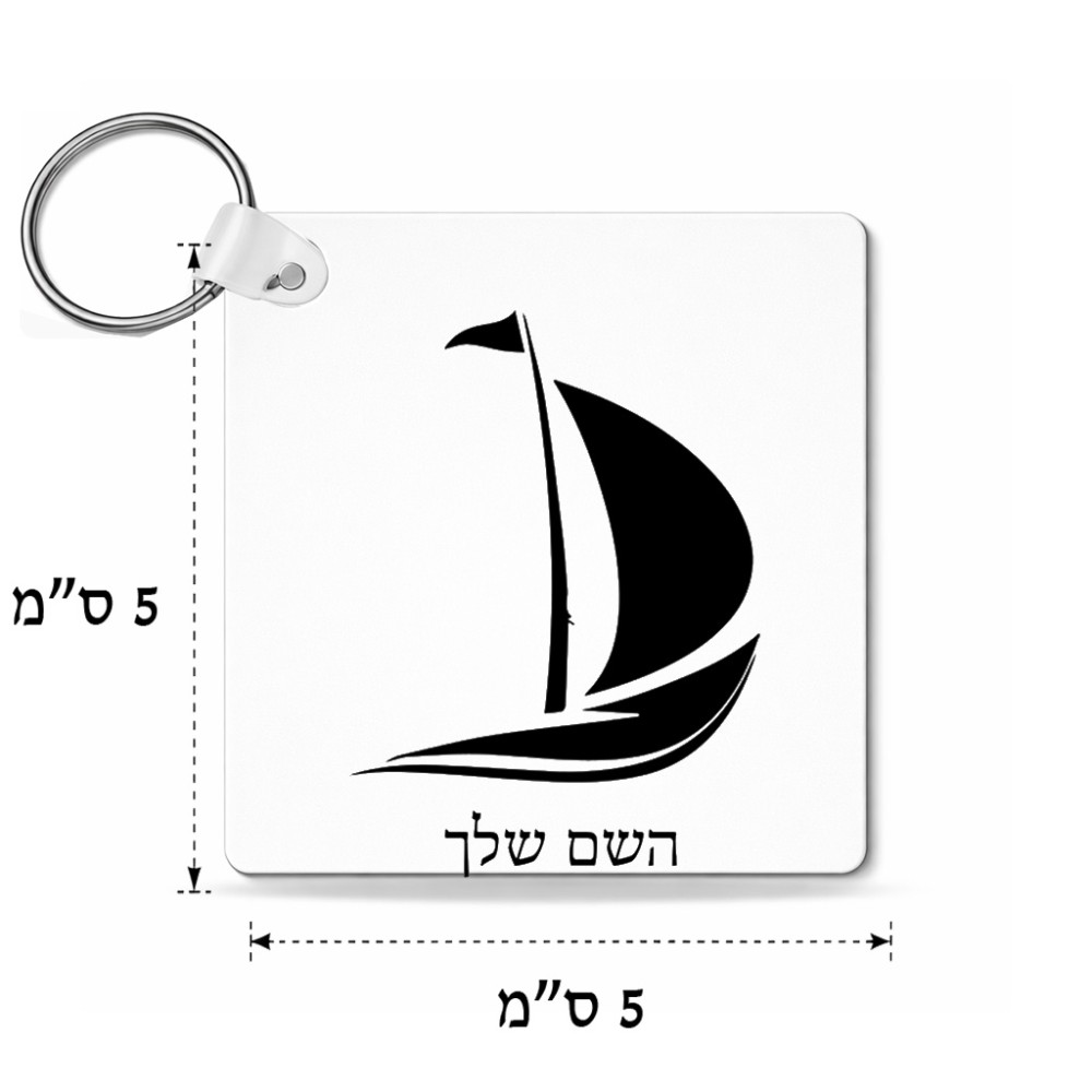 מחזיק מפתחות בצורת ריבוע בעיצוב אישי עם השם שלך בעיצוב סירה גודל המחזיק 5 × 5 ס"מ. את השם המבוקש ניתן לציין בהזמנה, אם לא צויין אנחנו ניצור קשר לבירור.