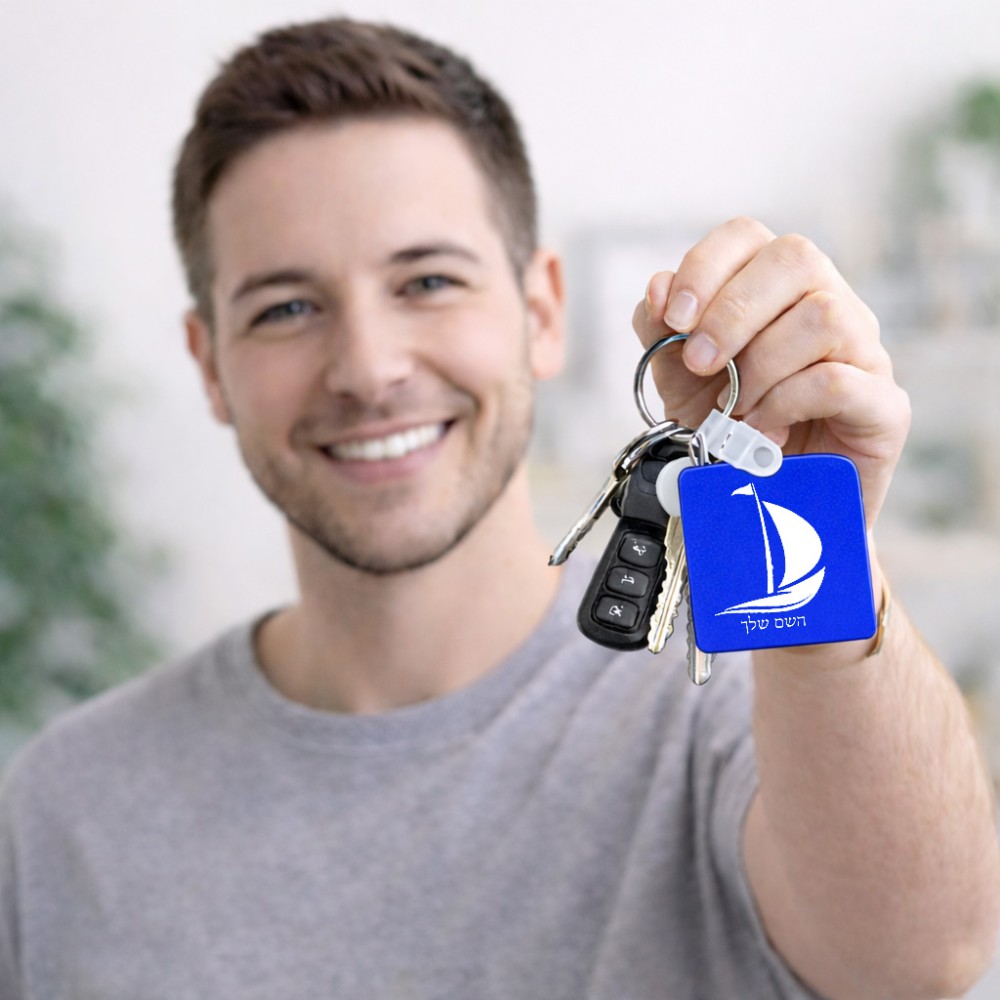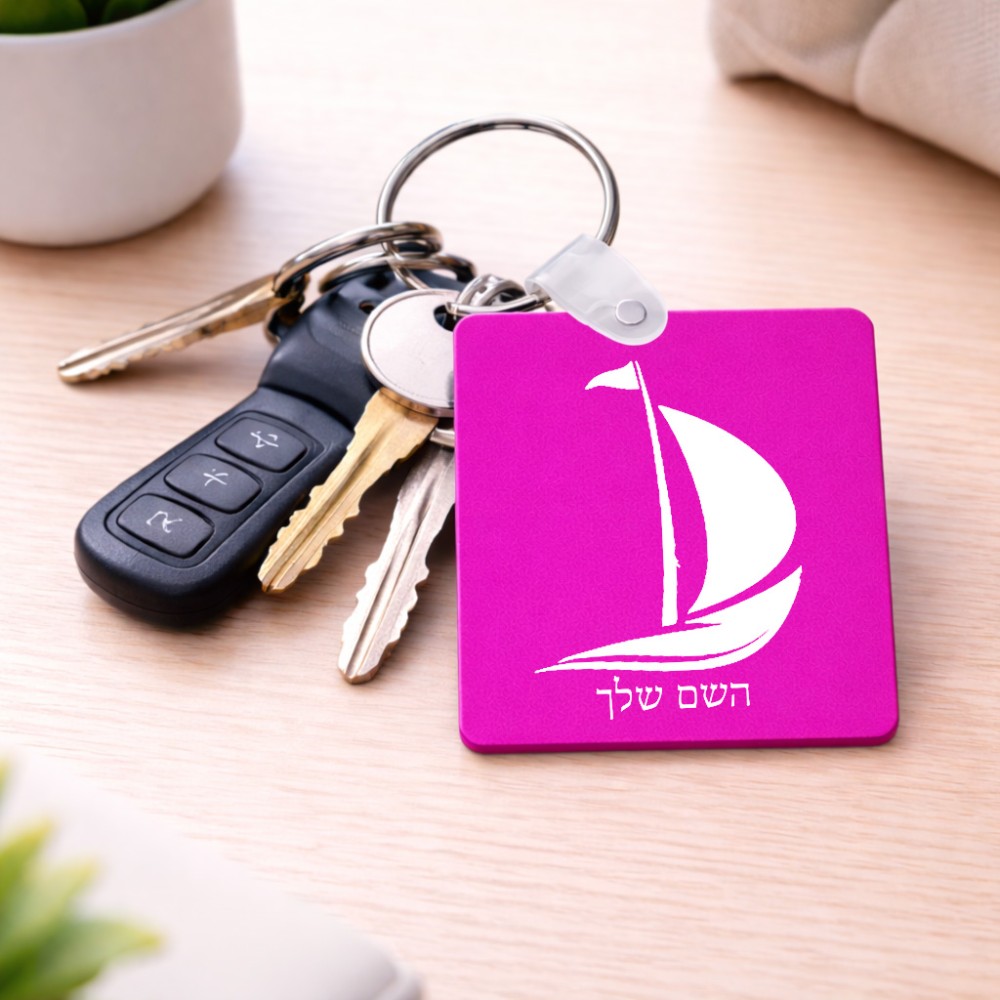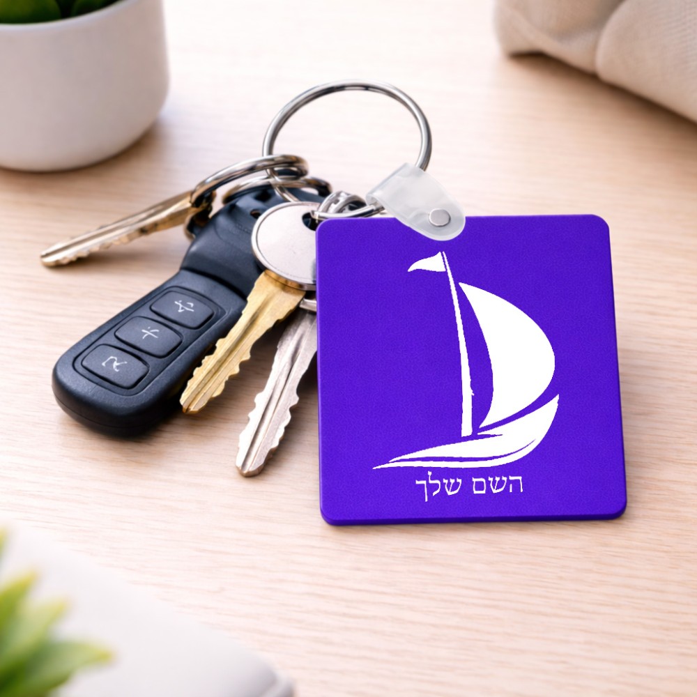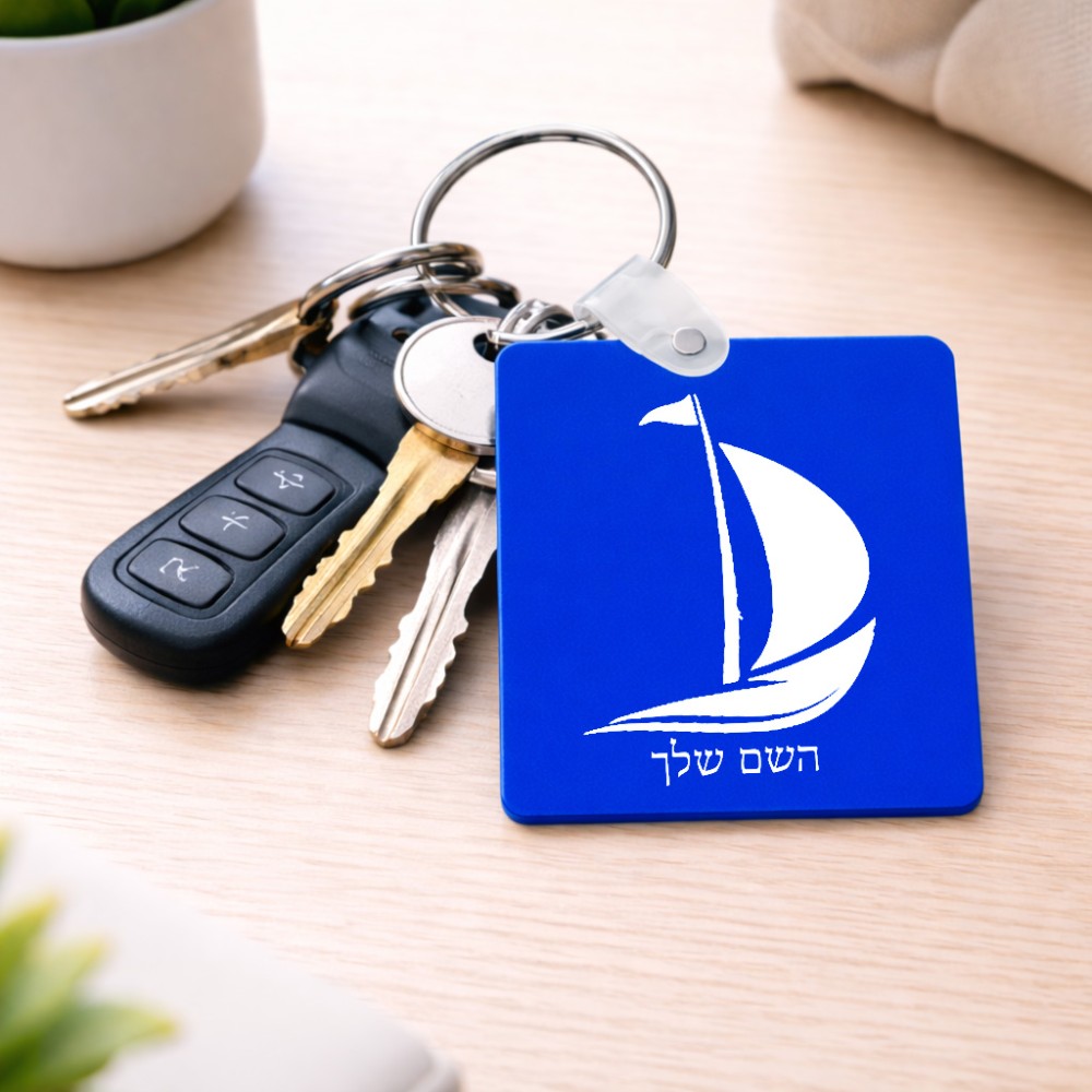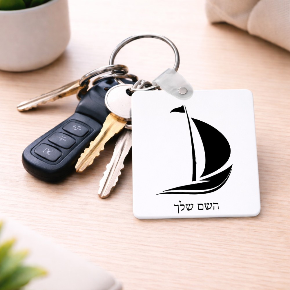 מחזיק מפתחות בצורת ריבוע בעיצוב אישי עם השם שלך בעיצוב סירה גודל המחזיק 5 × 5 ס"מ. את השם המבוקש ניתן לציין בהזמנה, אם לא צויין אנחנו ניצור קשר לבירור.