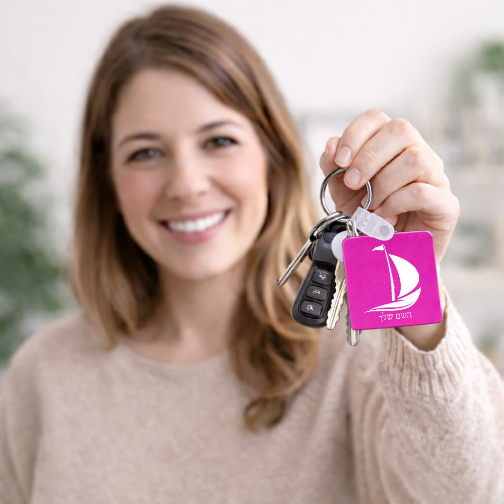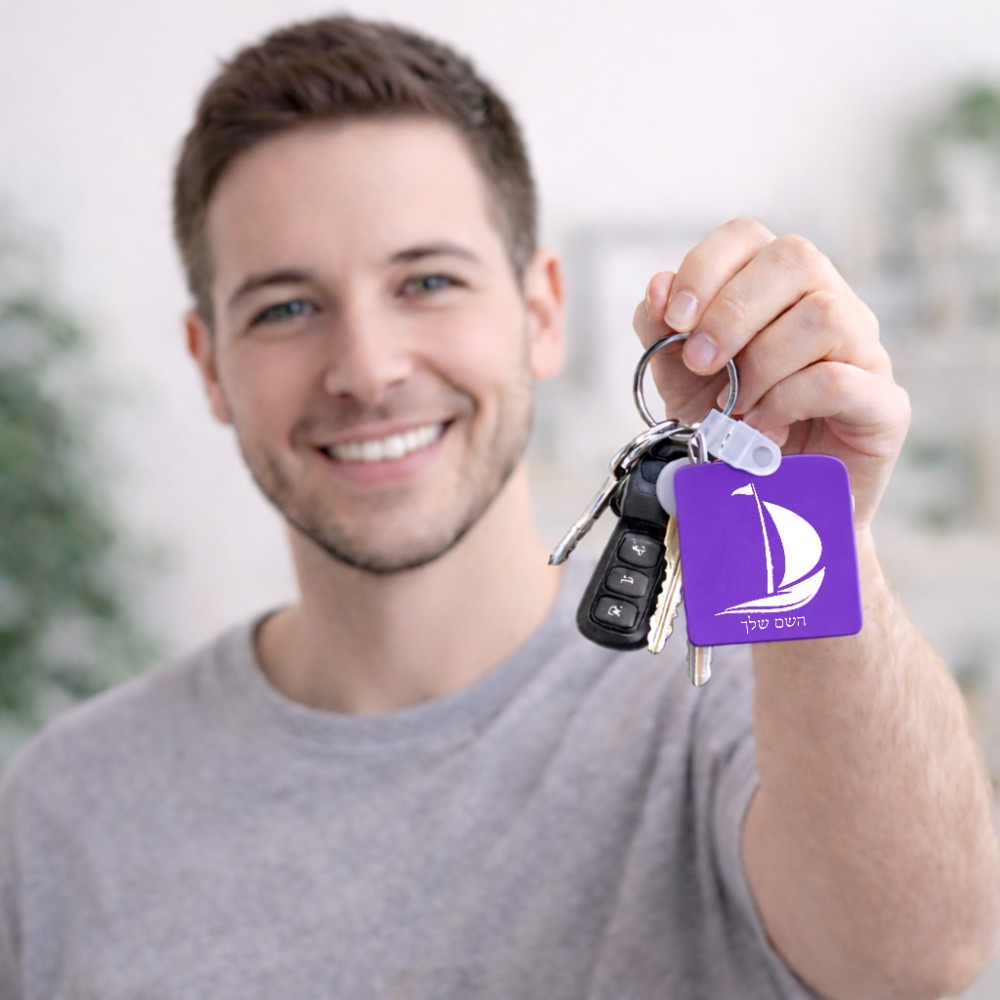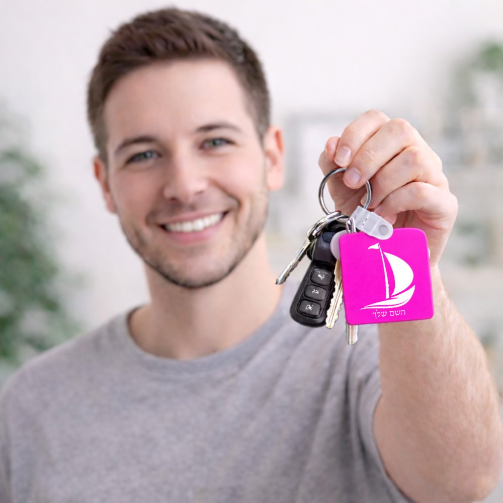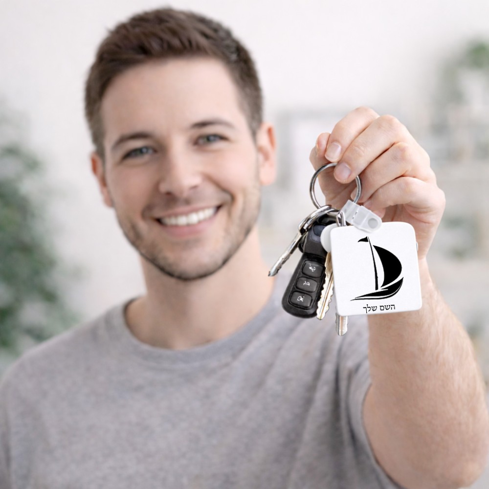 מחזיק מפתחות בצורת ריבוע בעיצוב אישי עם השם שלך בעיצוב סירה גודל המחזיק 5 × 5 ס"מ. את השם המבוקש ניתן לציין בהזמנה, אם לא צויין אנחנו ניצור קשר לבירור.