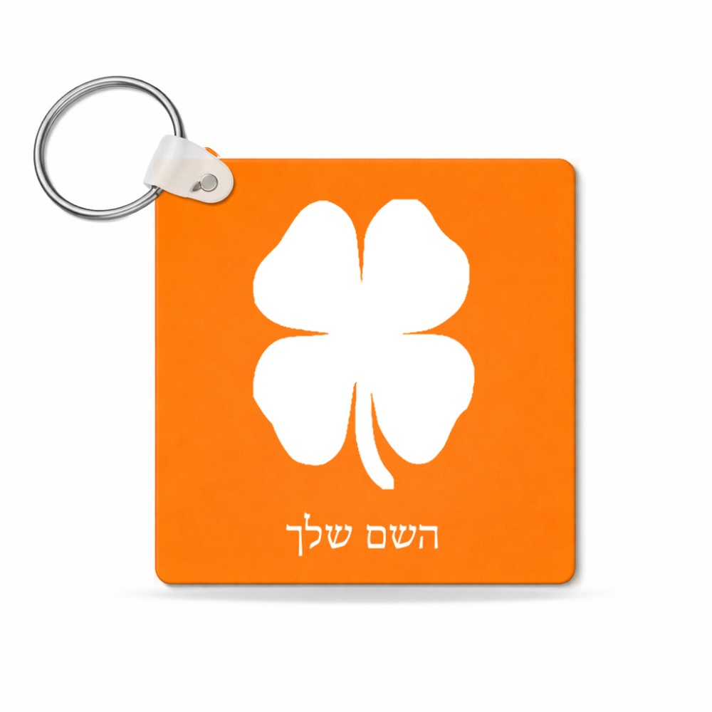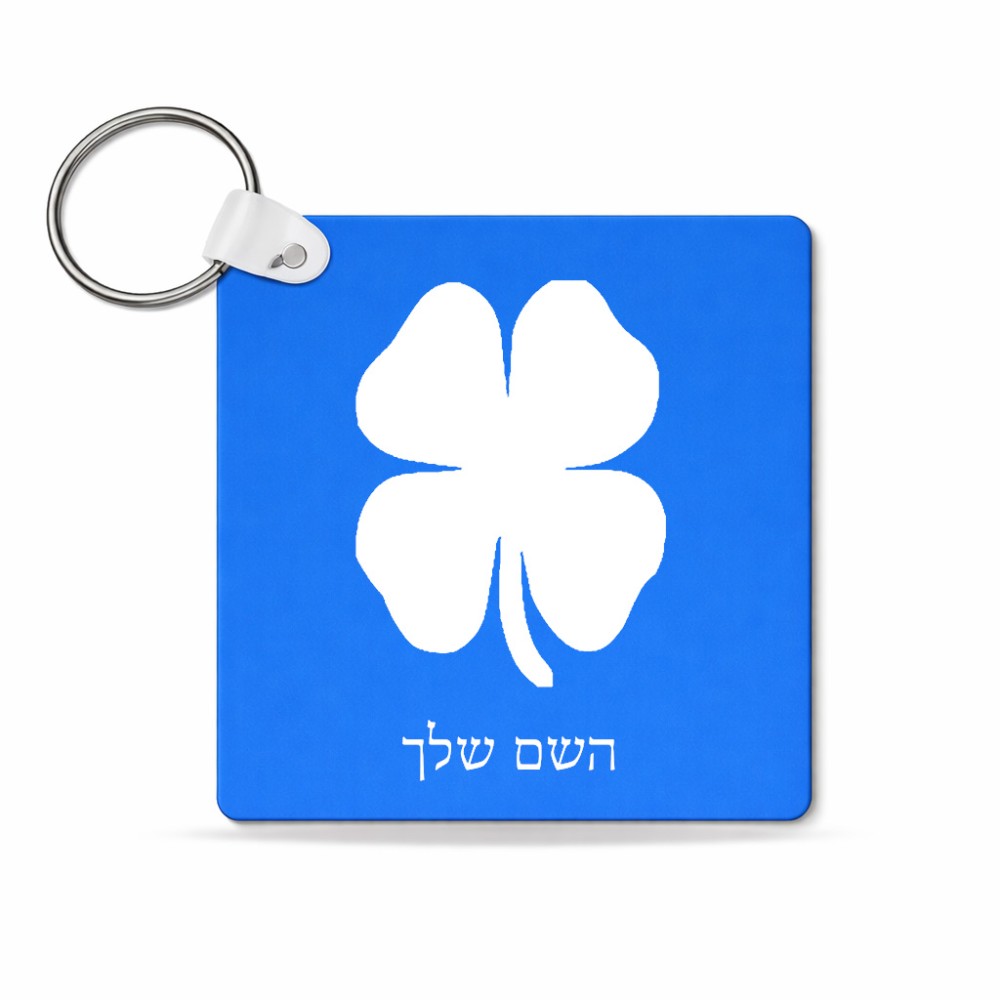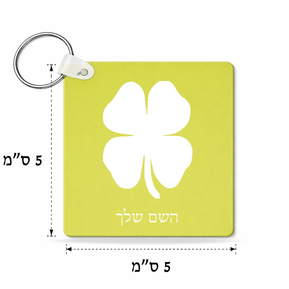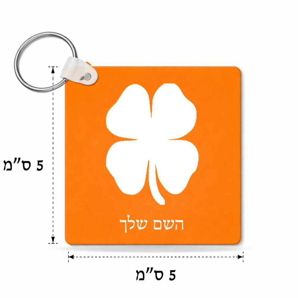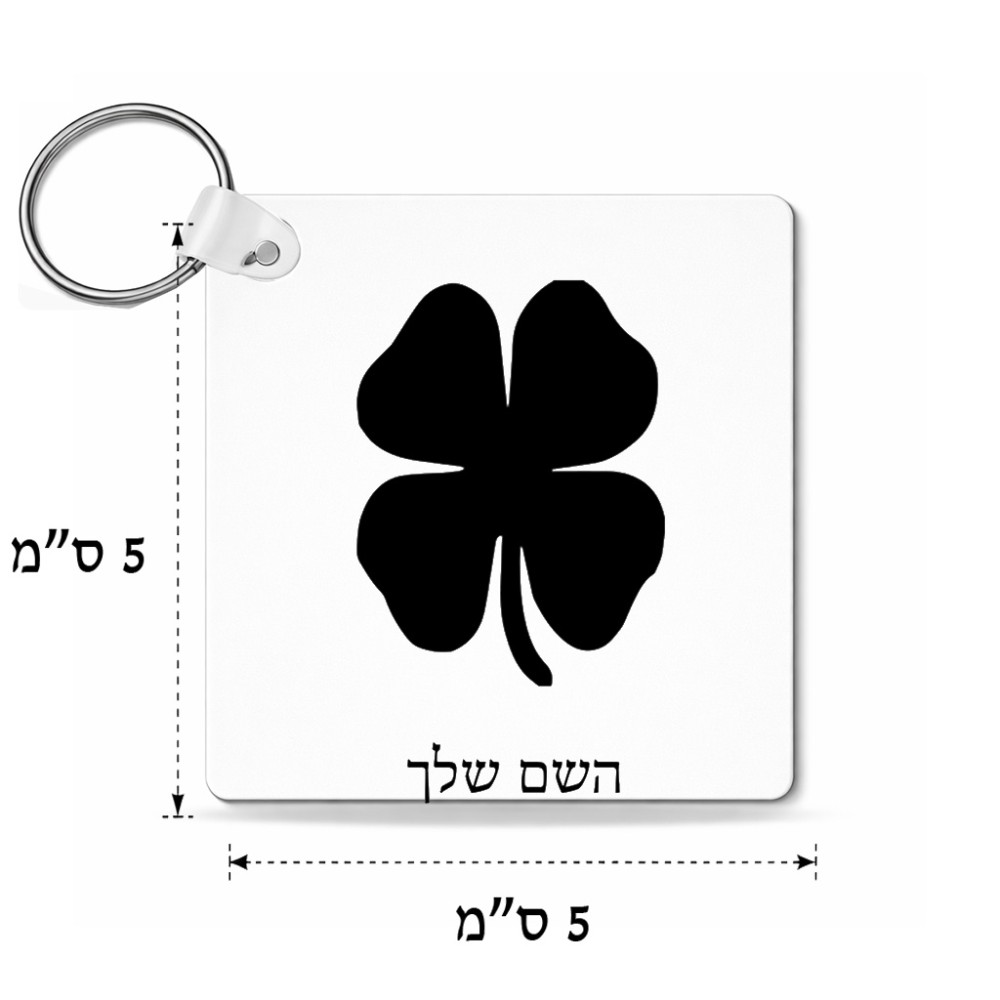 מחזיק מפתחות בצורת ריבוע בעיצוב אישי עם השם שלך בעיצוב קלבר גודל המחזיק 5 × 5 ס"מ. את השם המבוקש ניתן לציין בהזמנה, אם לא צויין אנחנו ניצור קשר לבירור.
