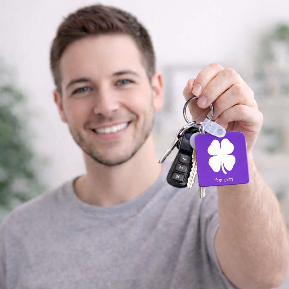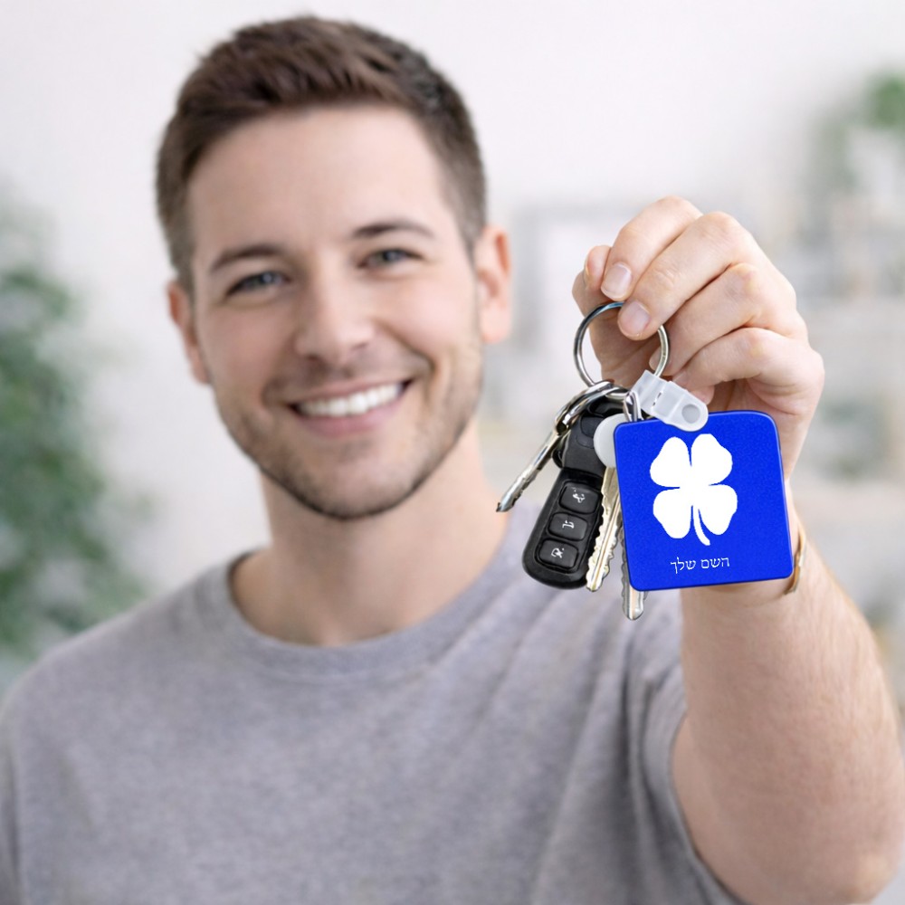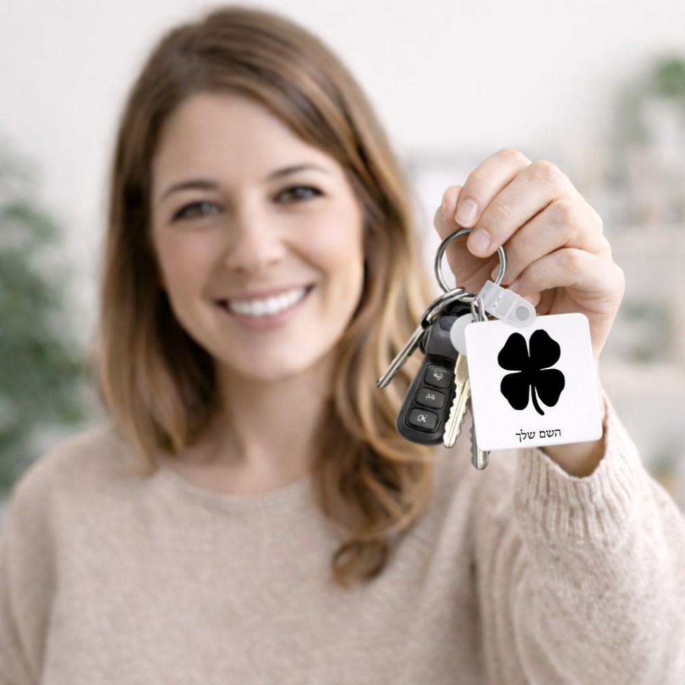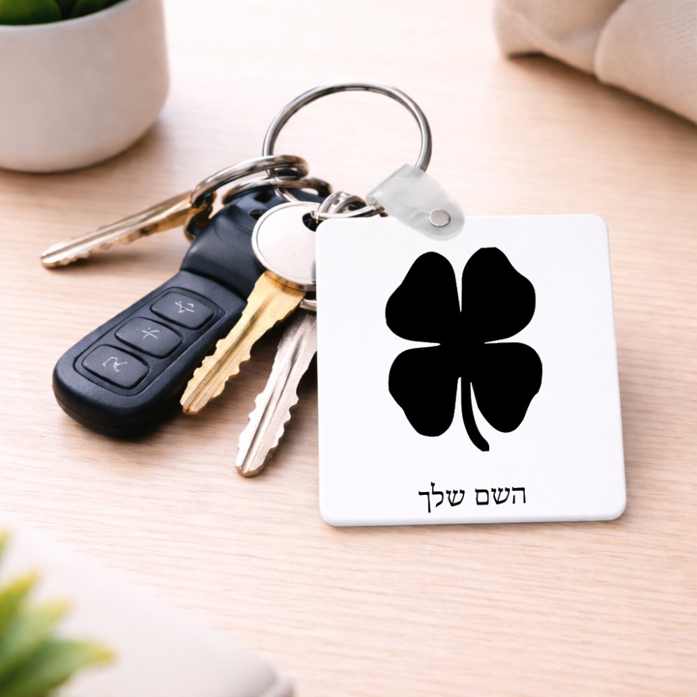 מחזיק מפתחות בצורת ריבוע בעיצוב אישי עם השם שלך בעיצוב קלבר גודל המחזיק 5 × 5 ס"מ. את השם המבוקש ניתן לציין בהזמנה, אם לא צויין אנחנו ניצור קשר לבירור.