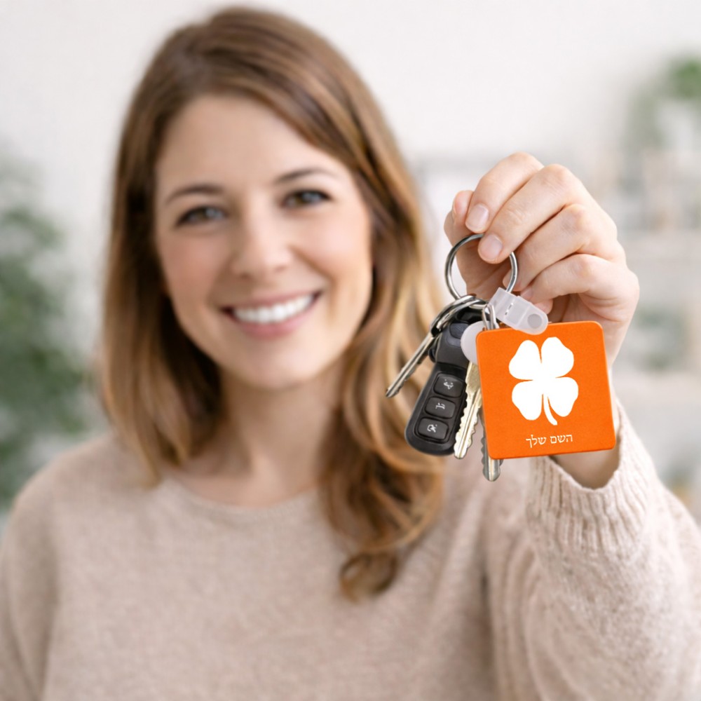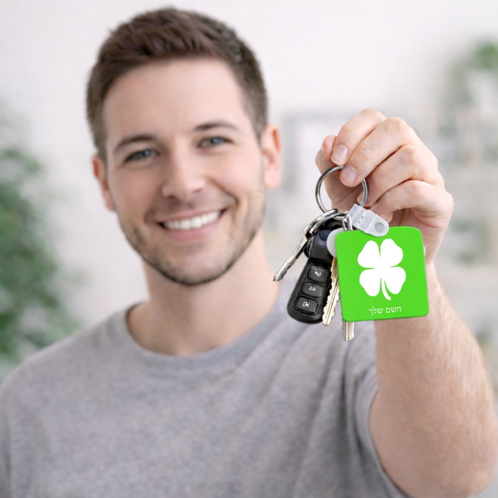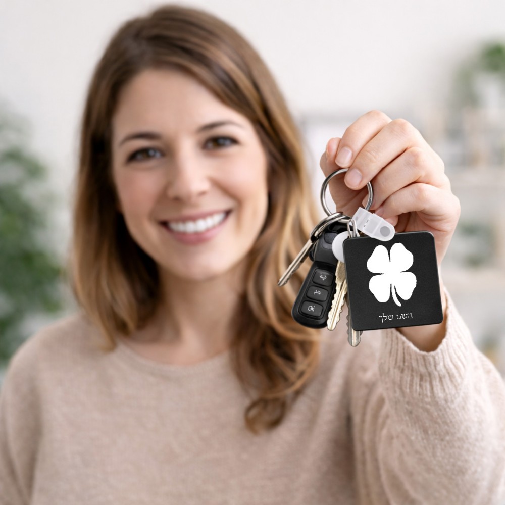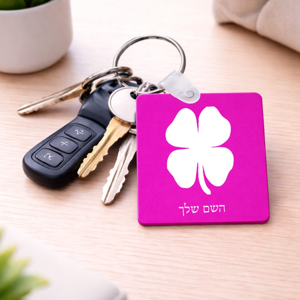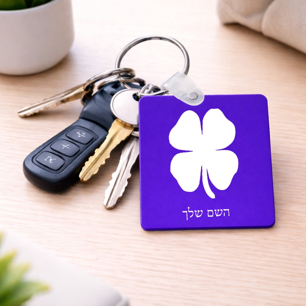 מחזיק מפתחות בצורת ריבוע בעיצוב אישי עם השם שלך בעיצוב קלבר גודל המחזיק 5 × 5 ס"מ. את השם המבוקש ניתן לציין בהזמנה, אם לא צויין אנחנו ניצור קשר לבירור.