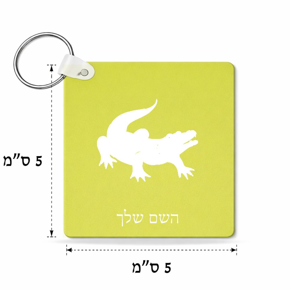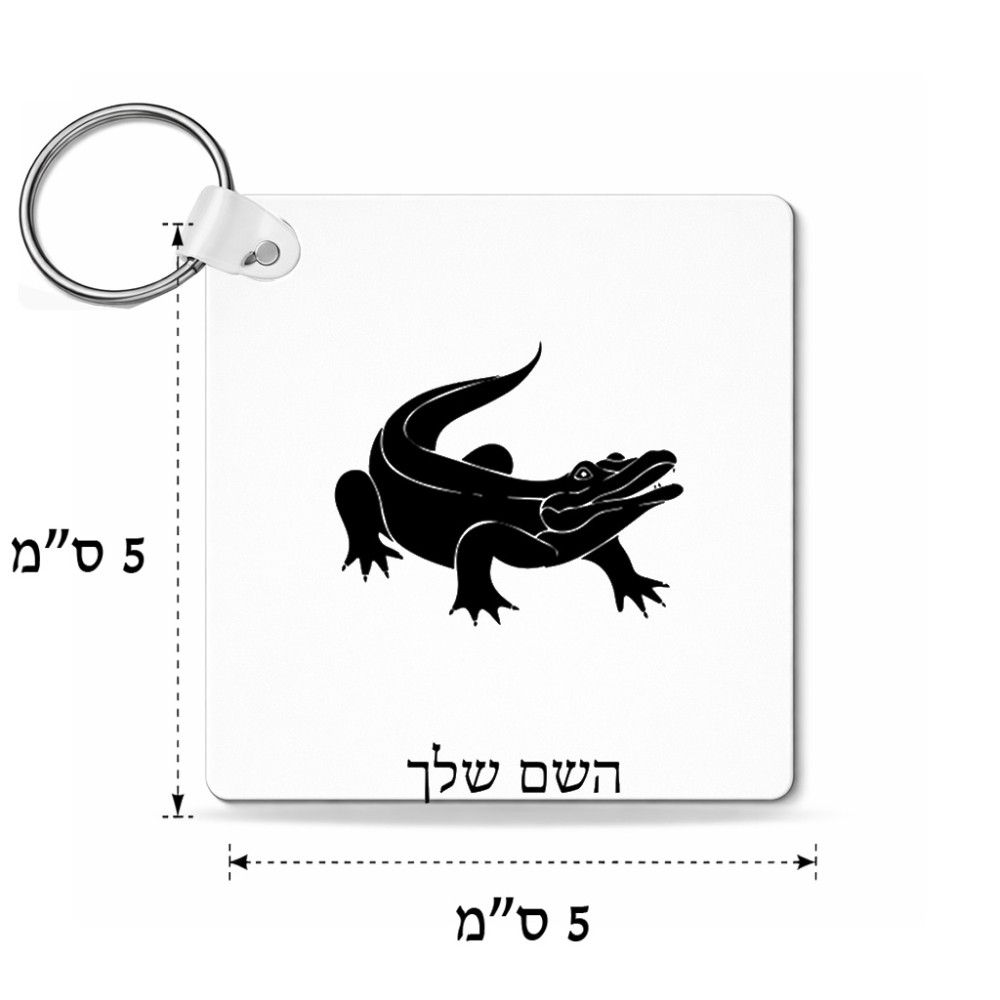 מחזיק מפתחות בצורת ריבוע בעיצוב אישי עם השם שלך בעיצוב תנין גודל המחזיק 5 × 5 ס"מ. את השם המבוקש ניתן לציין בהזמנה, אם לא צויין אנחנו ניצור קשר לבירור.