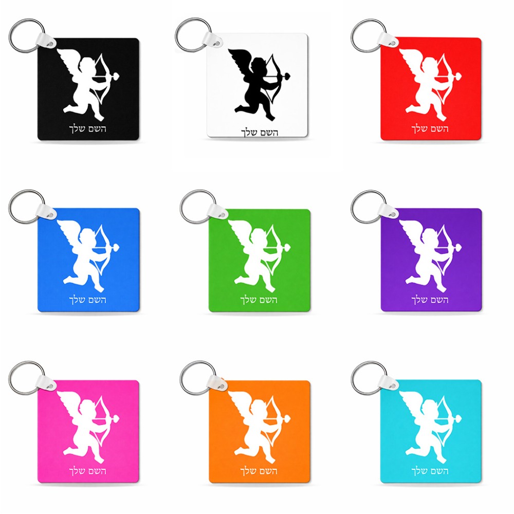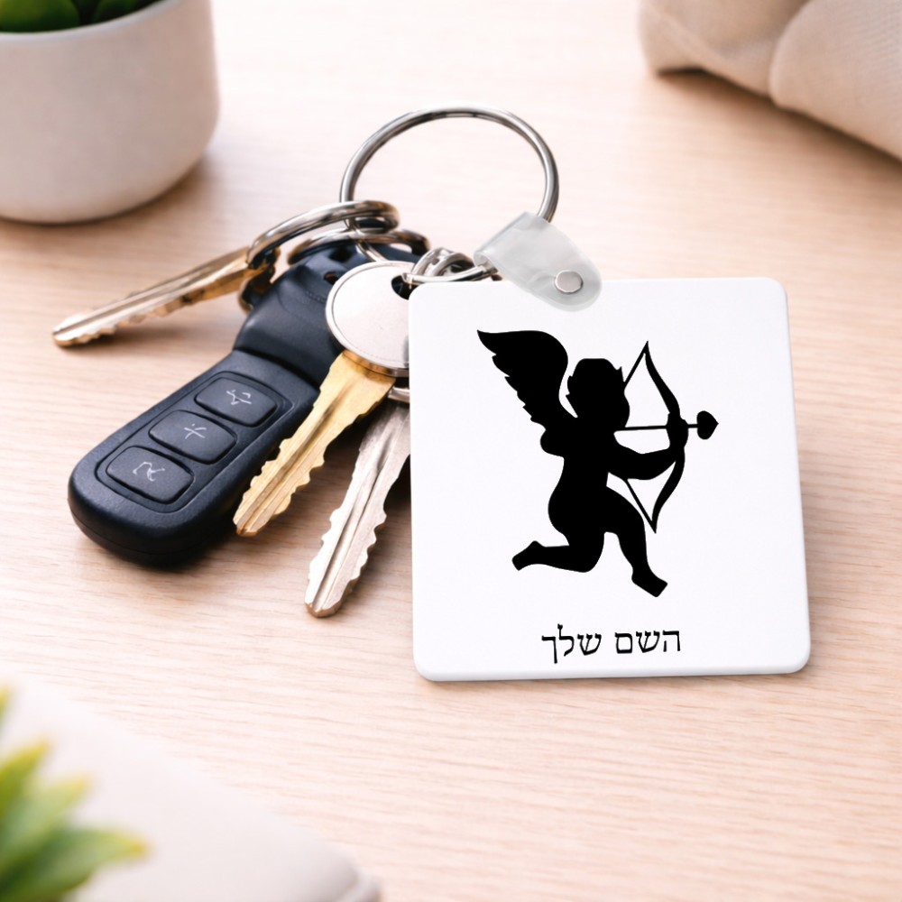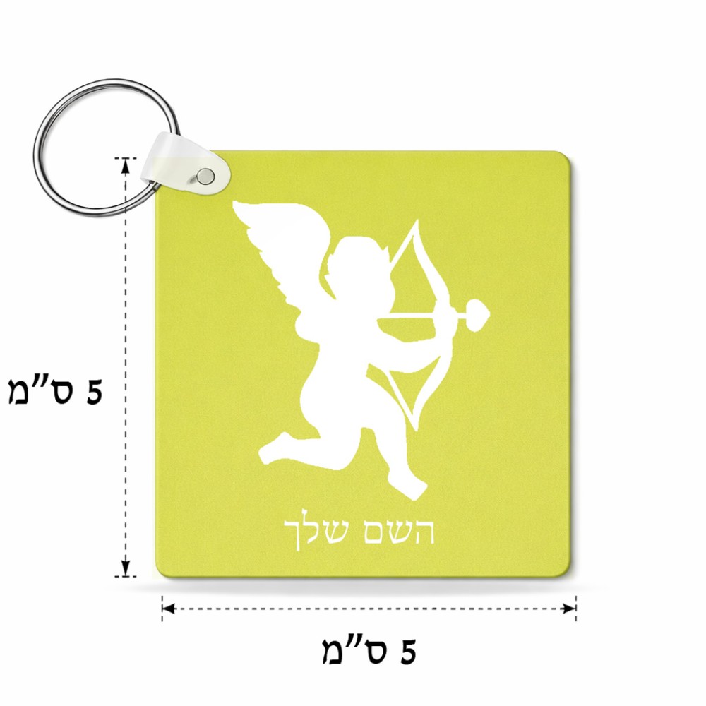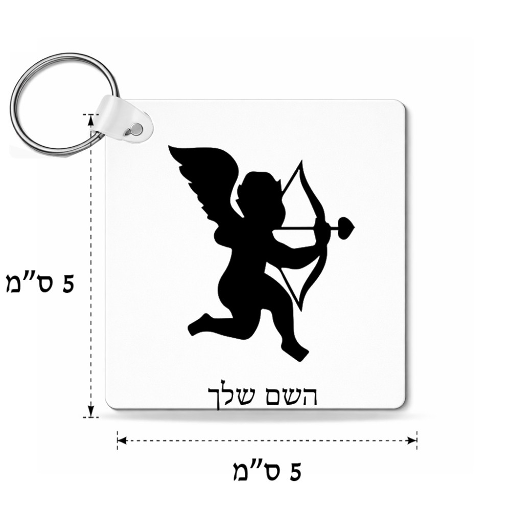 מחזיק מפתחות בצורת ריבוע בעיצוב אישי עם השם שלך בעיצוב קופידון גודל המחזיק 5 × 5 ס"מ. את השם המבוקש ניתן לציין בהזמנה, אם לא צויין אנחנו ניצור קשר לבירור.