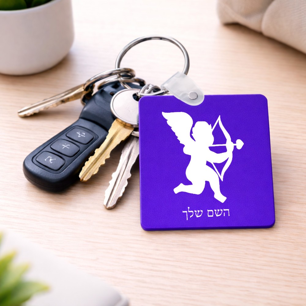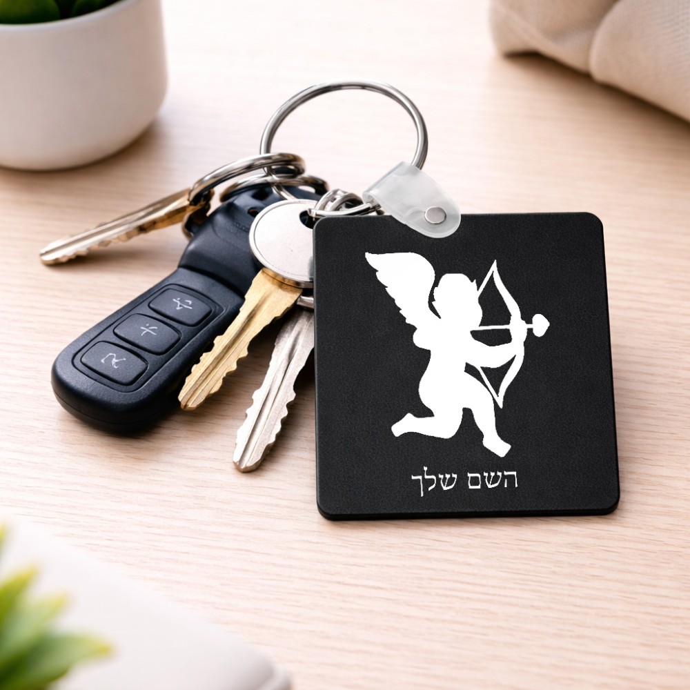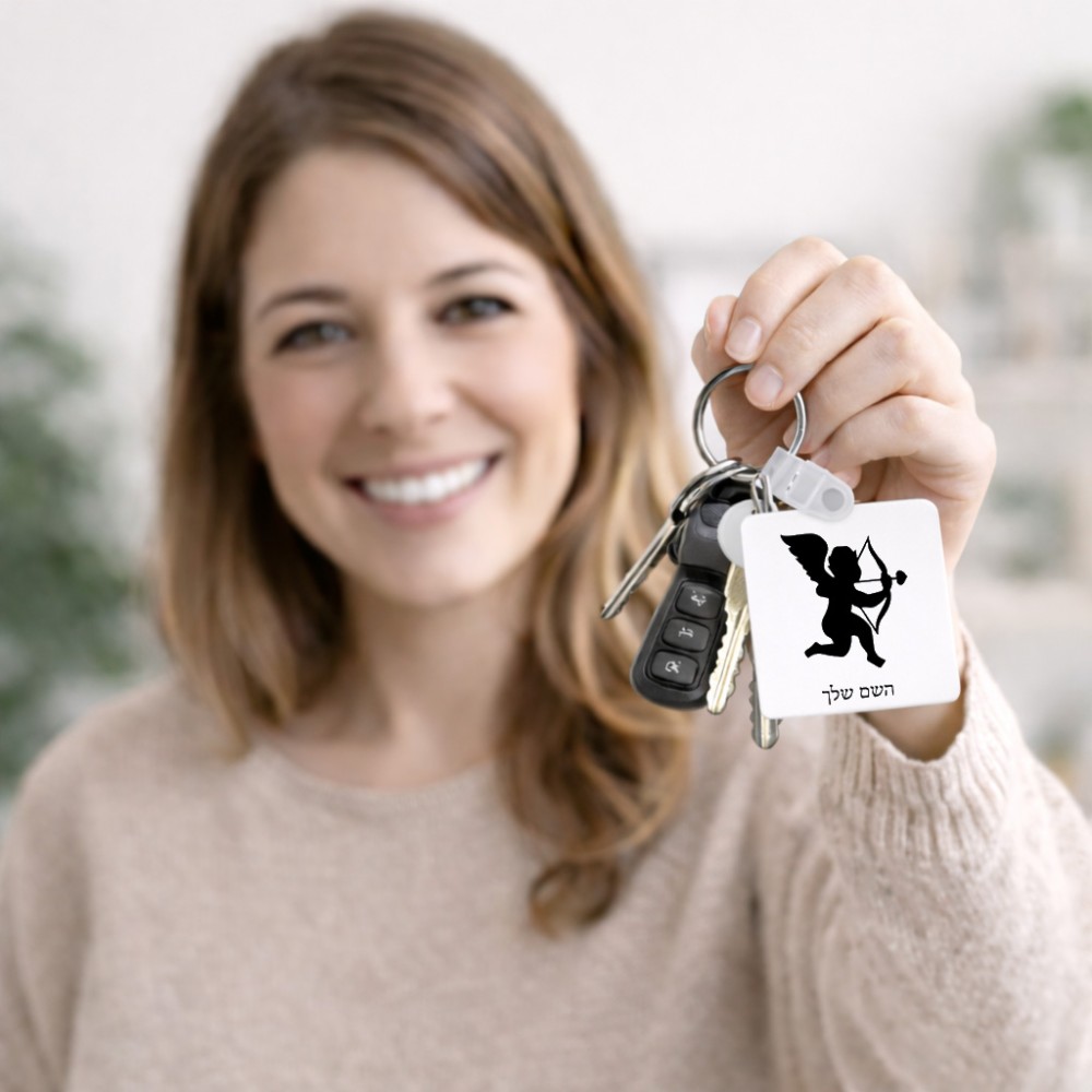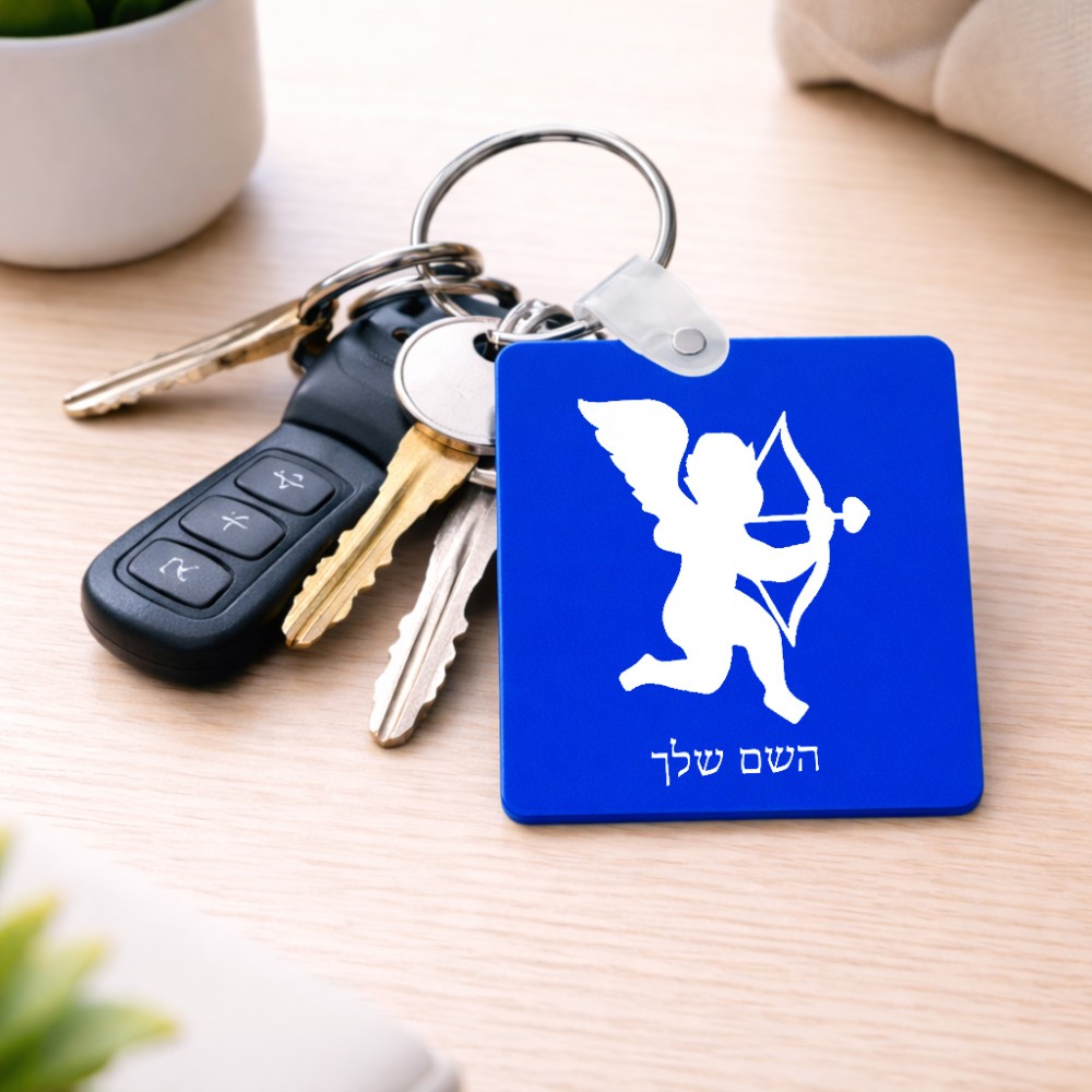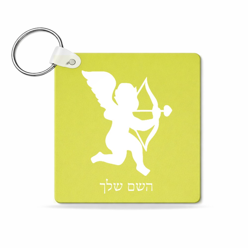 מחזיק מפתחות בצורת ריבוע בעיצוב אישי עם השם שלך בעיצוב קופידון גודל המחזיק 5 × 5 ס"מ. את השם המבוקש ניתן לציין בהזמנה, אם לא צויין אנחנו ניצור קשר לבירור.